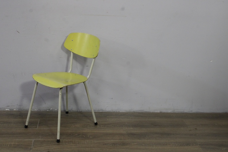 Vintage Groen/Geel Schoolstoeltje''