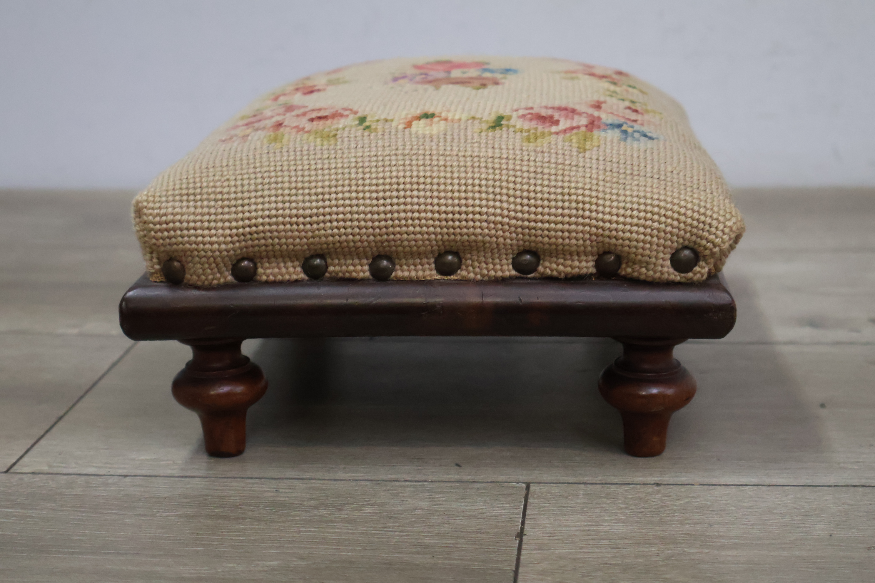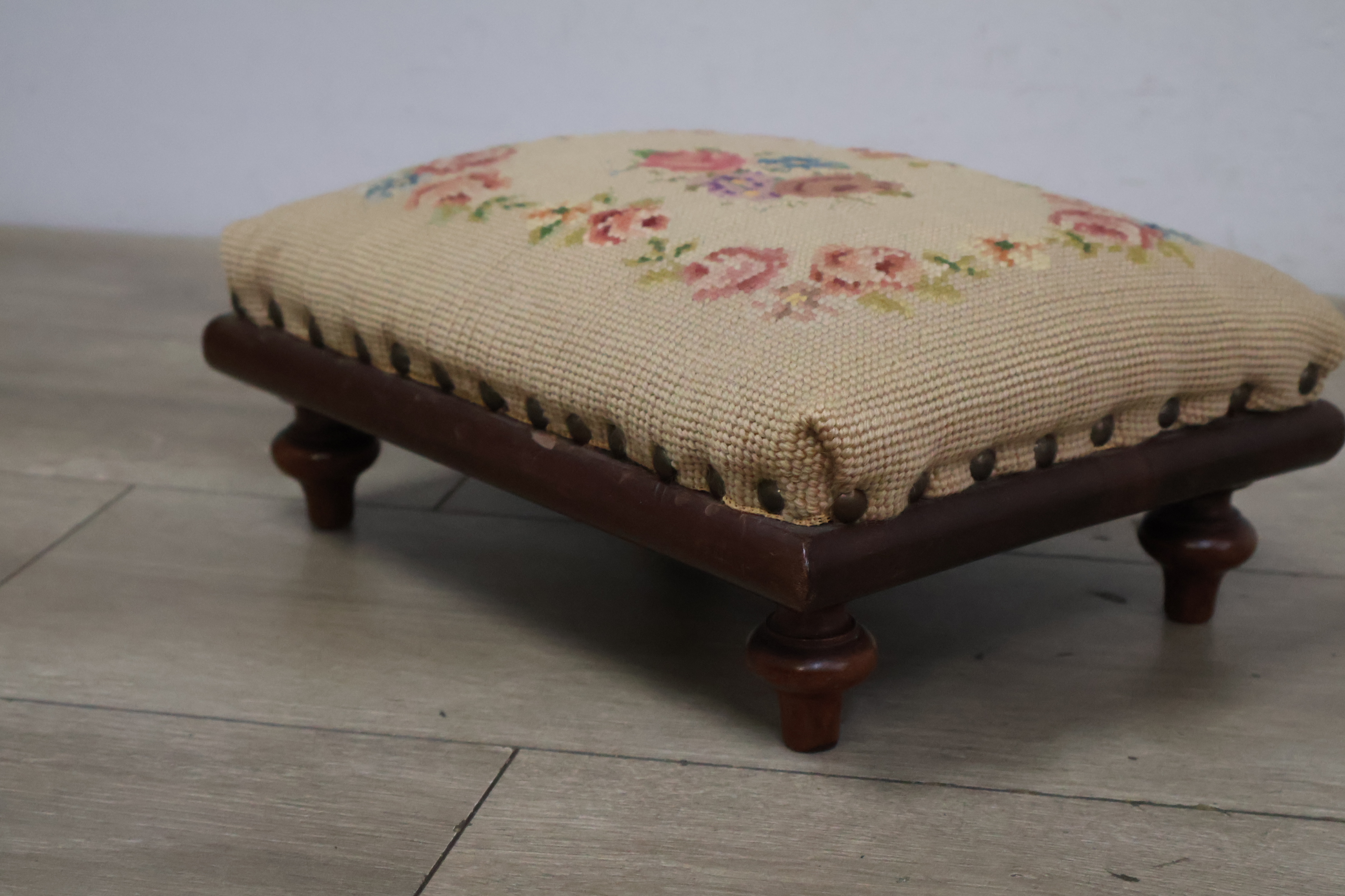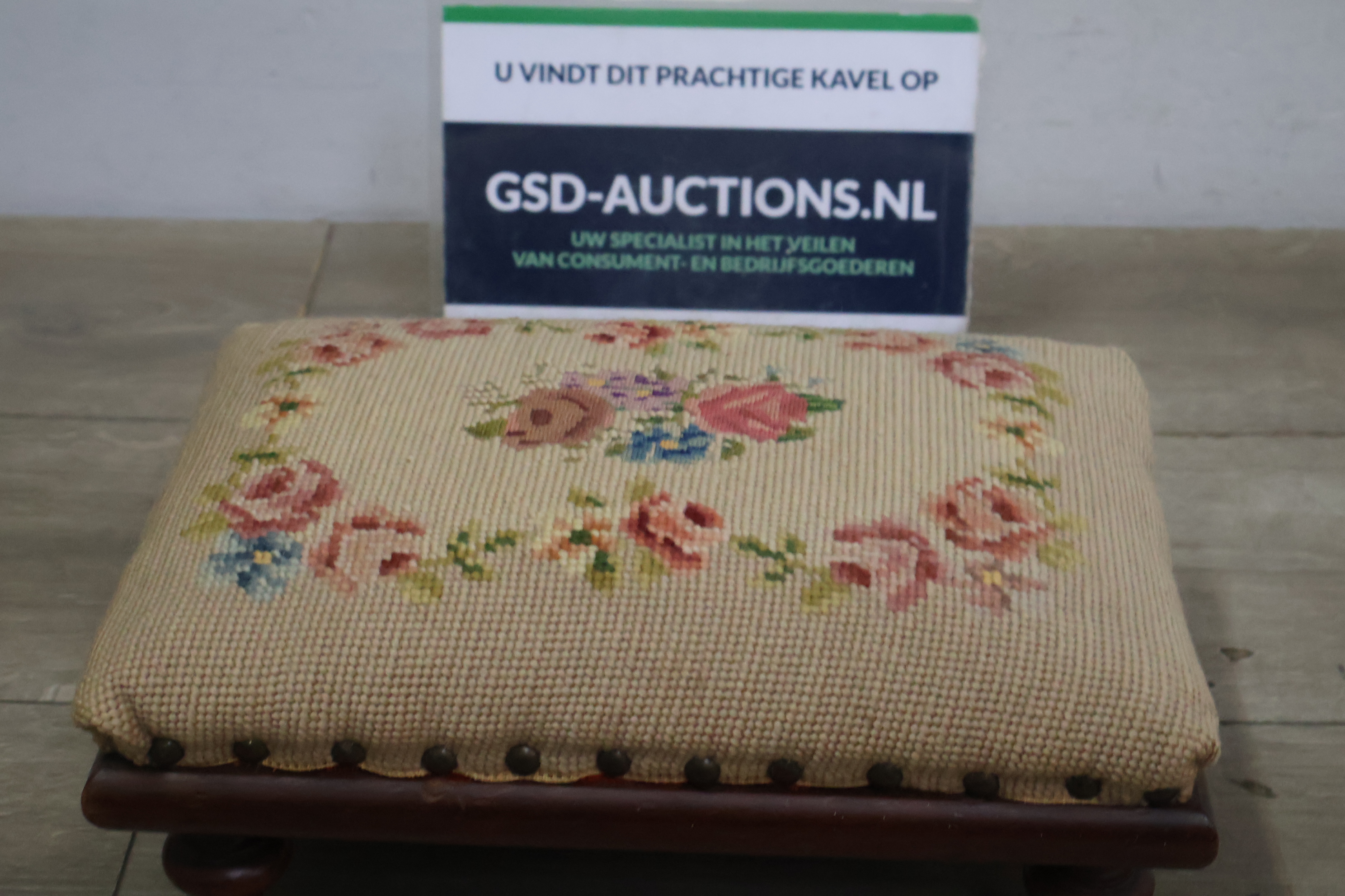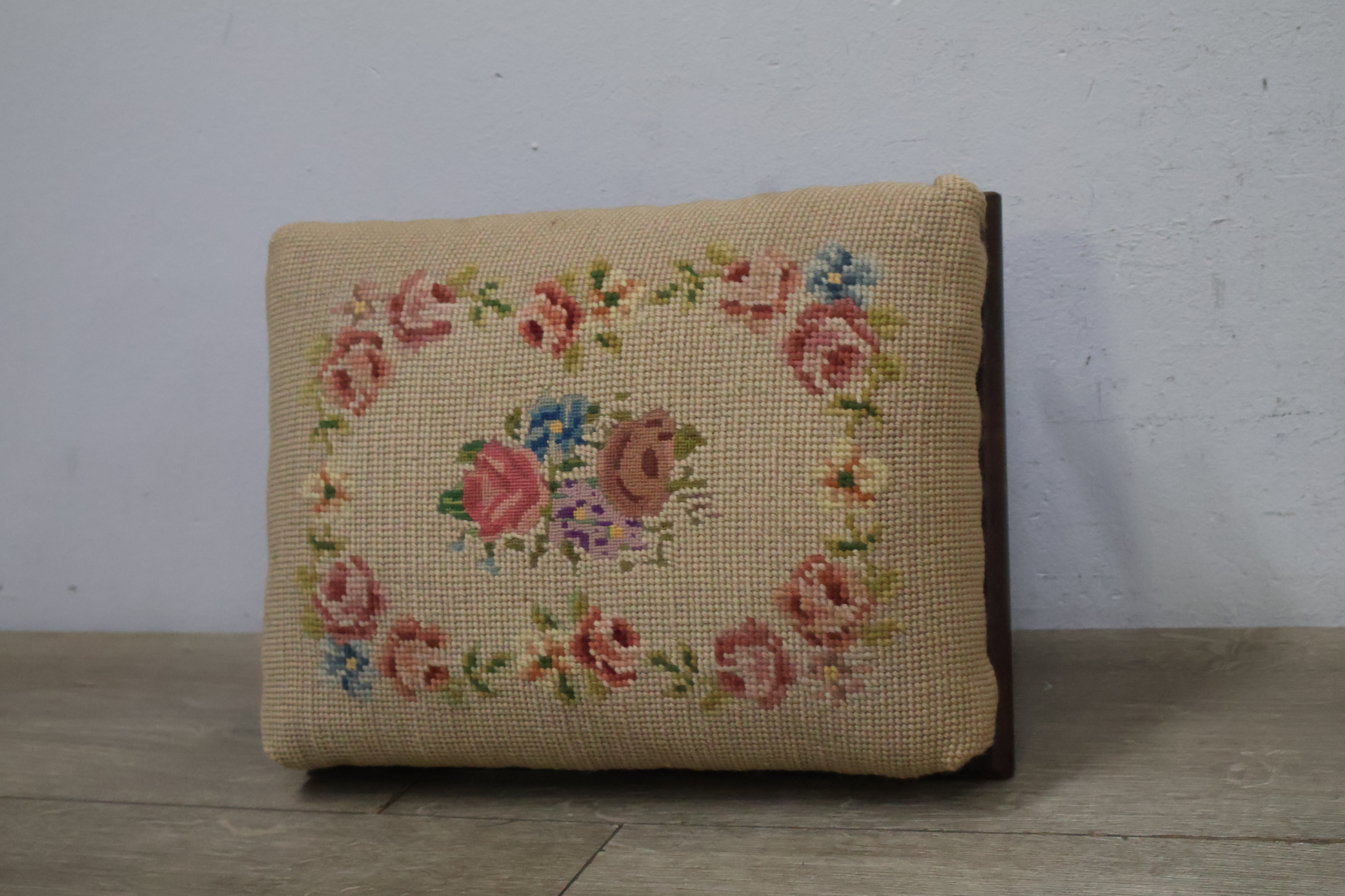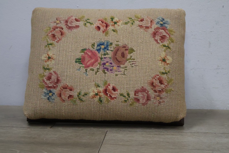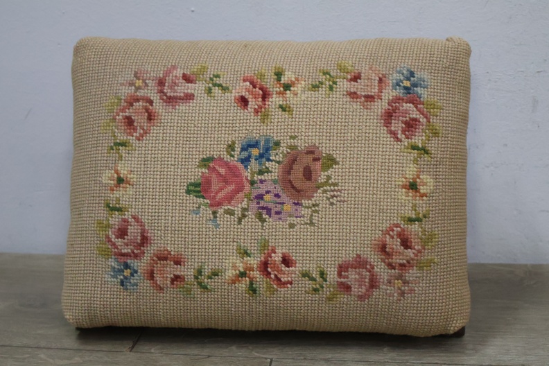 Vintage Geborduurd Voetenbankje''