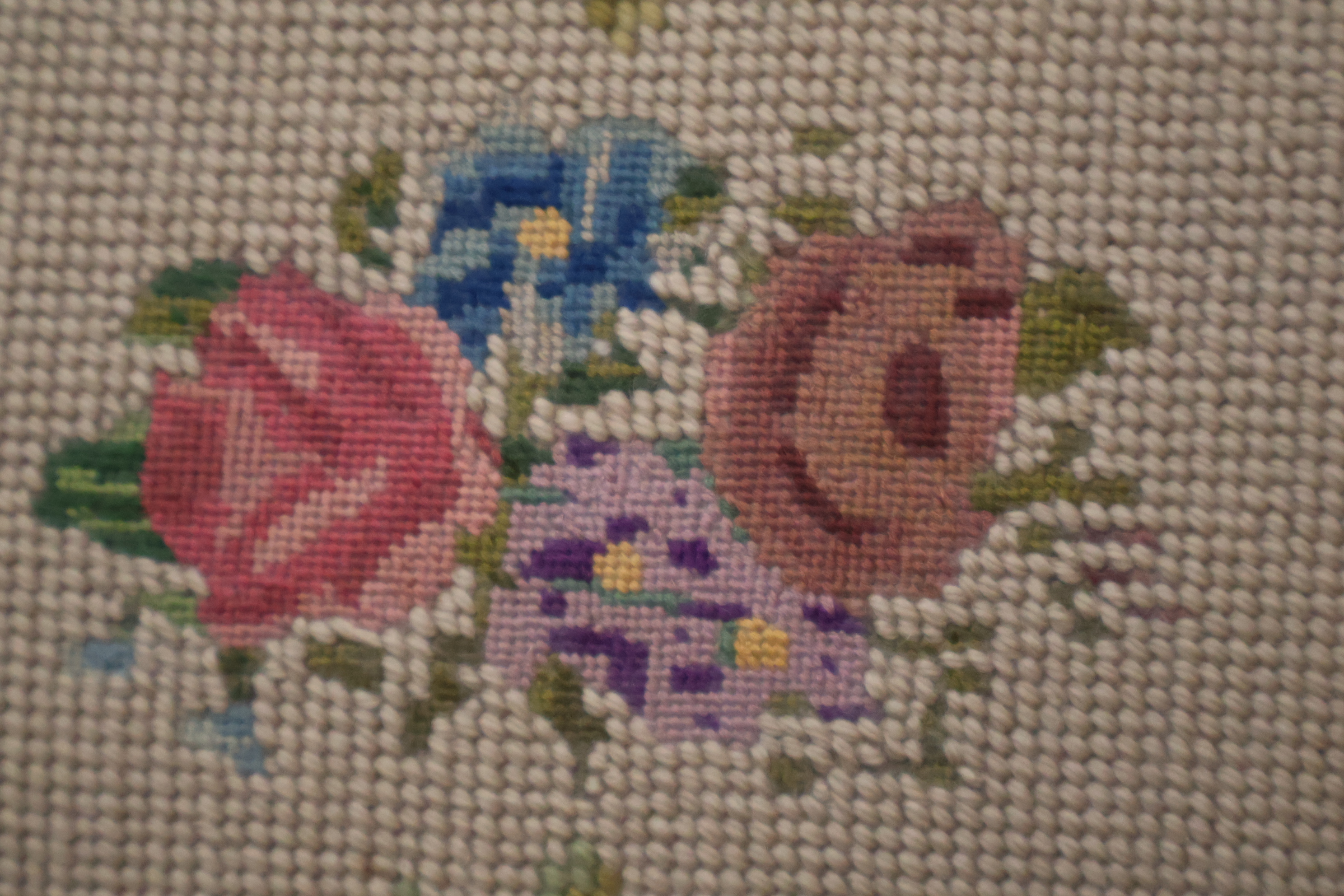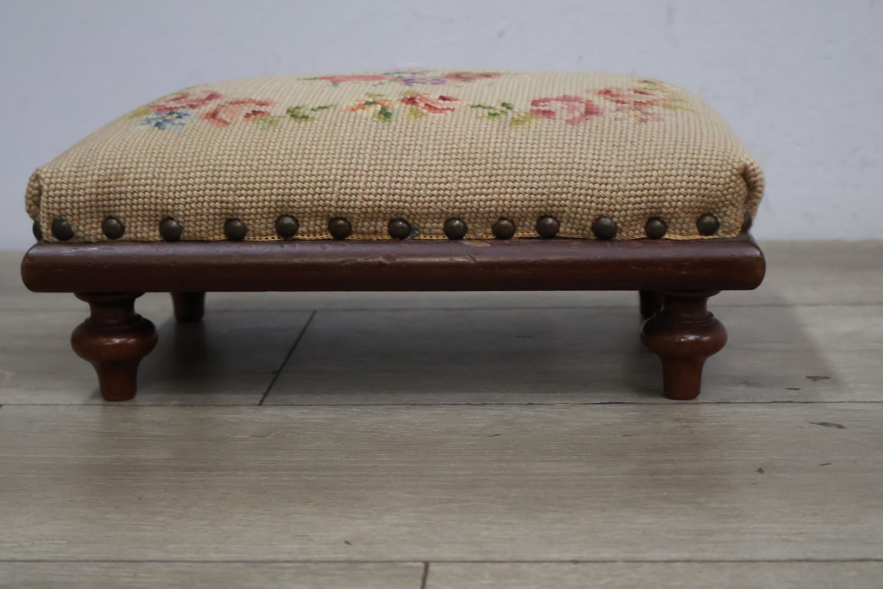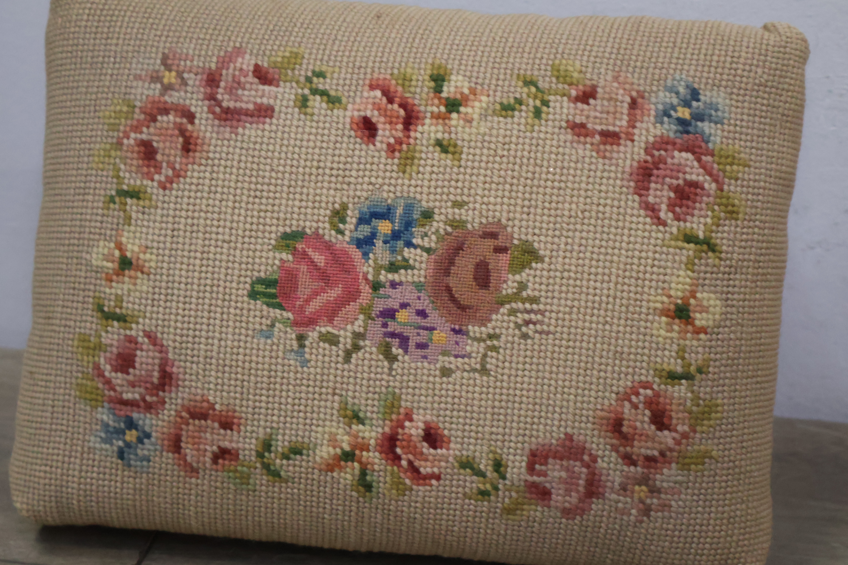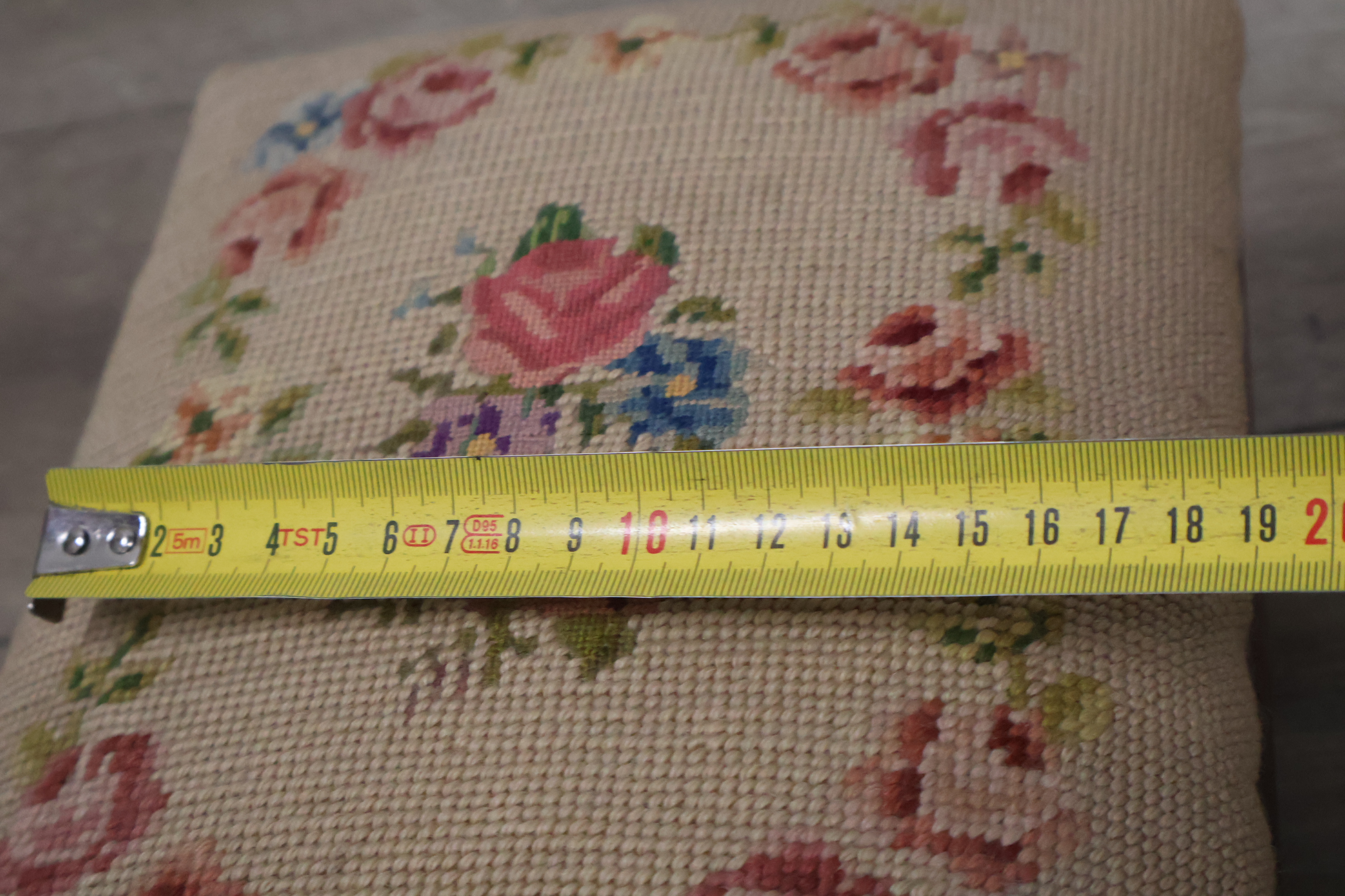 Vintage Geborduurd Voetenbankje''