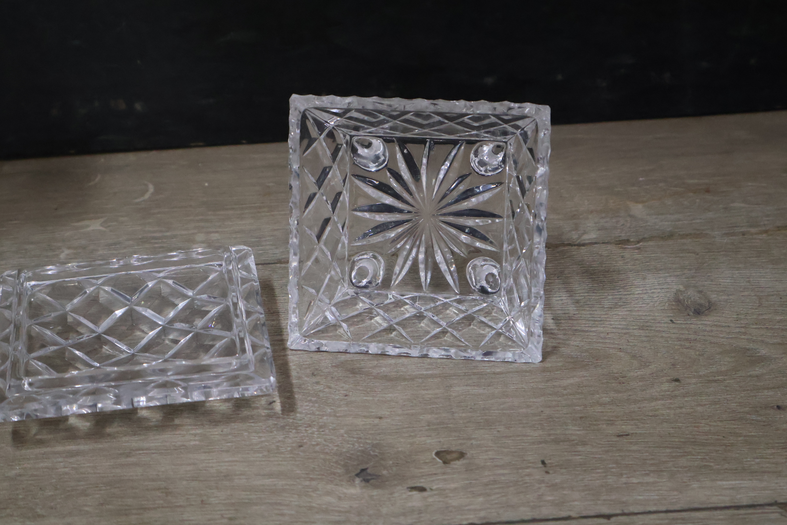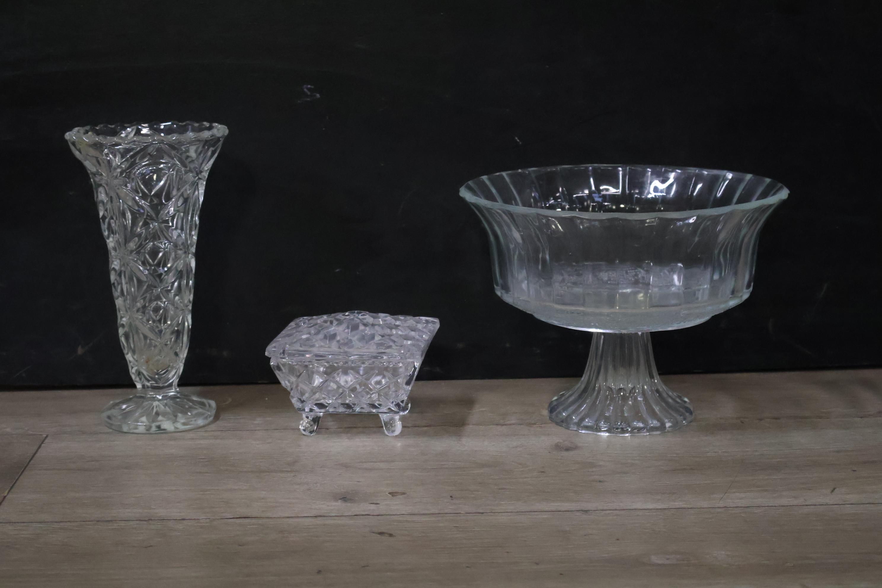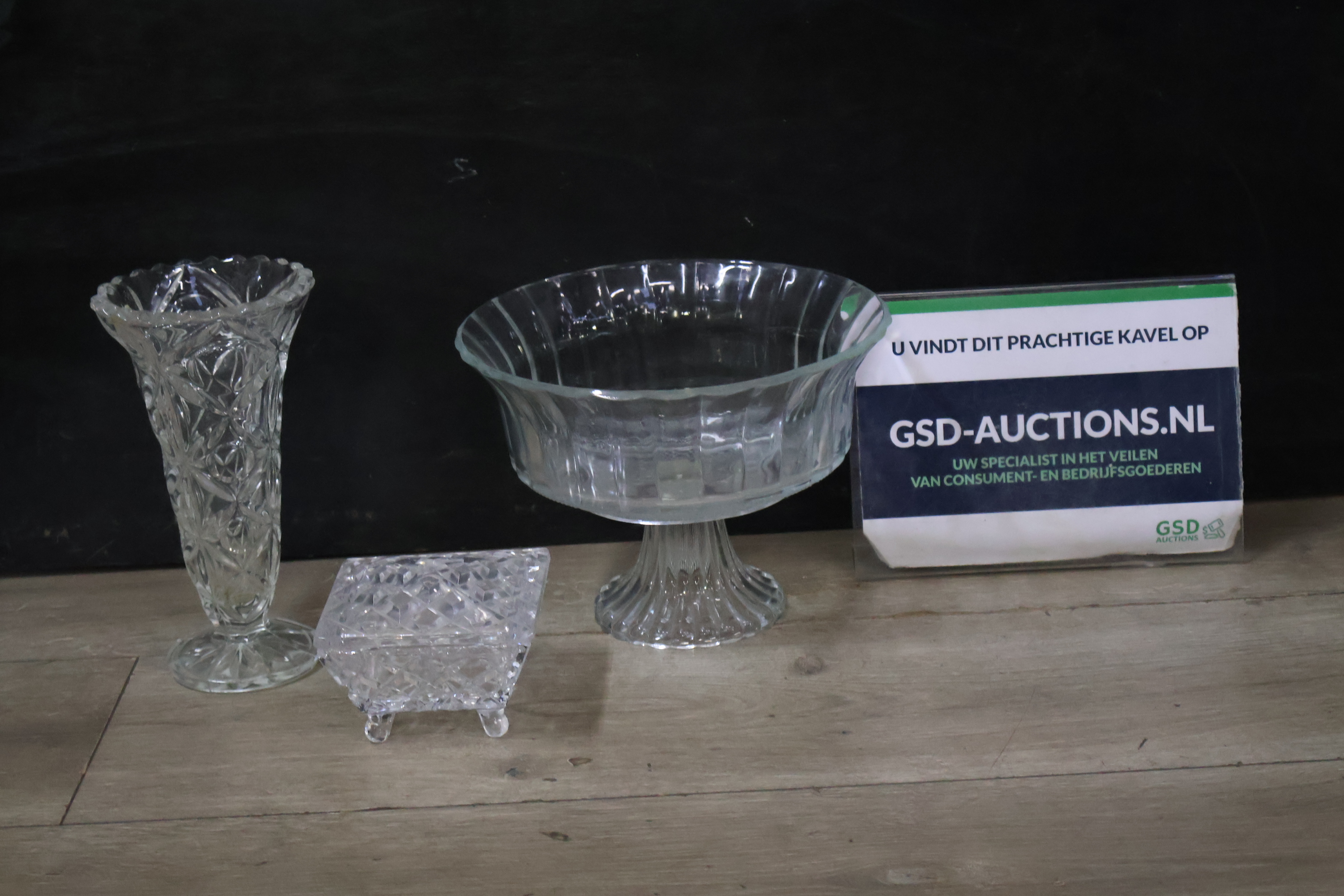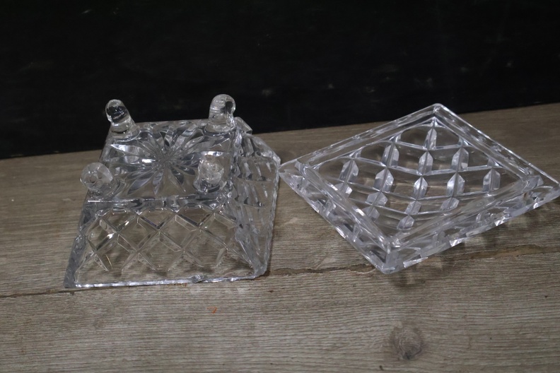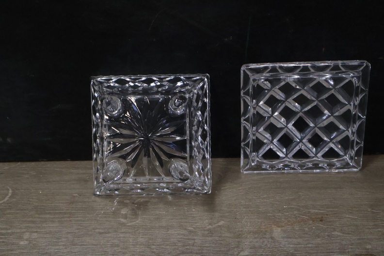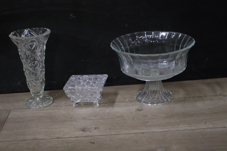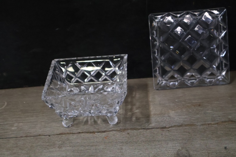 Mix van 2 Kirstalglazen Vazen & 1 Dekselpotje''