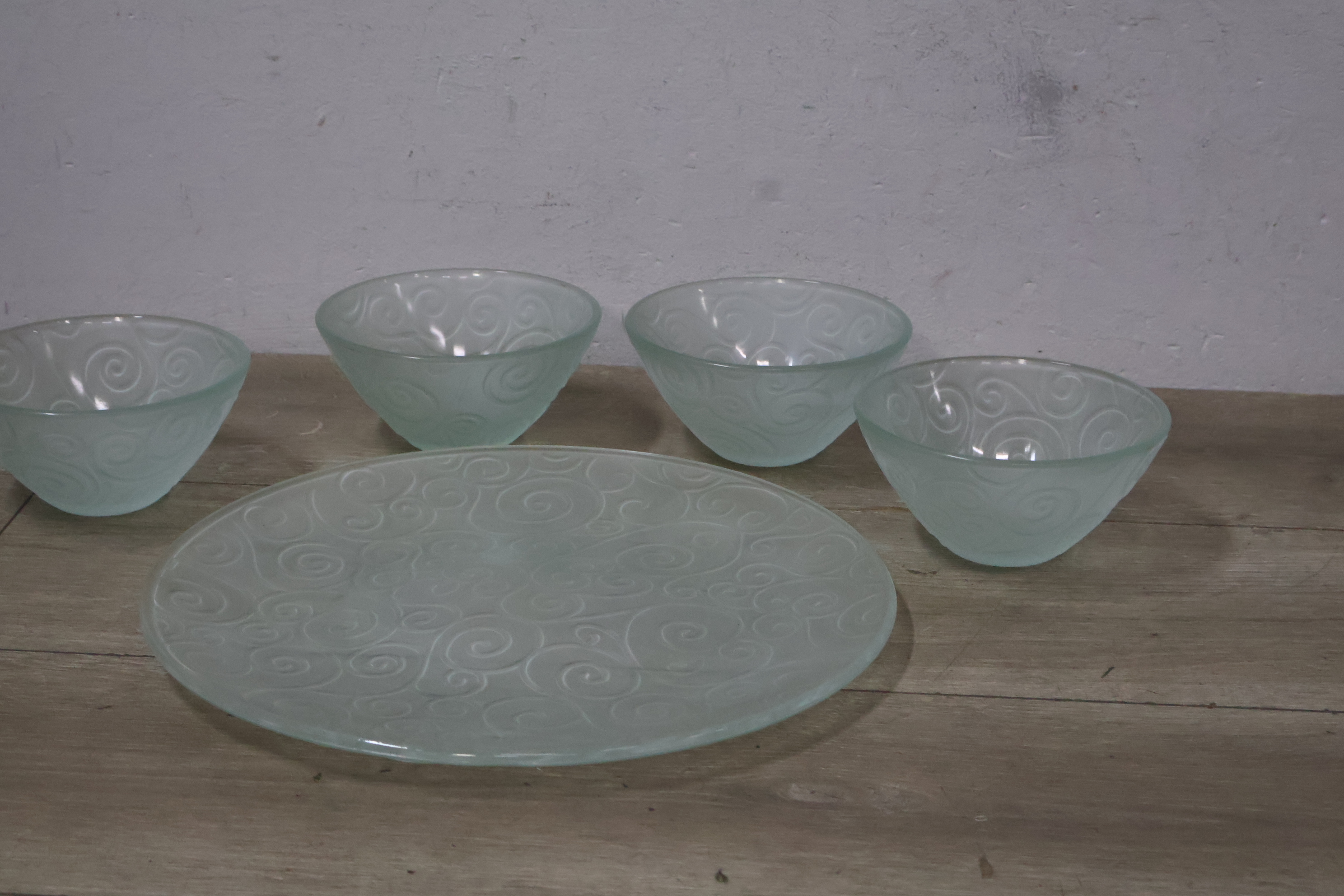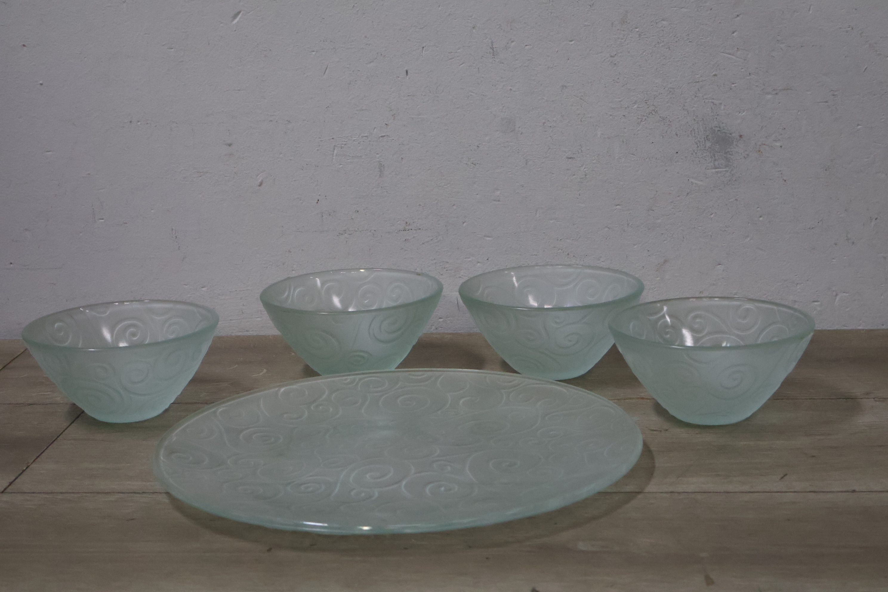 Glazen kommen 4 stuks met schaal''