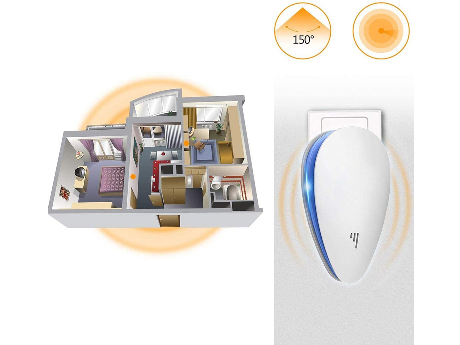 Het werkt voor ongedierte zoals insecten en knaagdieren (bijvoorbeeld muizen, kakkerlakken, spinnen, mieren en muggen) en is niet hoorbaar voor mensen en huisdieren. Met een groot bereik van 100 meter hoeft u zich geen zorgen te maken om ongedierte in uw omgeving (let wel op; de golven gaan niet door muren).