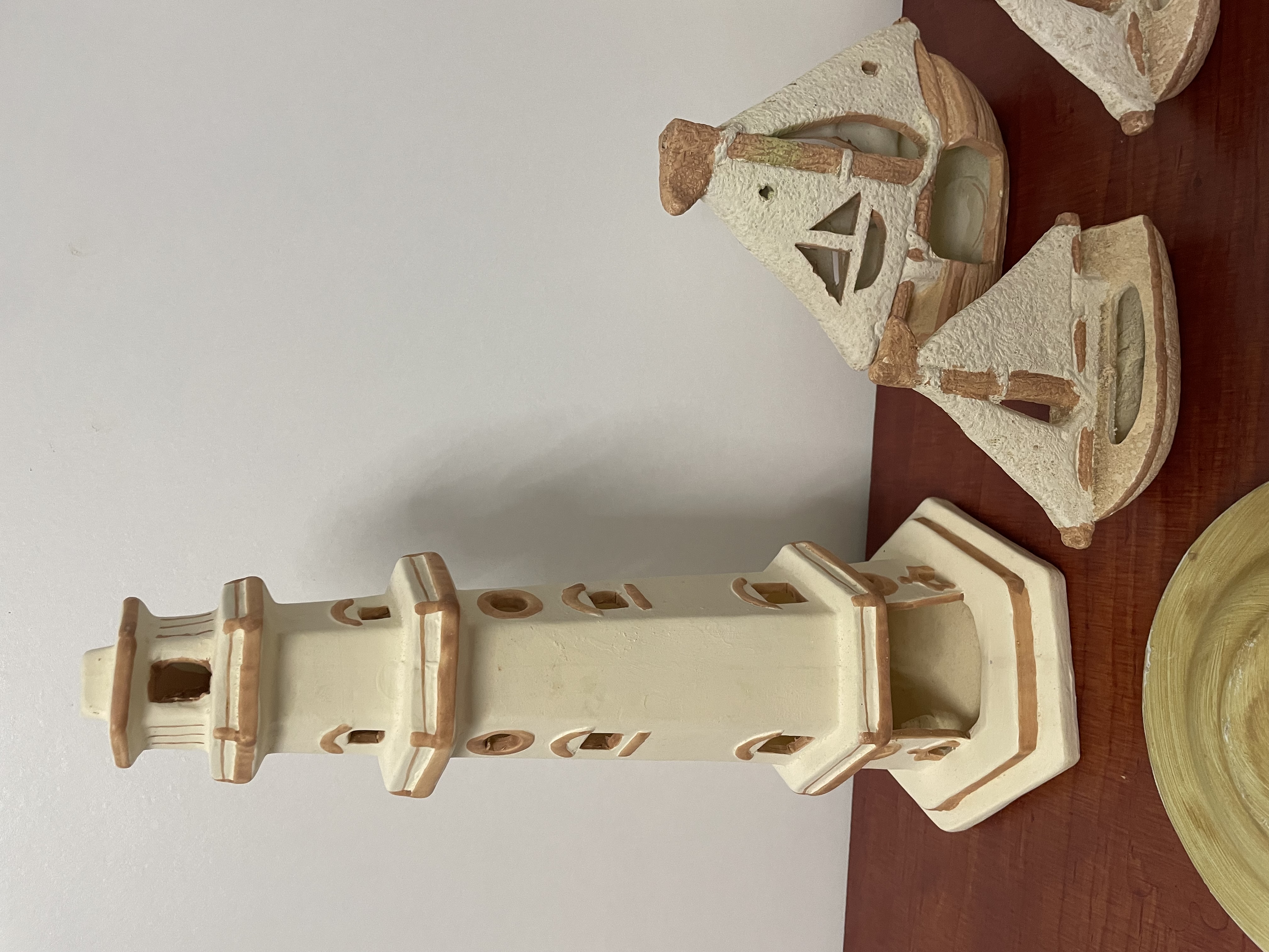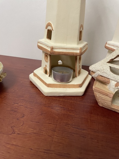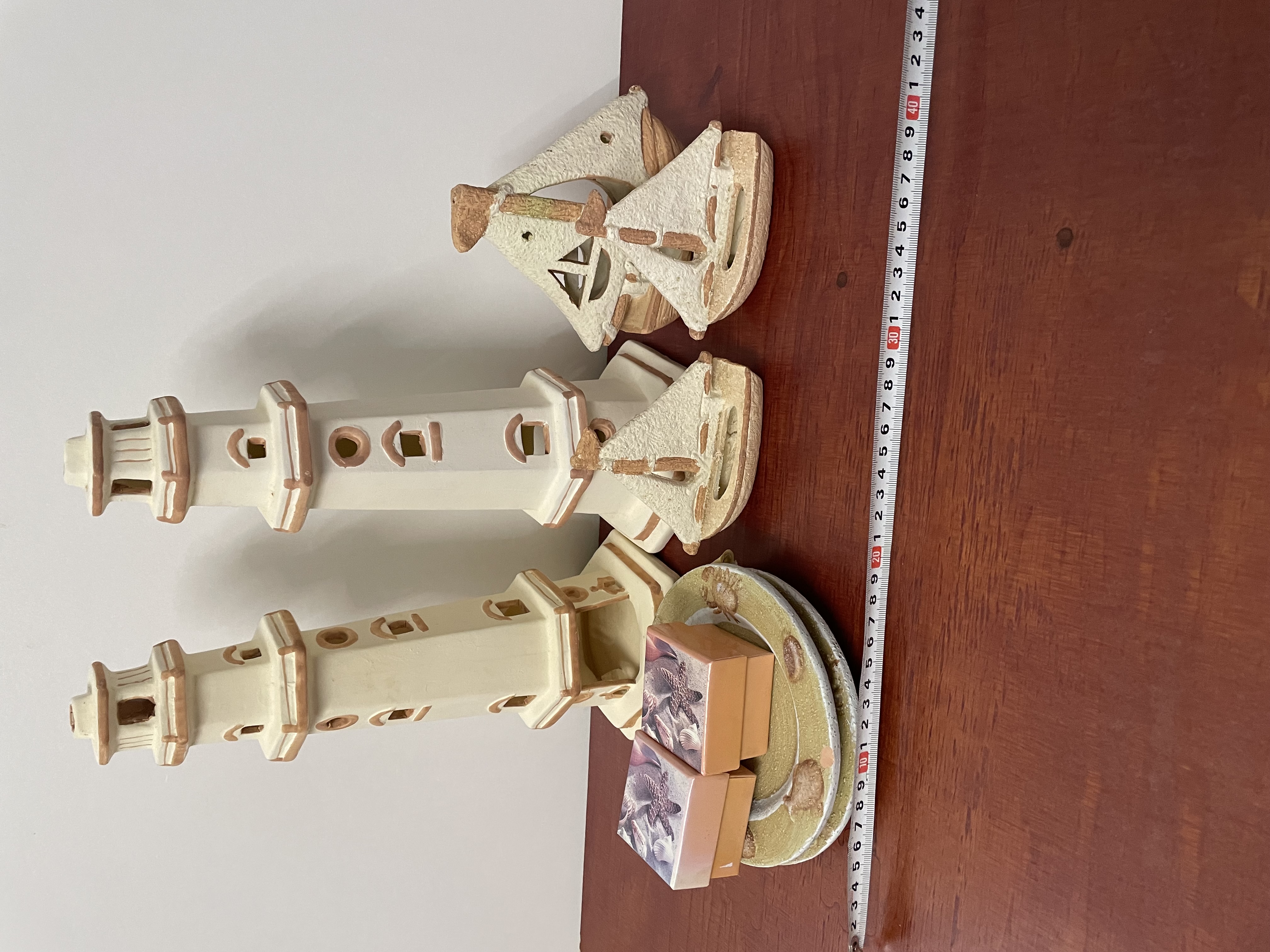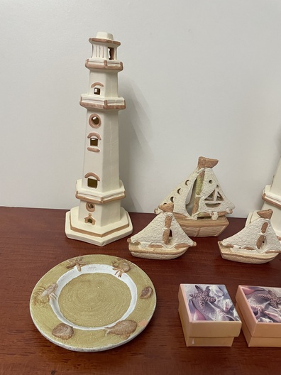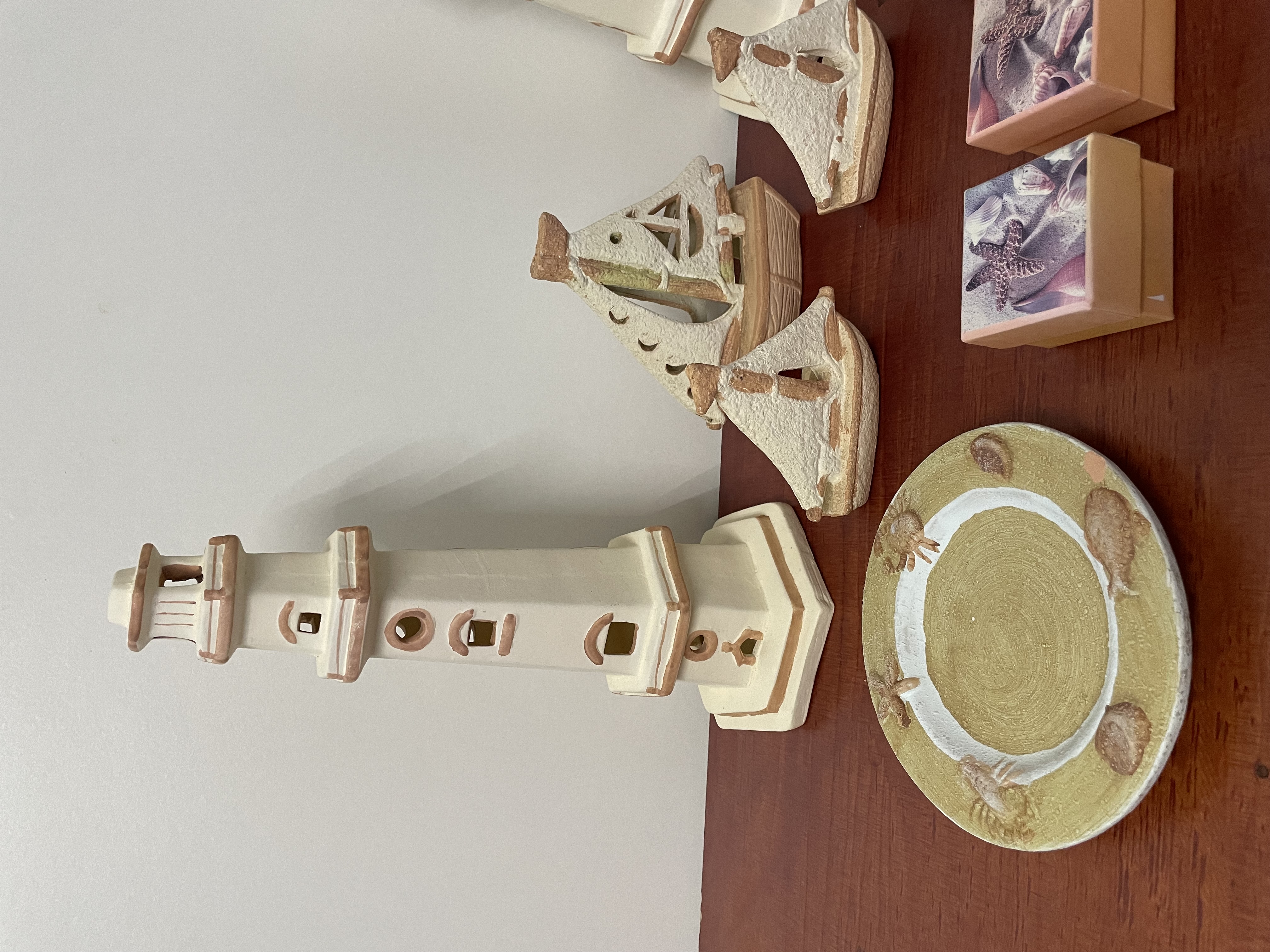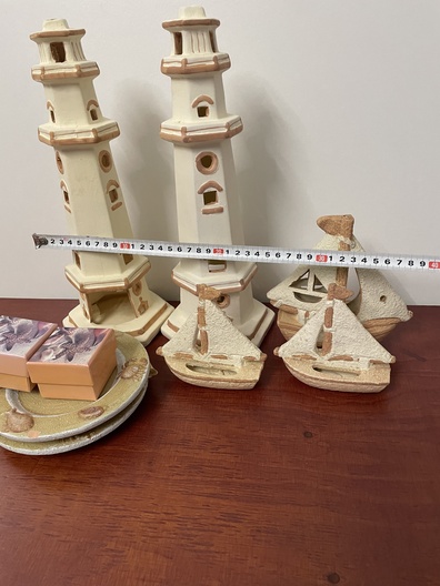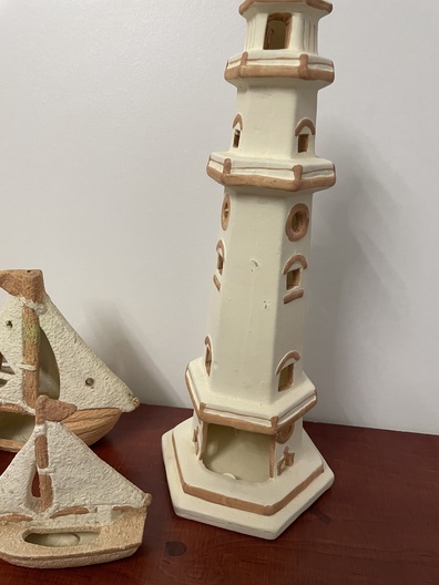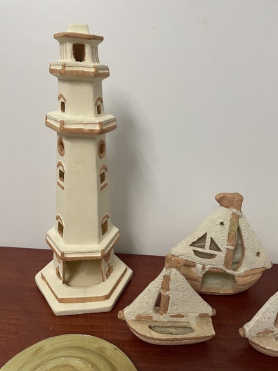 Vuurtoren met boten en borden aardwerk