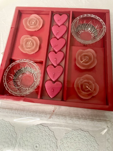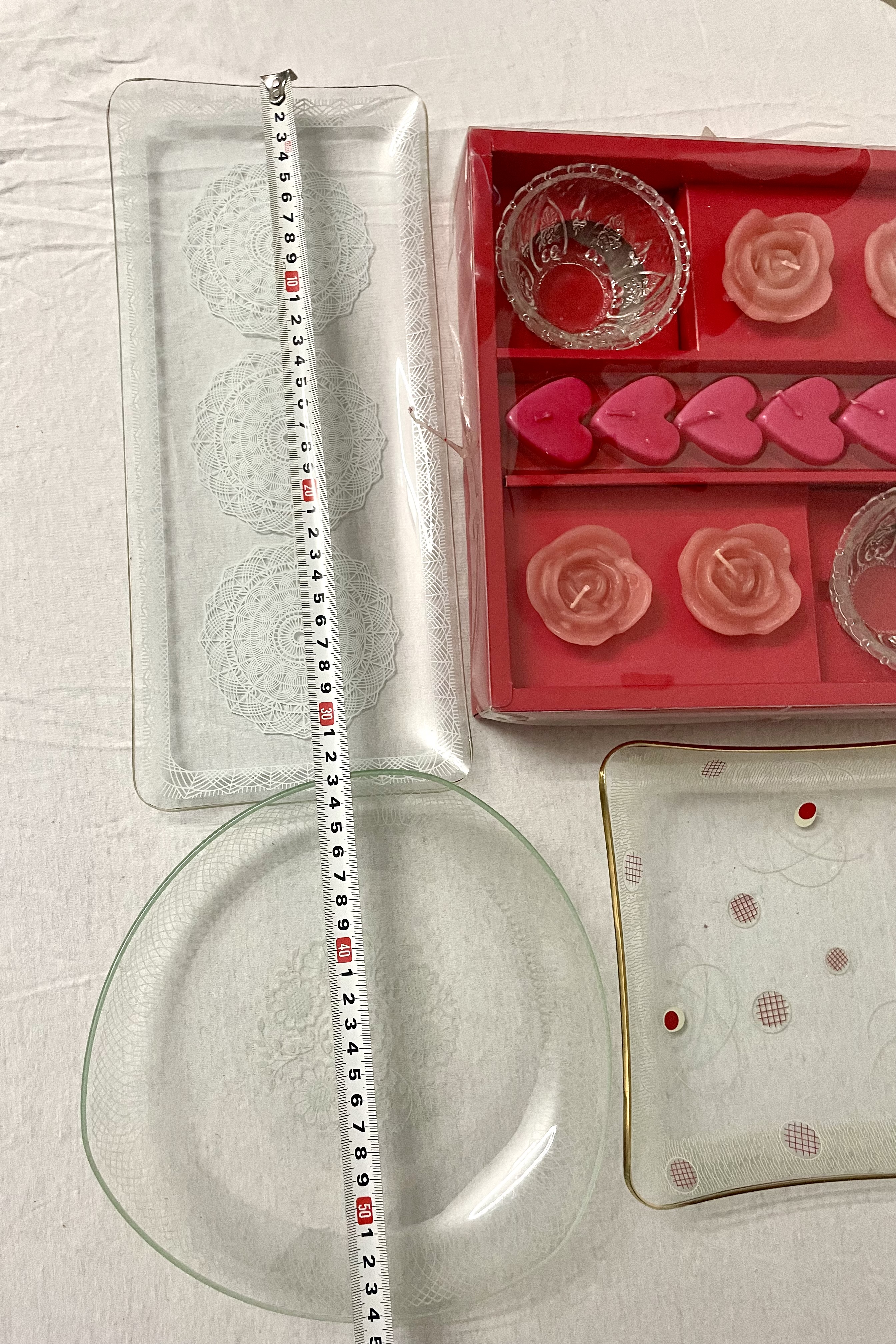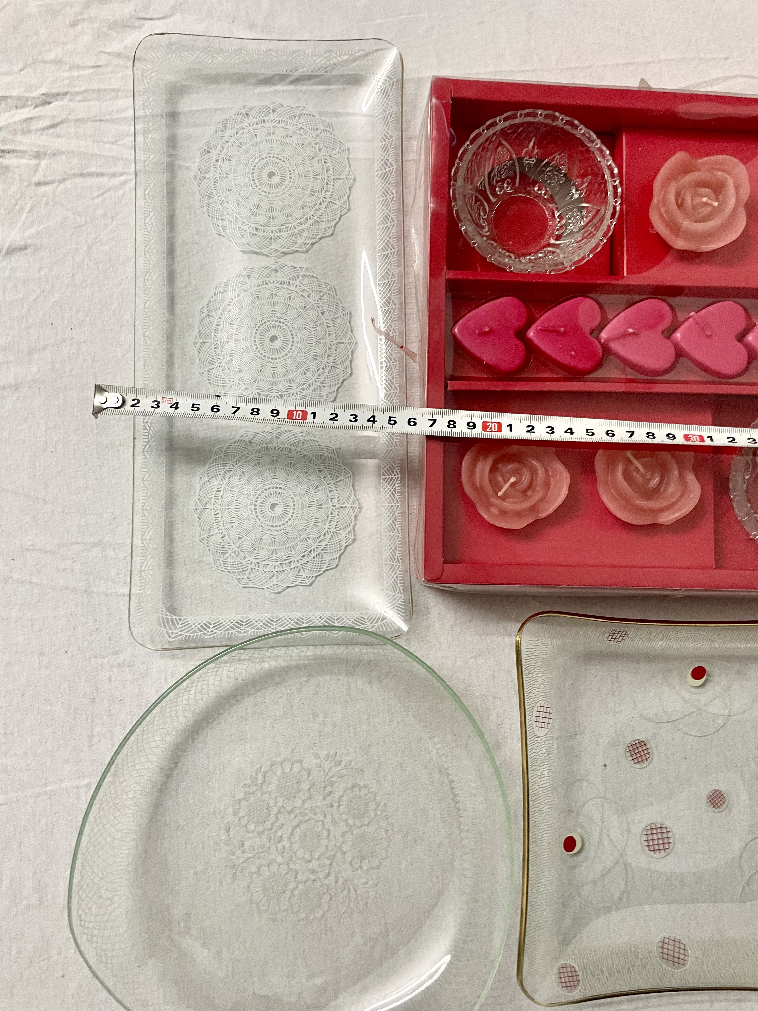 Kaarsen set met kristalen en glazen borden