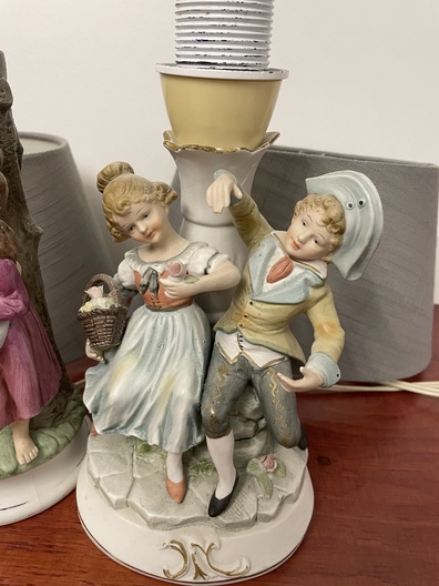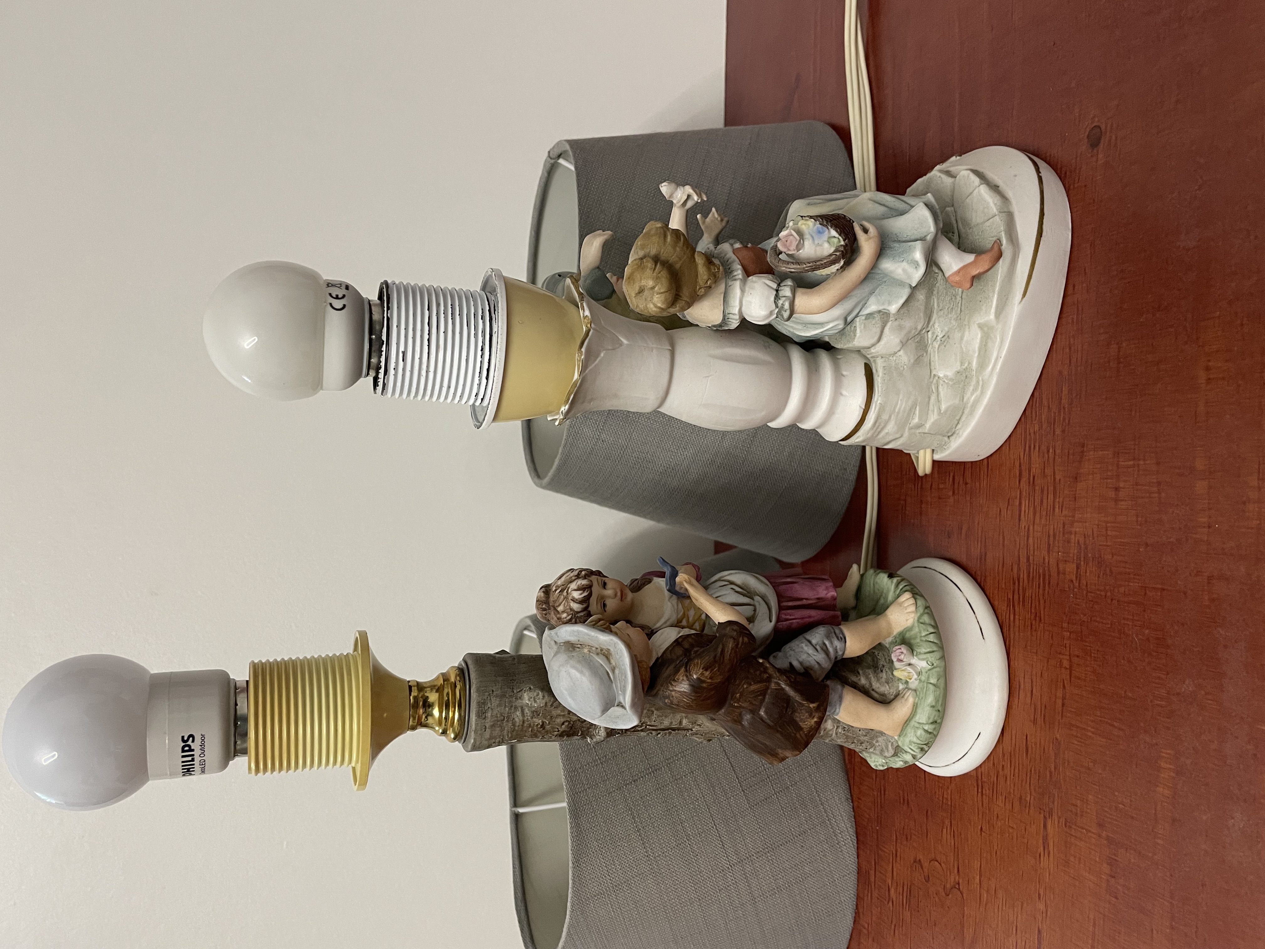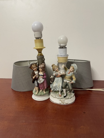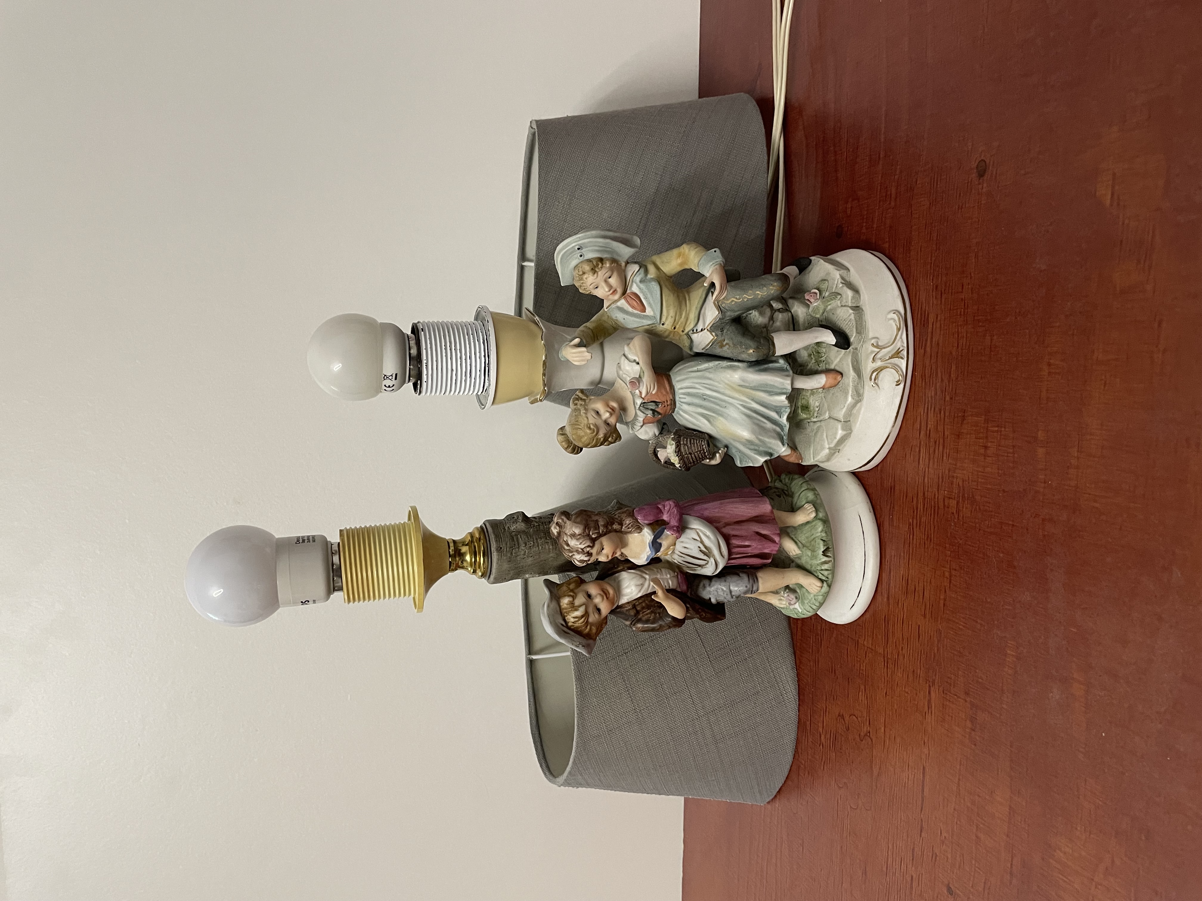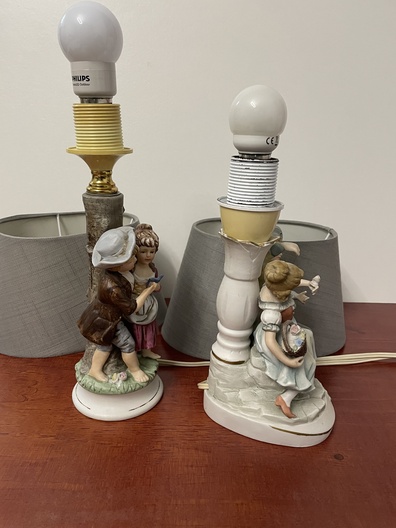 2 kleine tafellamp met lampenkapen van Duitse fabriek