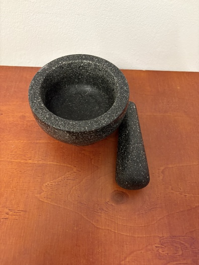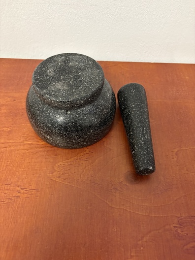 Een granieten vijzel met stamper (N-1)