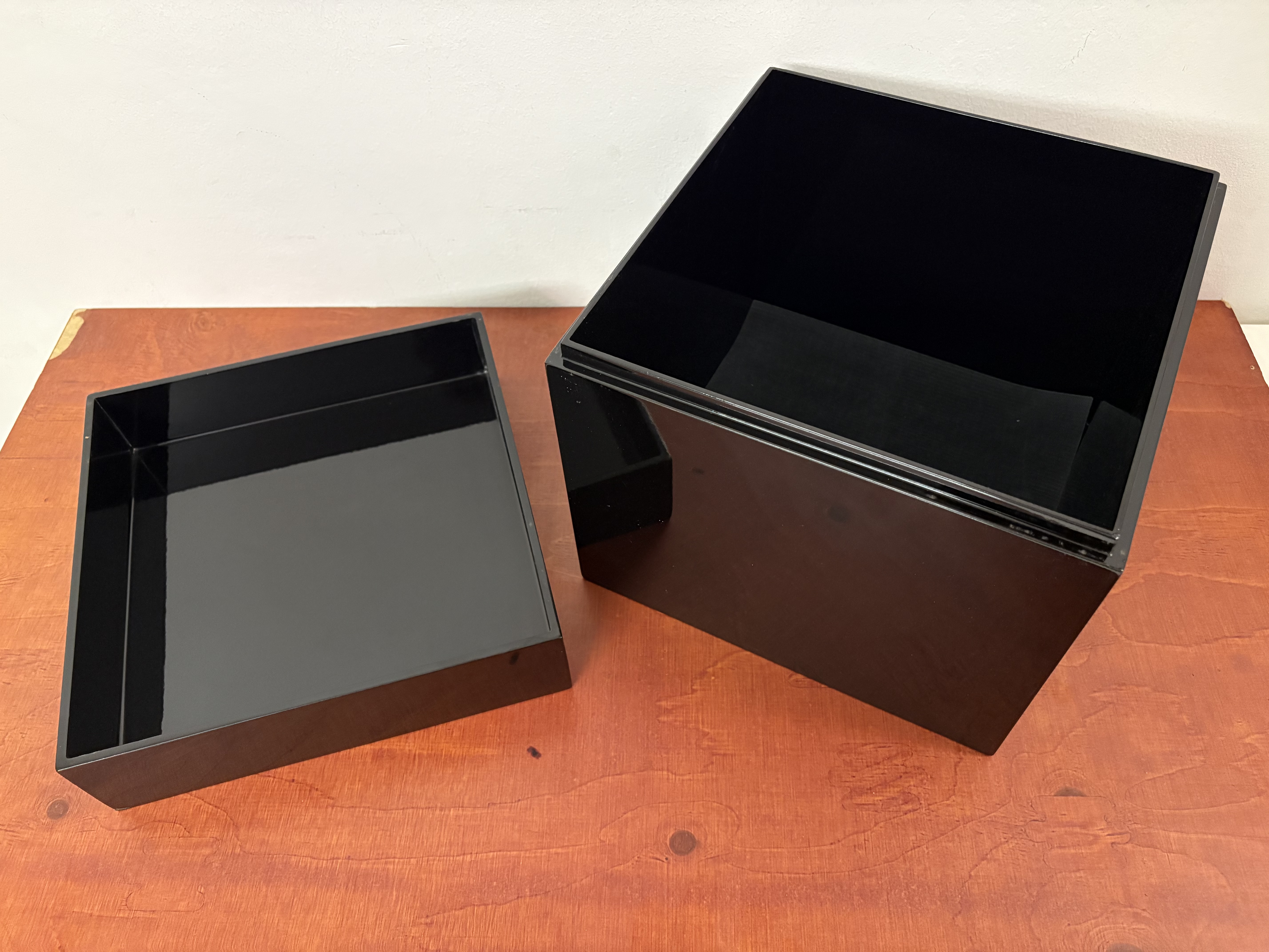2 stuks hard houten doos, hoogglans zwarte lak "Imperial" collation