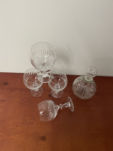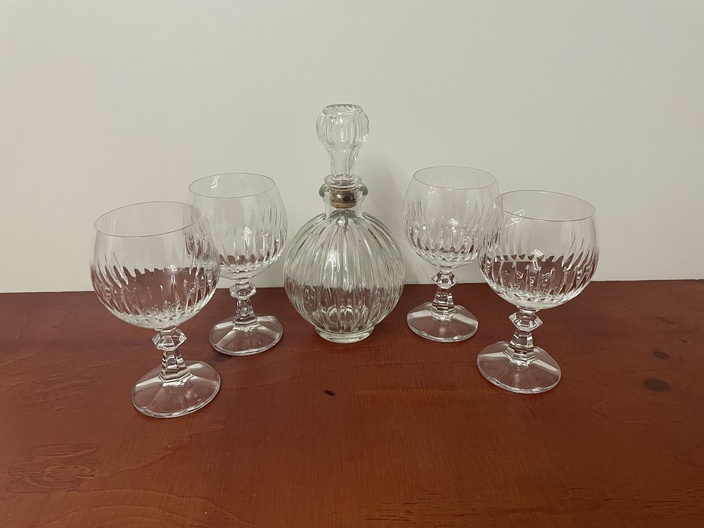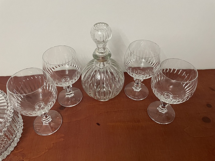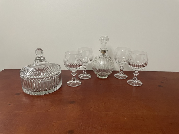 Kristallen bonbonnière en glazen met karaf