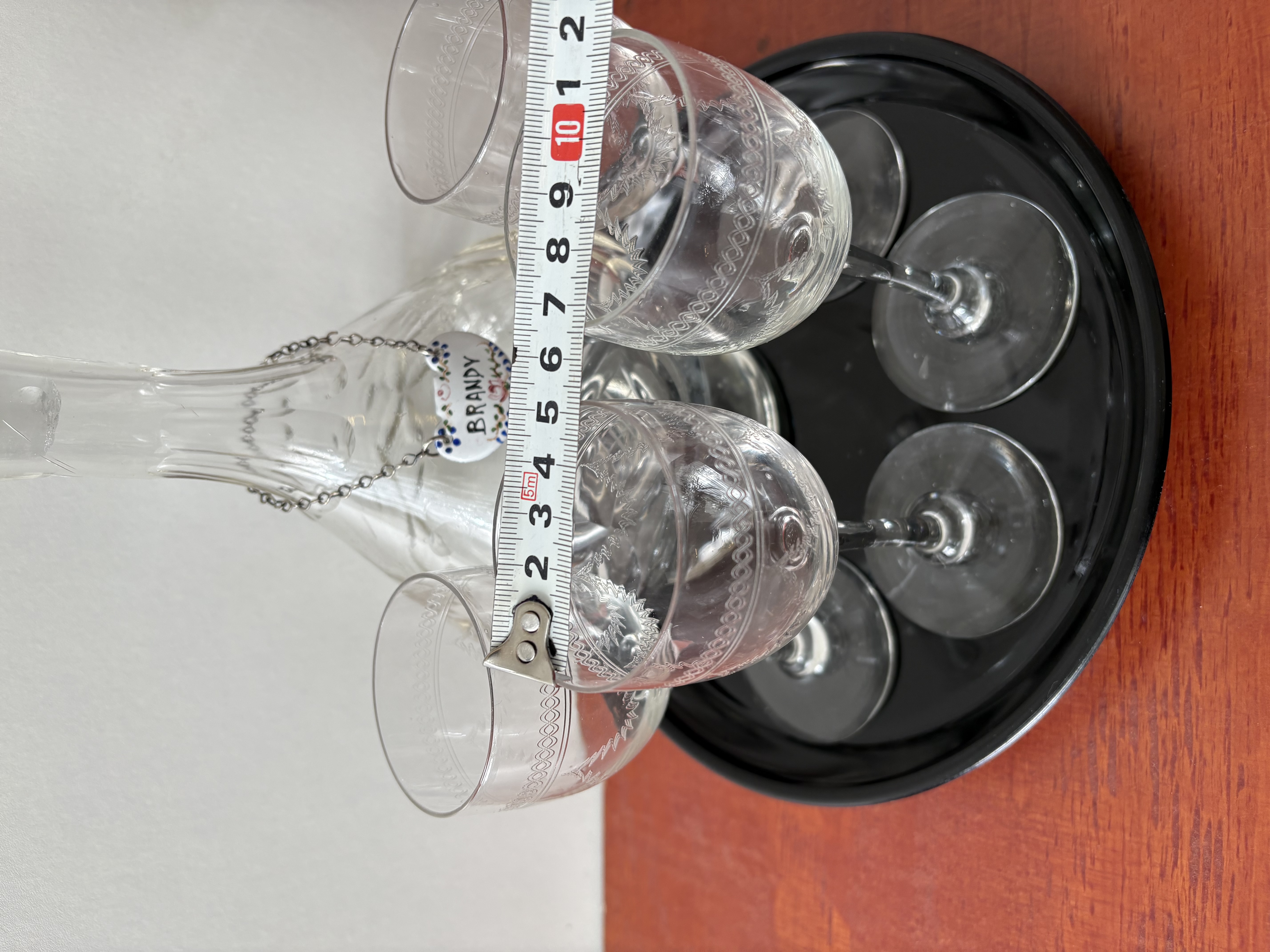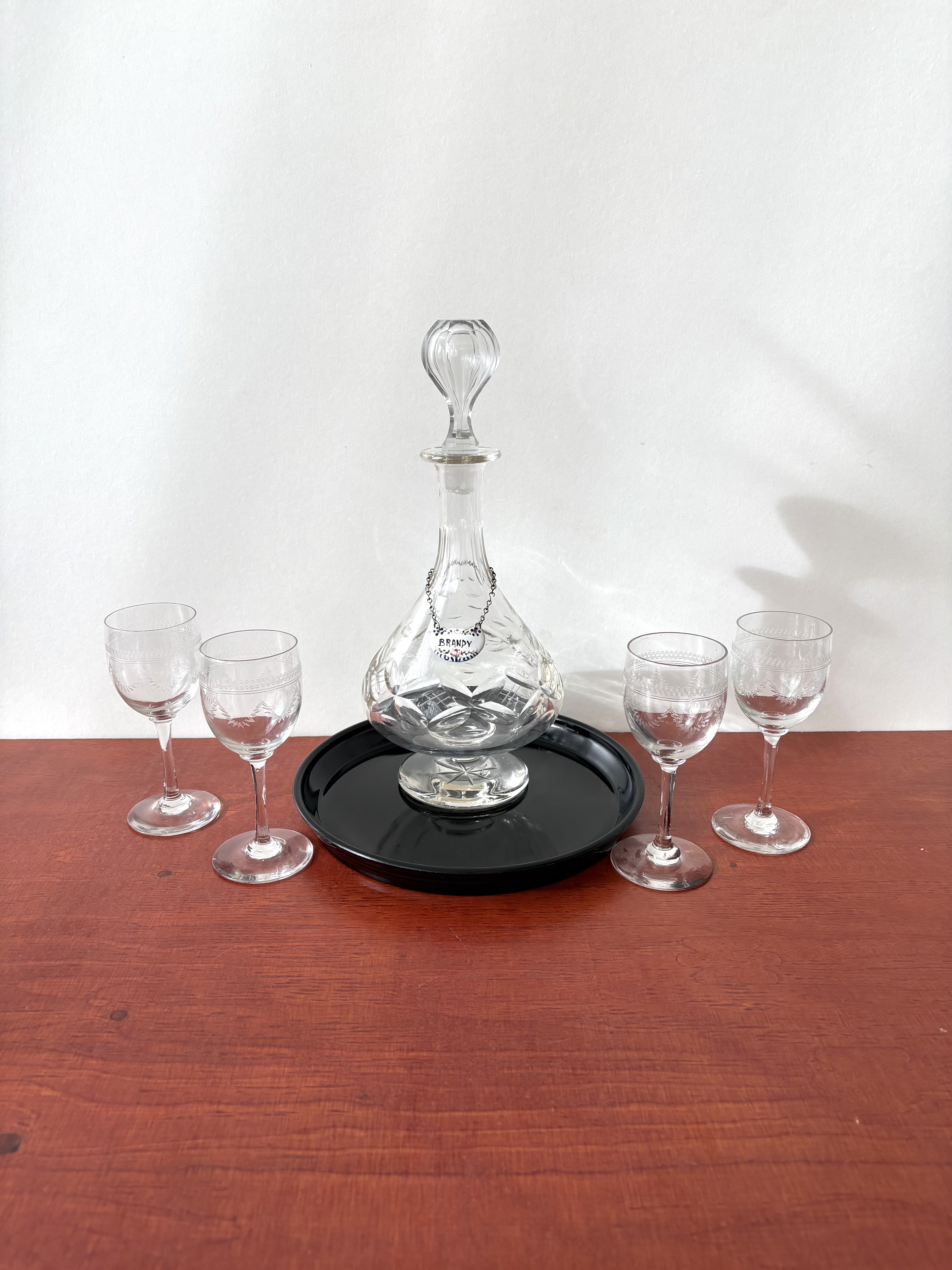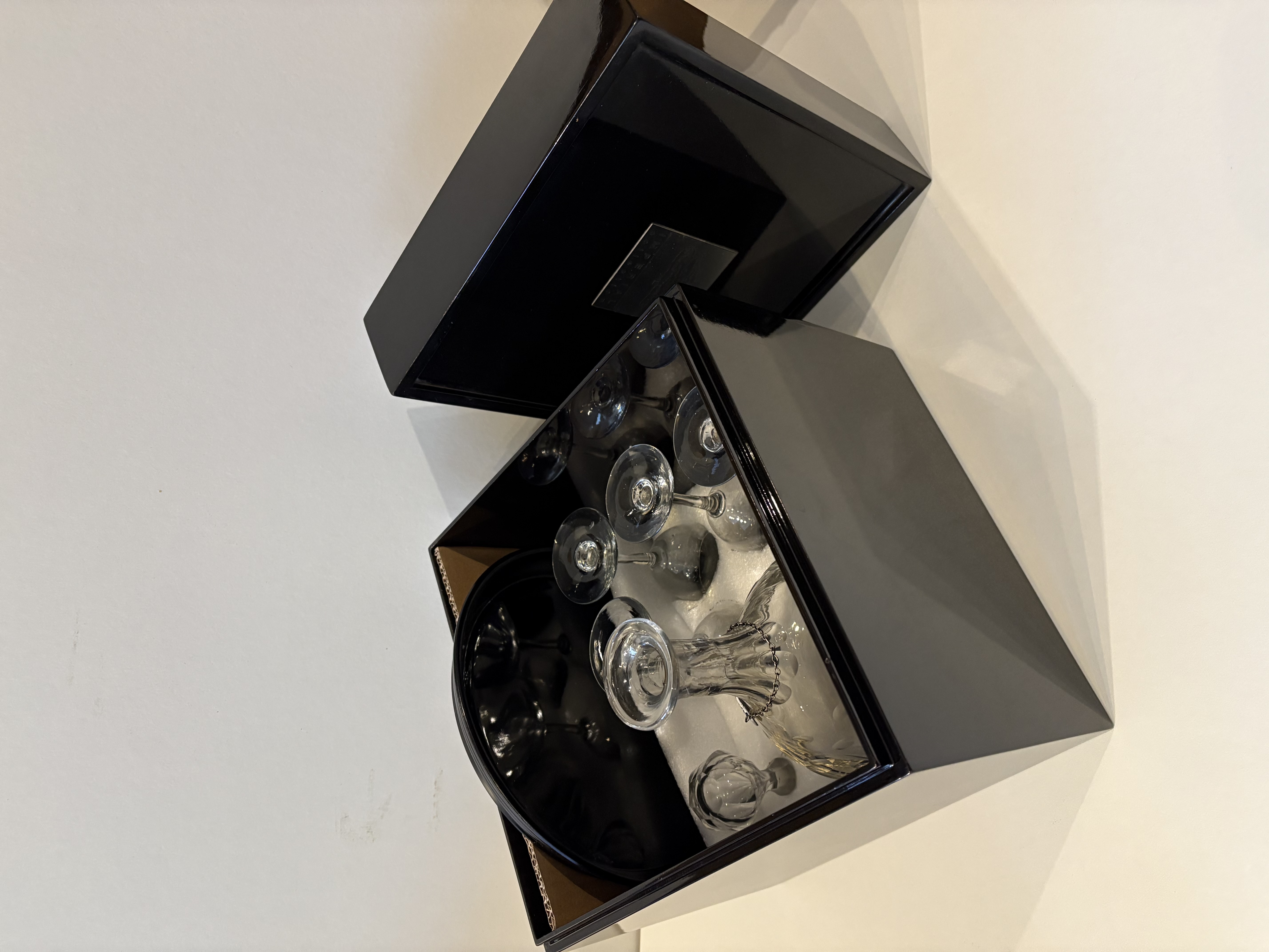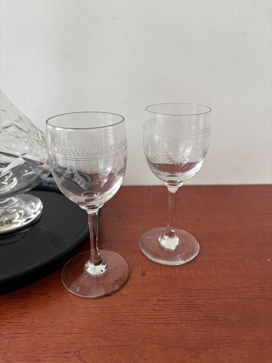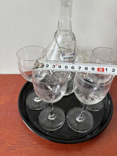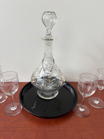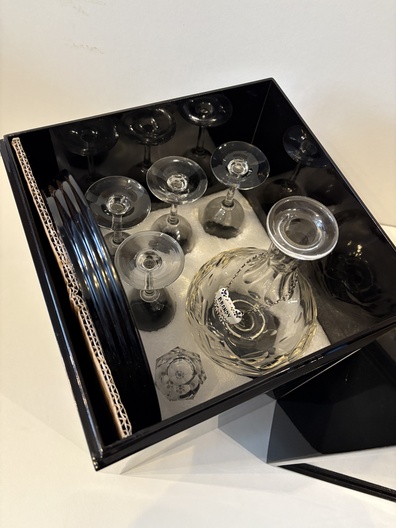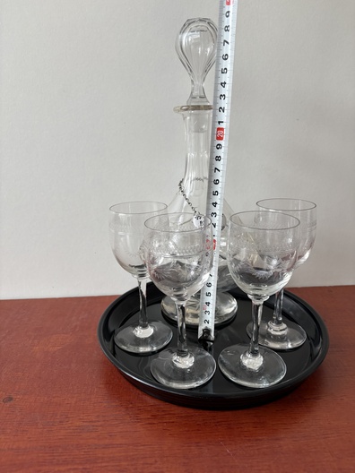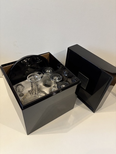 4 glazen met karaf in opbergdoos hardhout