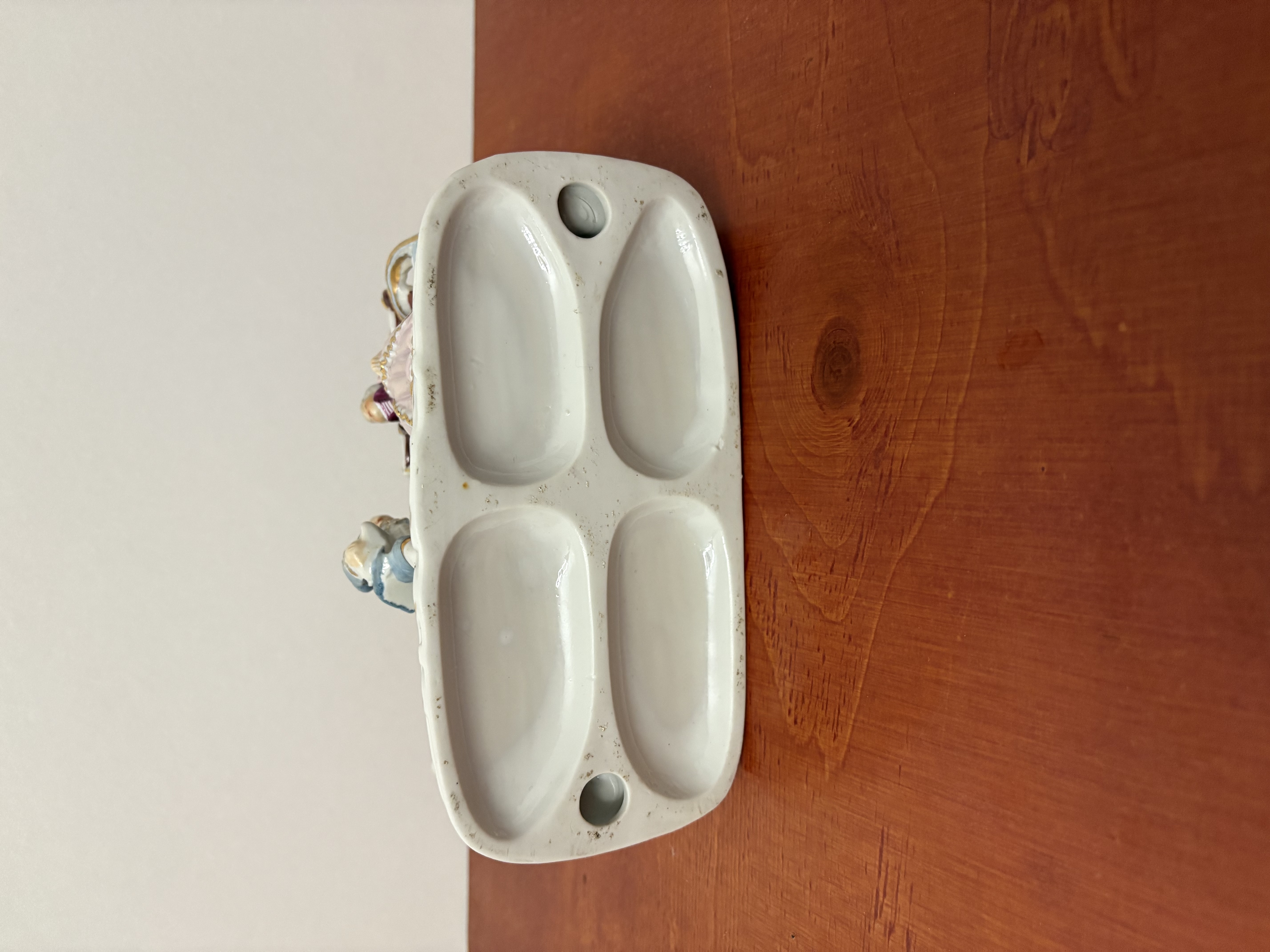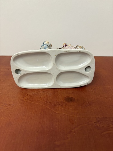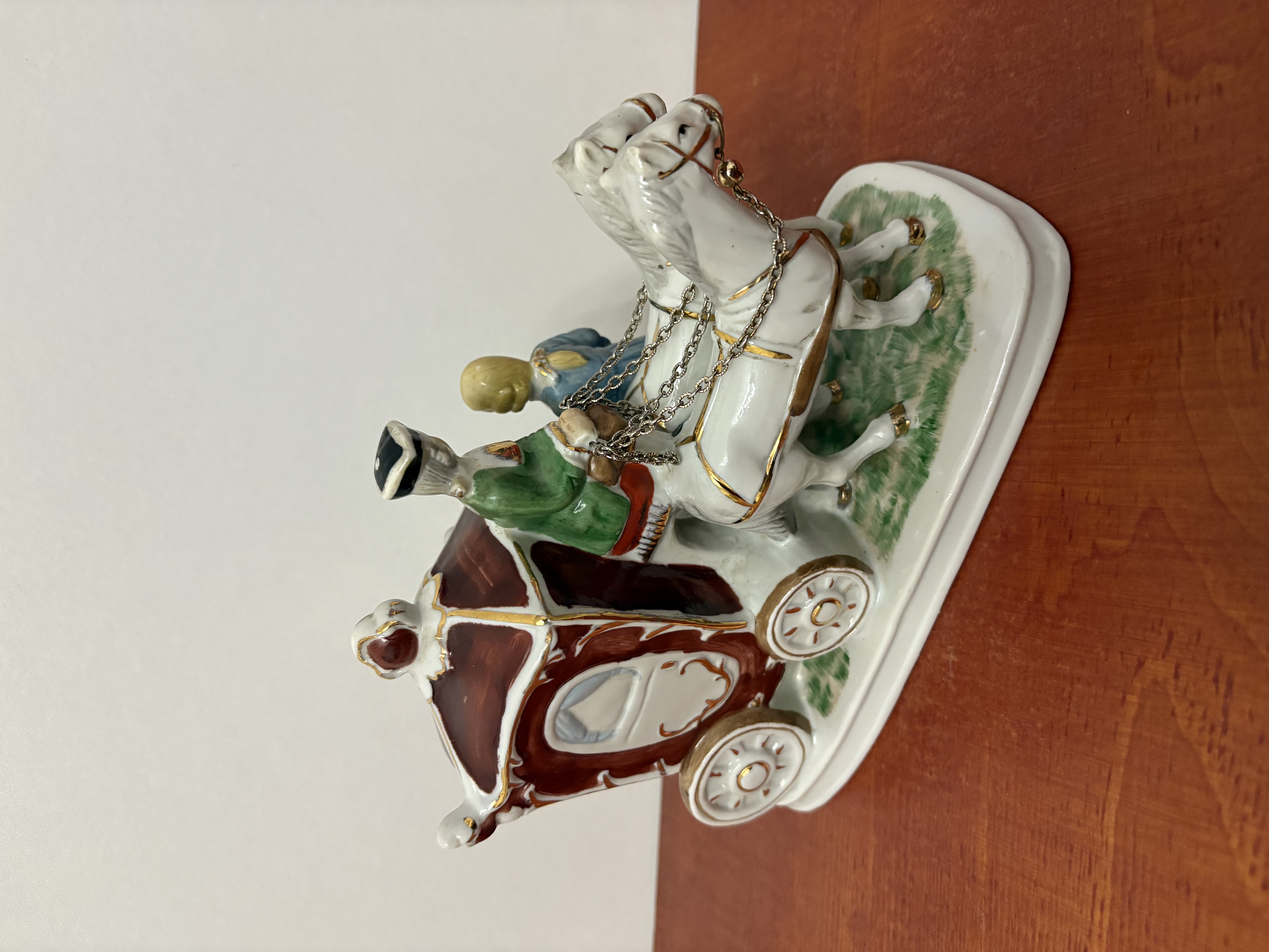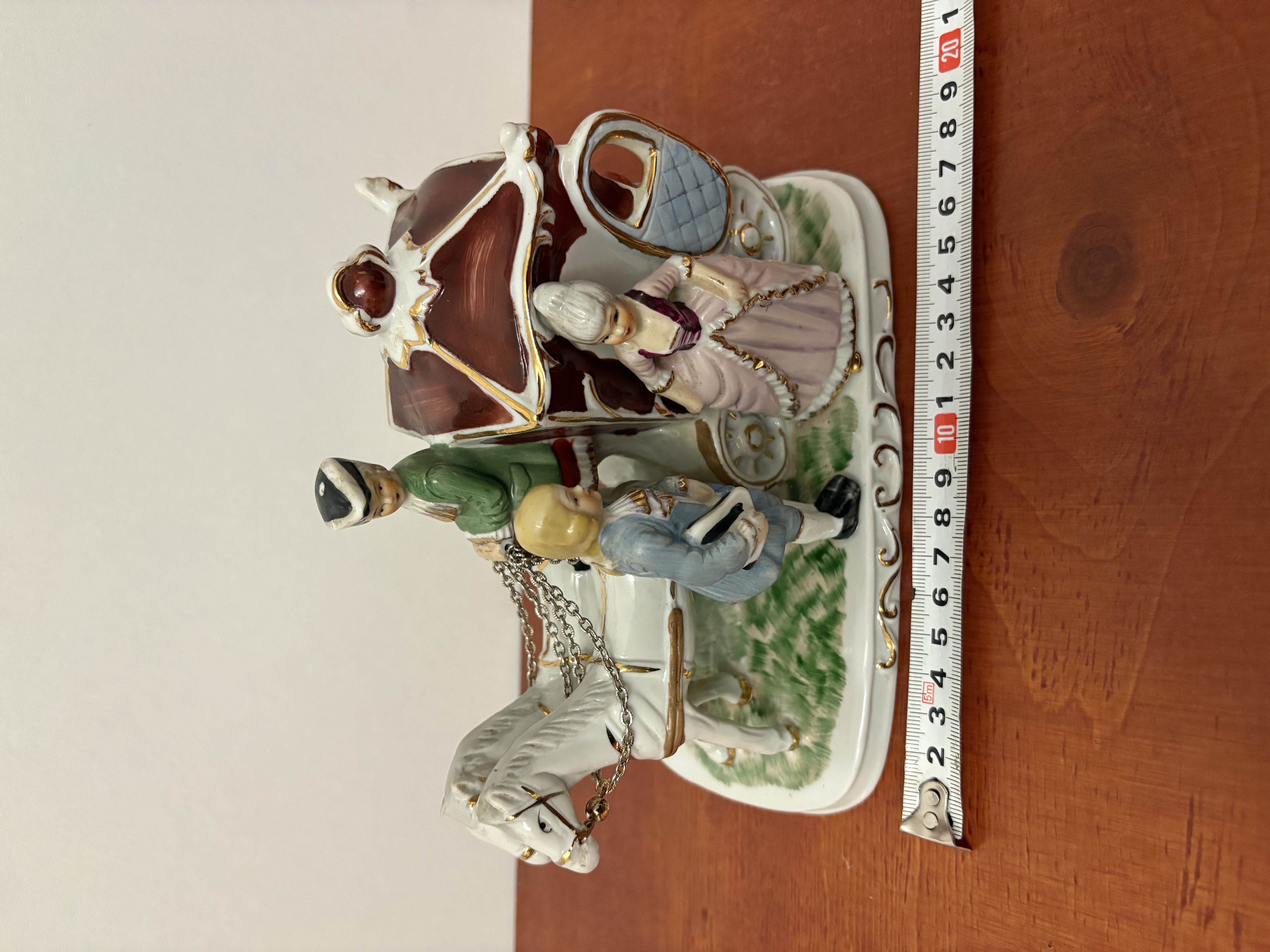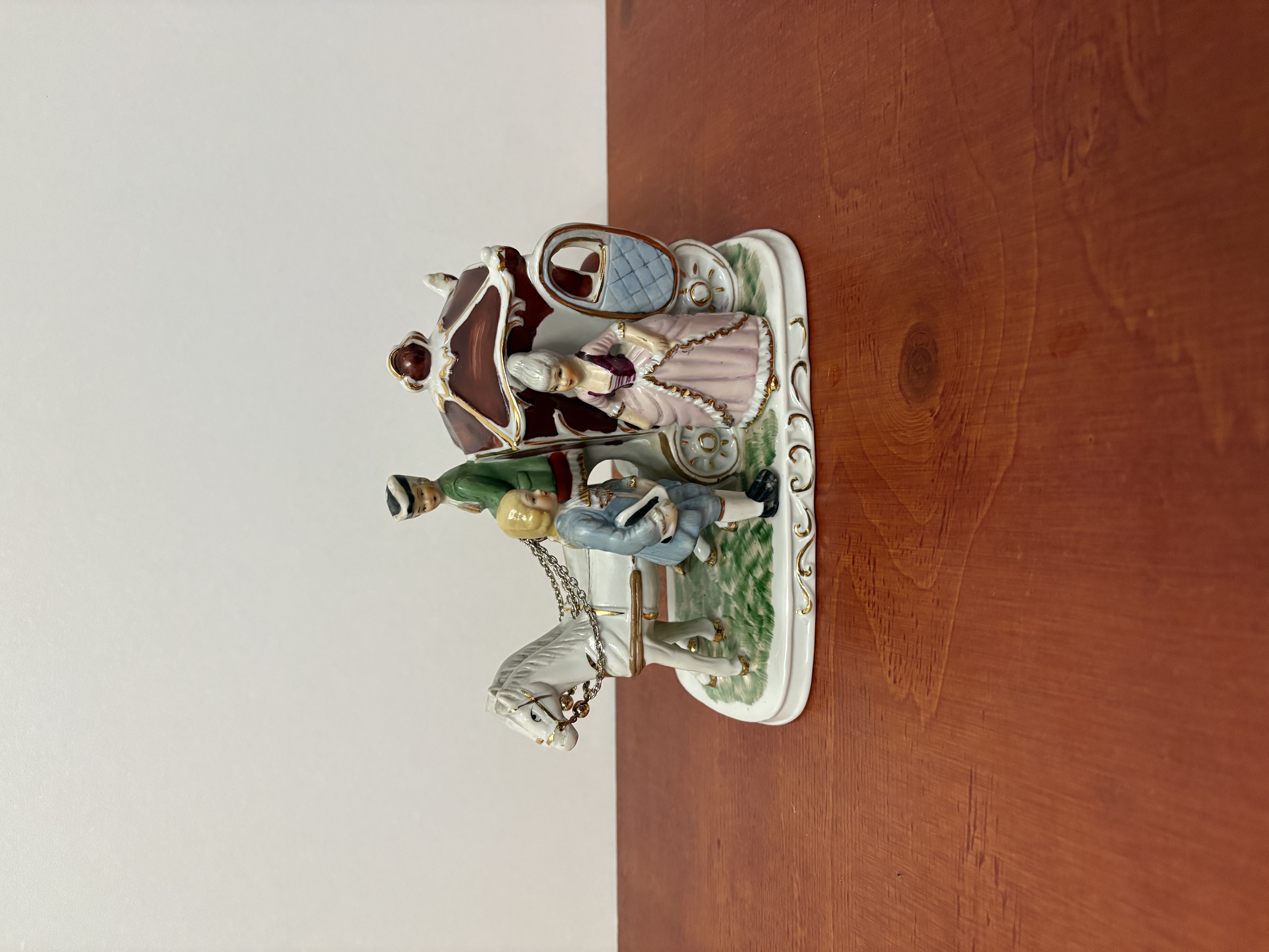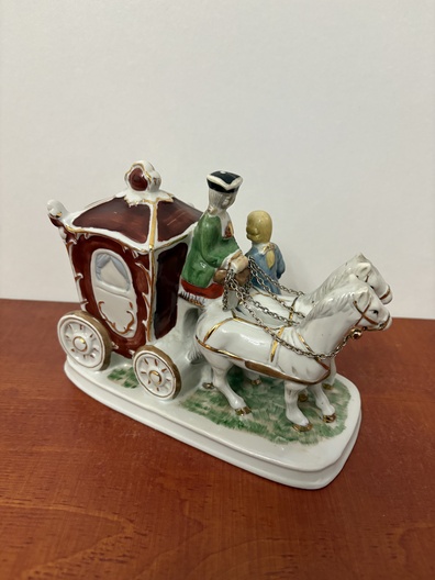 Een porseleinen paardenkoets met figuren