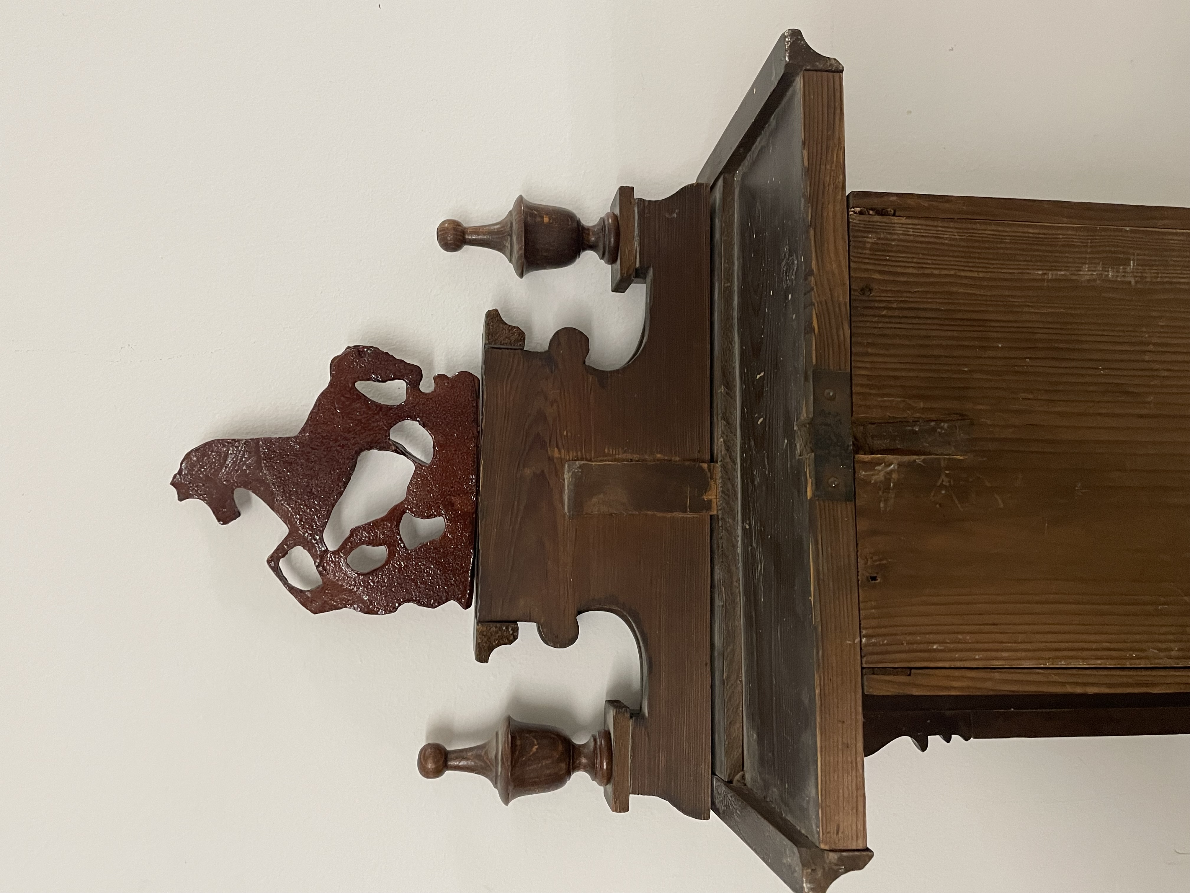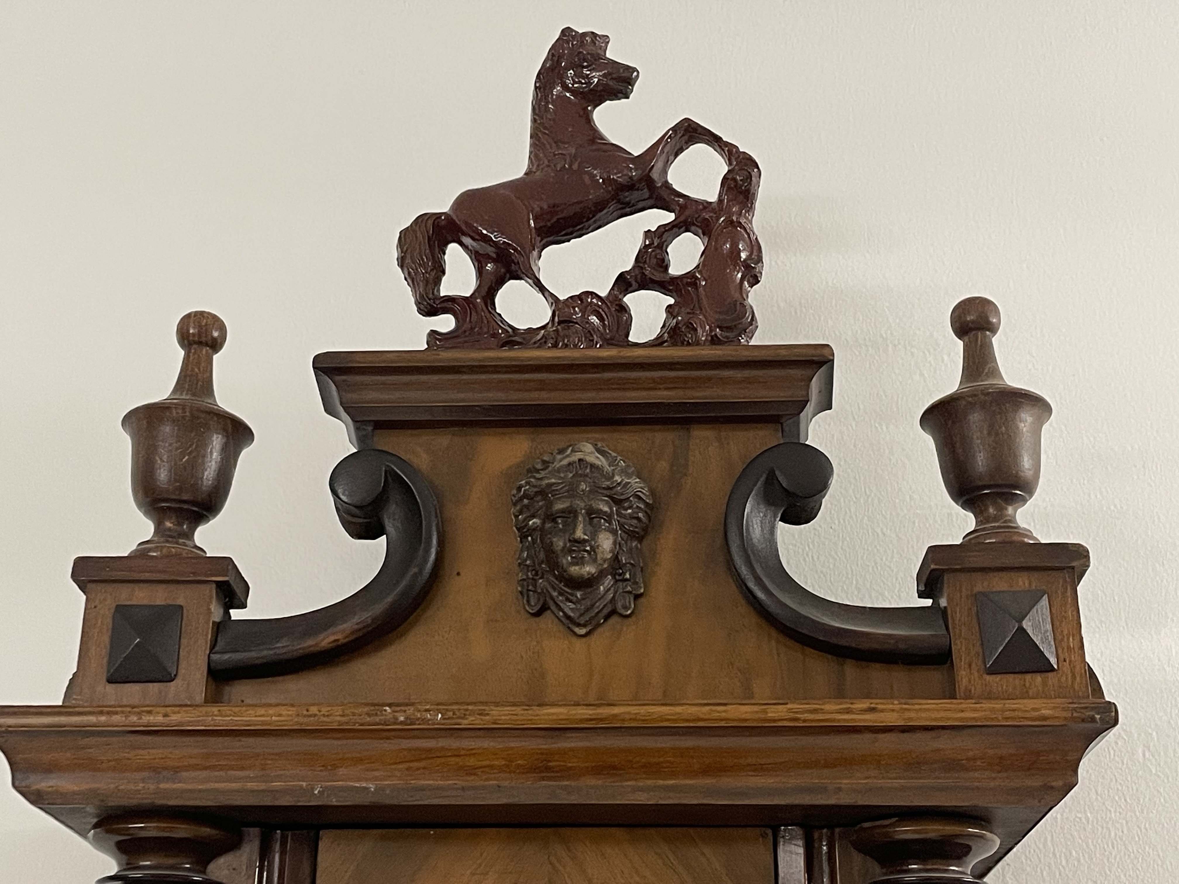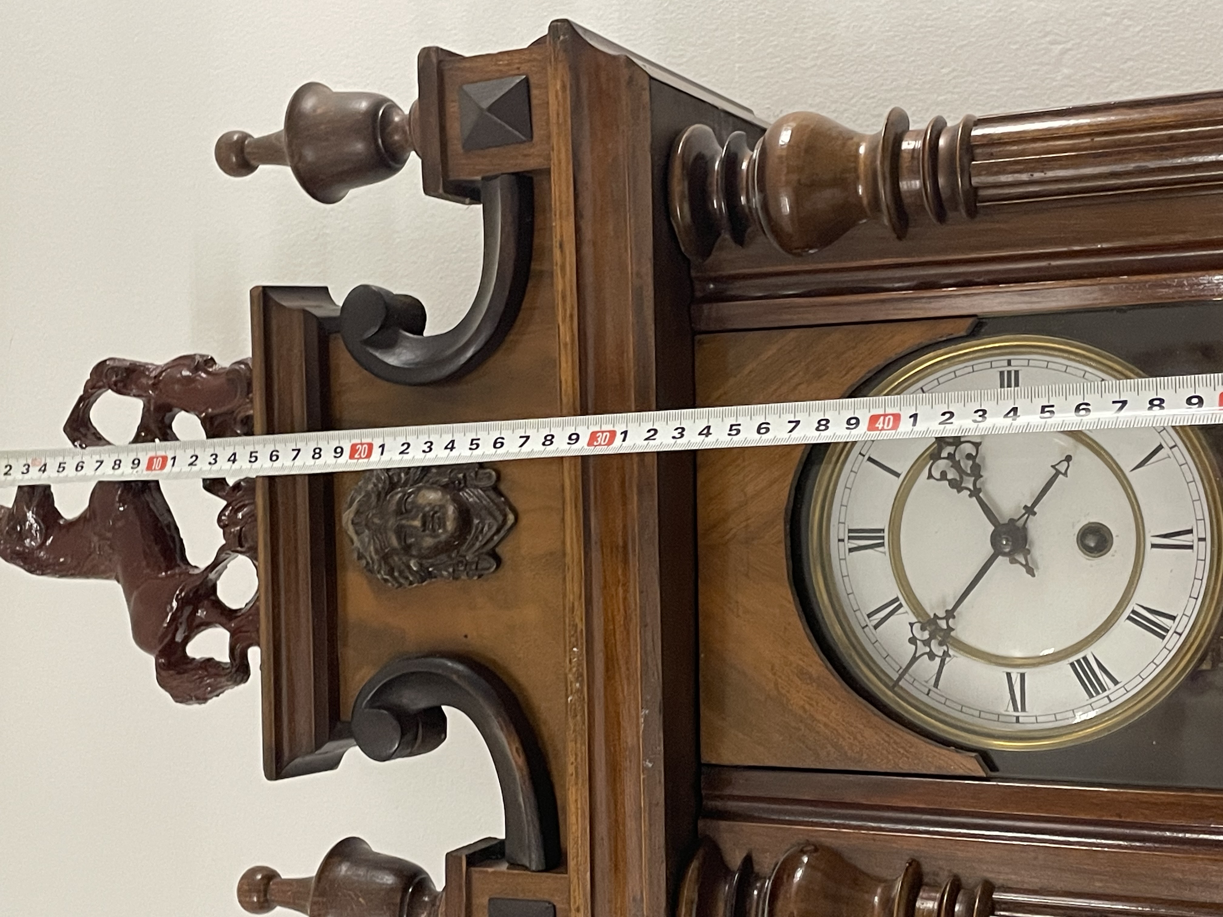 Klok is afkomstig van een klokkenmaker en is werkend uitgehaald van de muur. Hoe voorzichtig het ook is verplaatst kunnen we geen garantie geven (correcte werking).