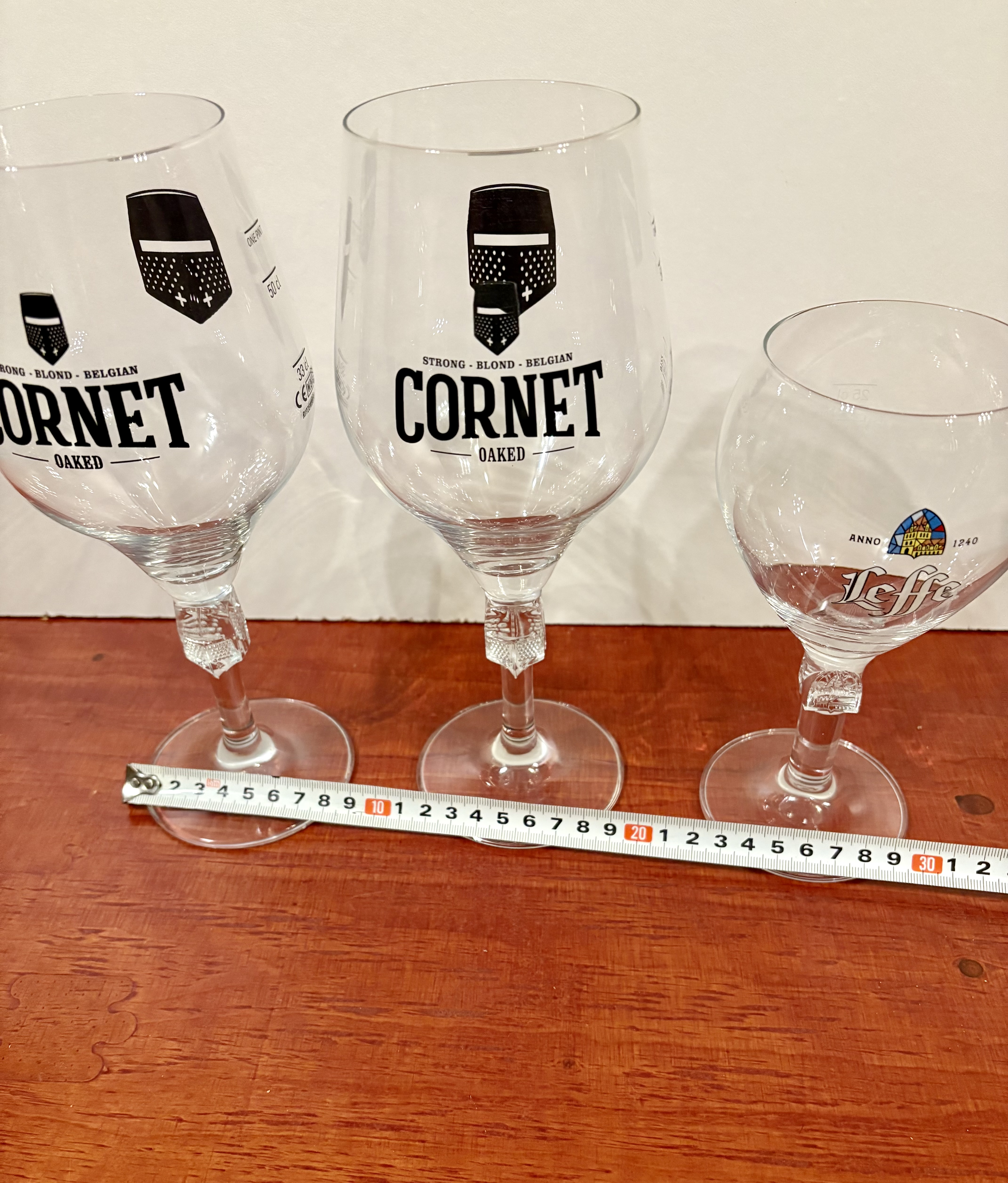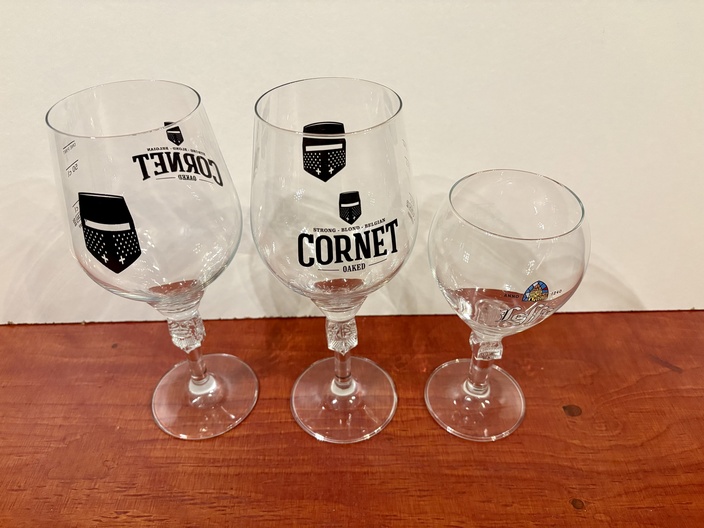 Bier glazen "2x CORNET" en een LEFFE