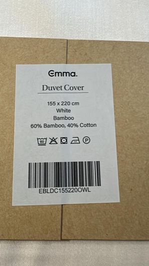 Dekbedovertrek 155X200 wit Bamboe 60% 40% katoen