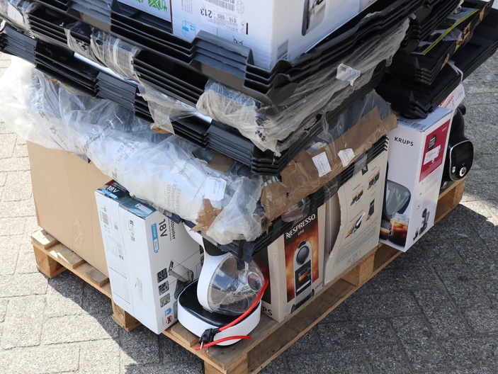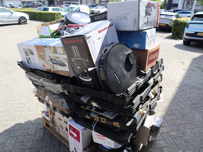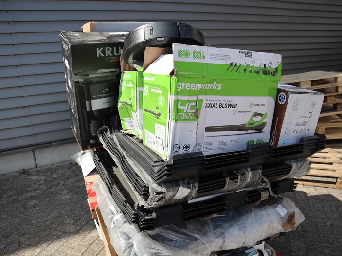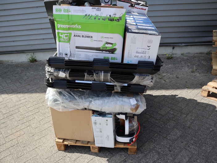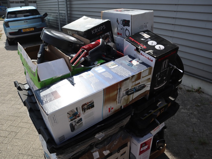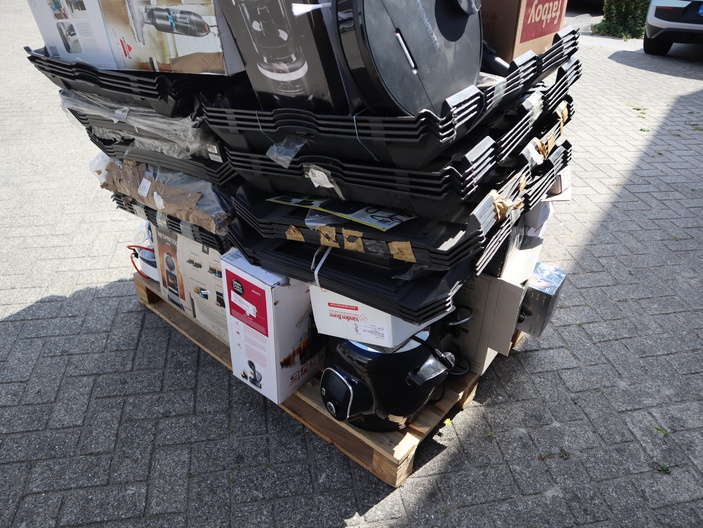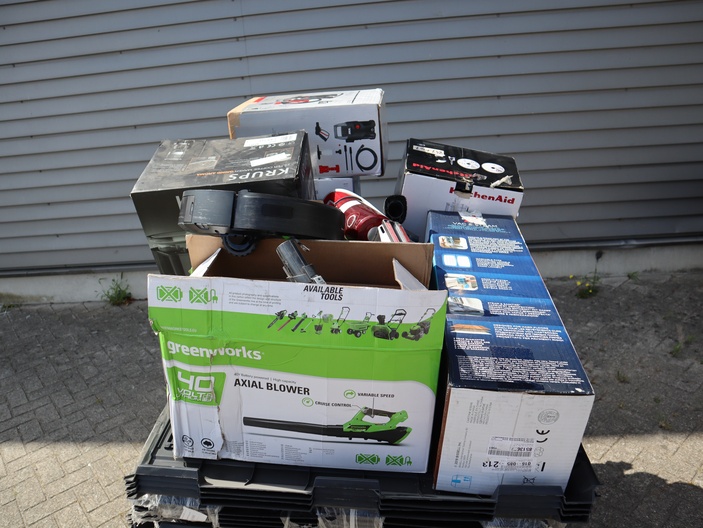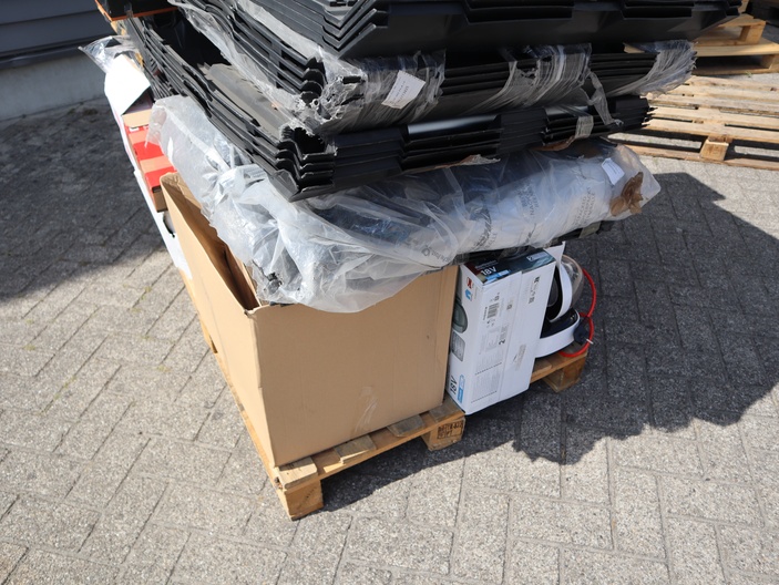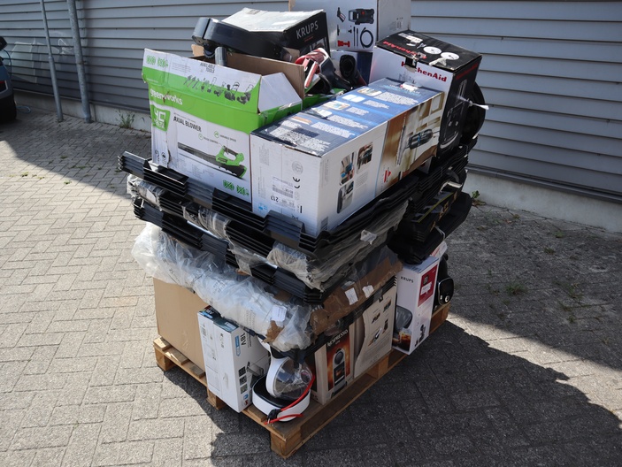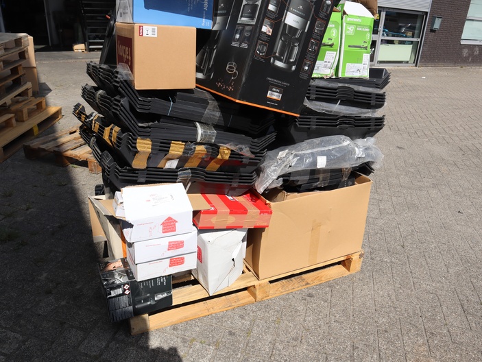 Dit betreft een partij ongecontroleerde retourgoederen van diverse producten, zie foto's wat er op de pallet zit. Producten kunnen defect zijn en op dit kavel is het herroepingsrecht niet van toepassing. Ophalen in Waalre mogelijk anders verzendkosten a €70,- per pallet.