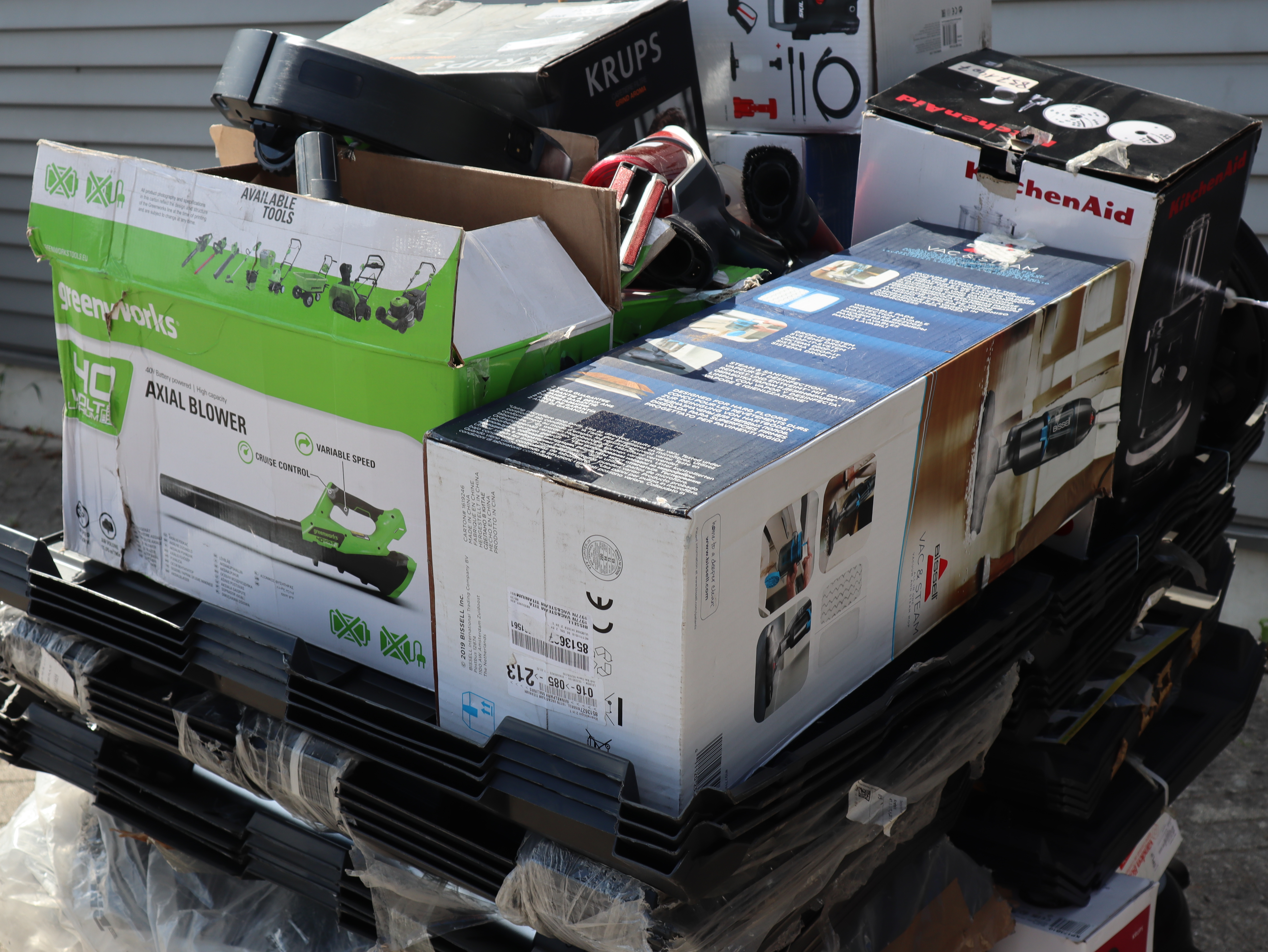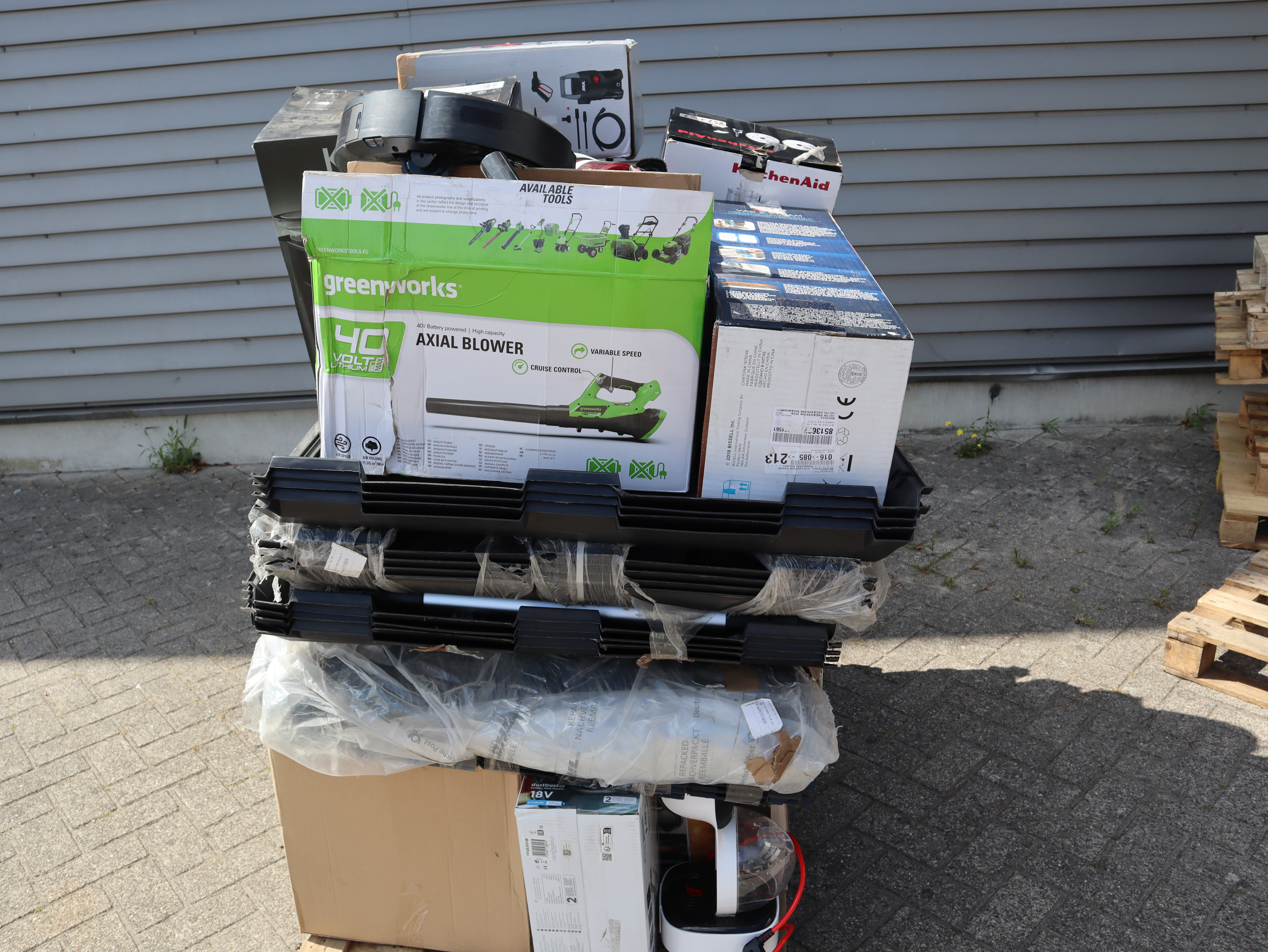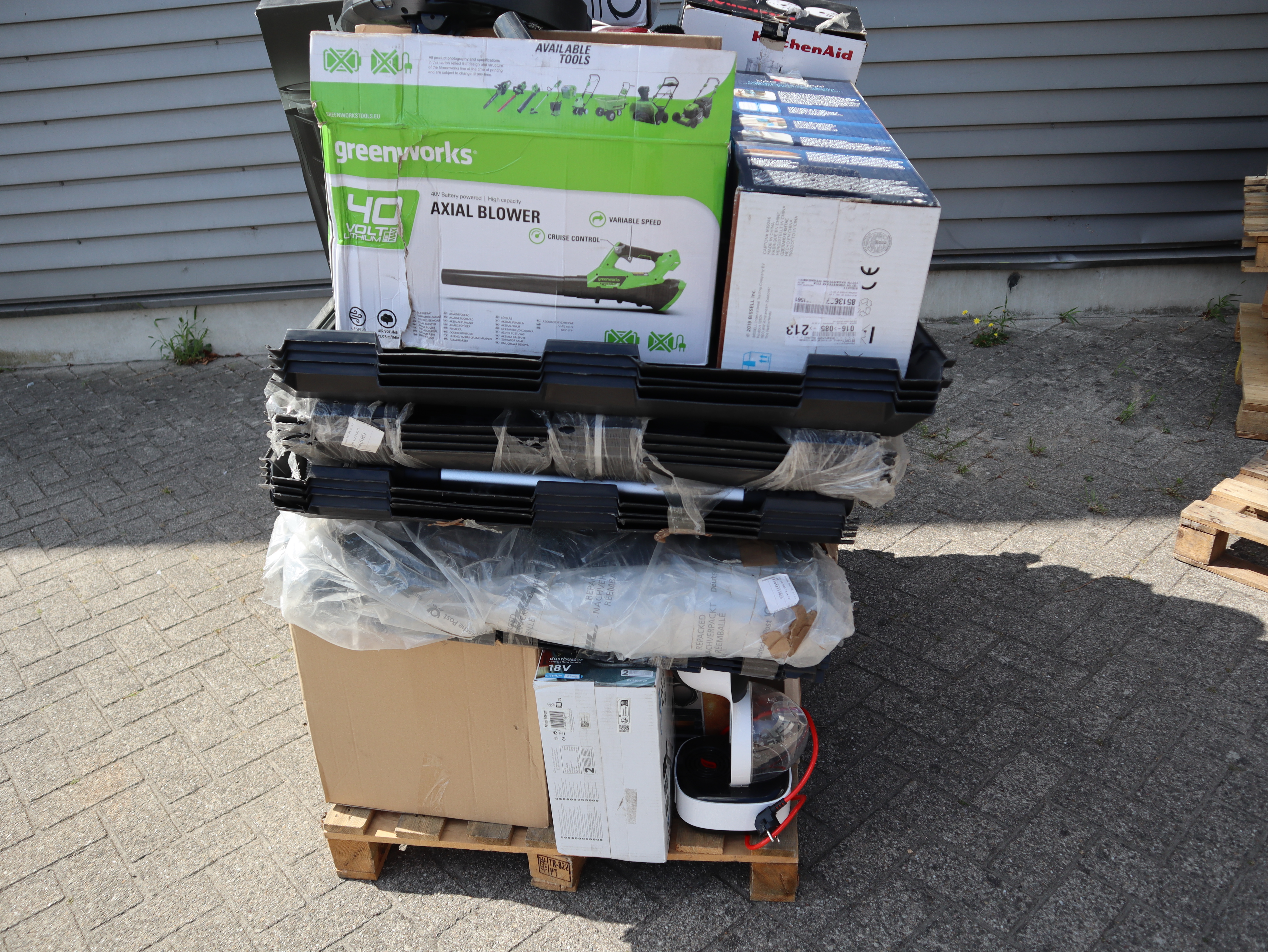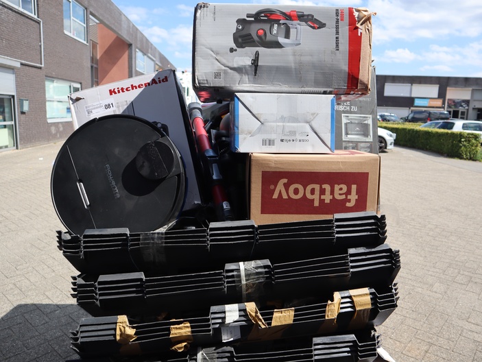 Dit betreft een partij ongecontroleerde retourgoederen van diverse producten, zie foto's wat er op de pallet zit. Producten kunnen defect zijn en op dit kavel is het herroepingsrecht niet van toepassing. Ophalen in Waalre mogelijk anders verzendkosten a €70,- per pallet.
