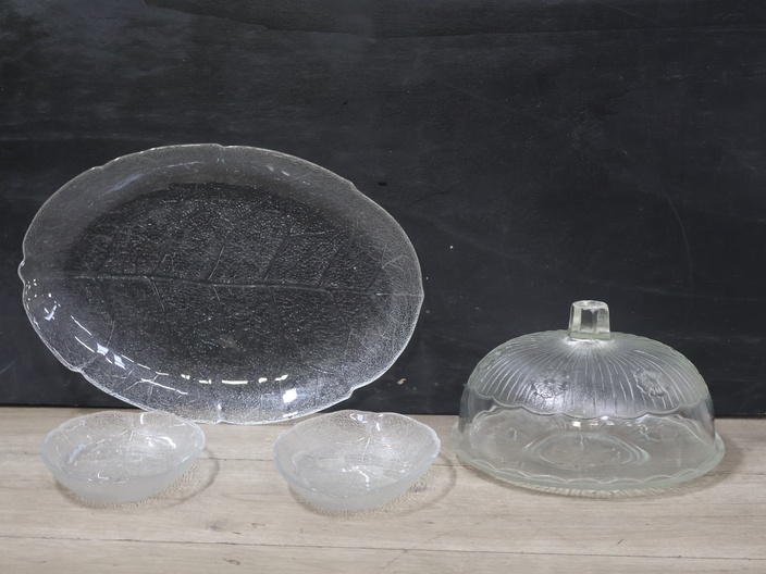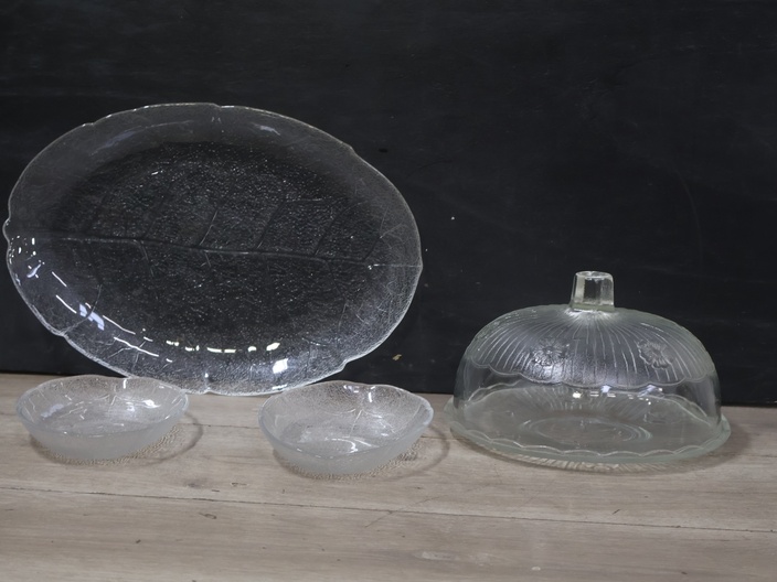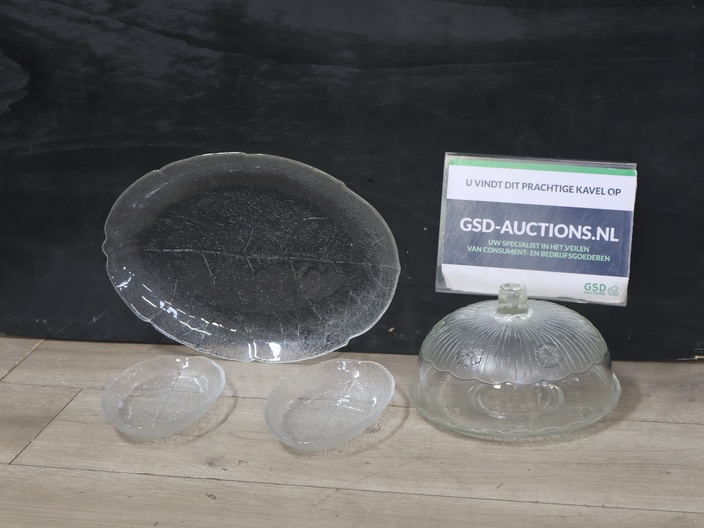Set van 3 Glazen Schalen & 1 Stolp'