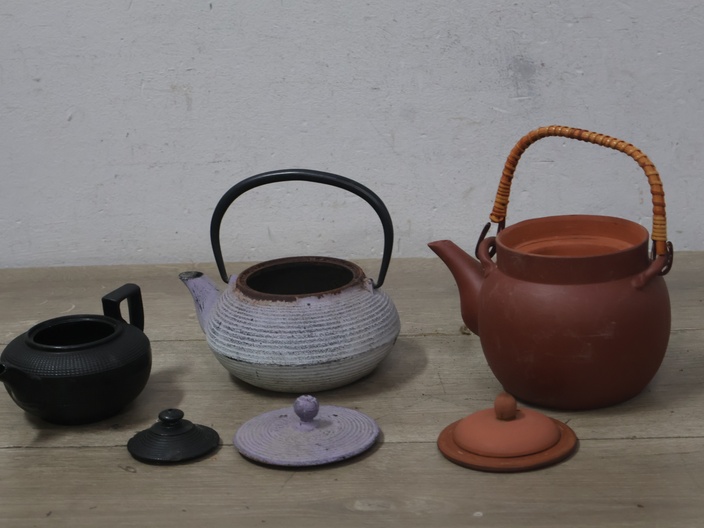 Mix van 3 Theepotten (1 Gietijzer/1 Keramiek/1 Terracotta)''