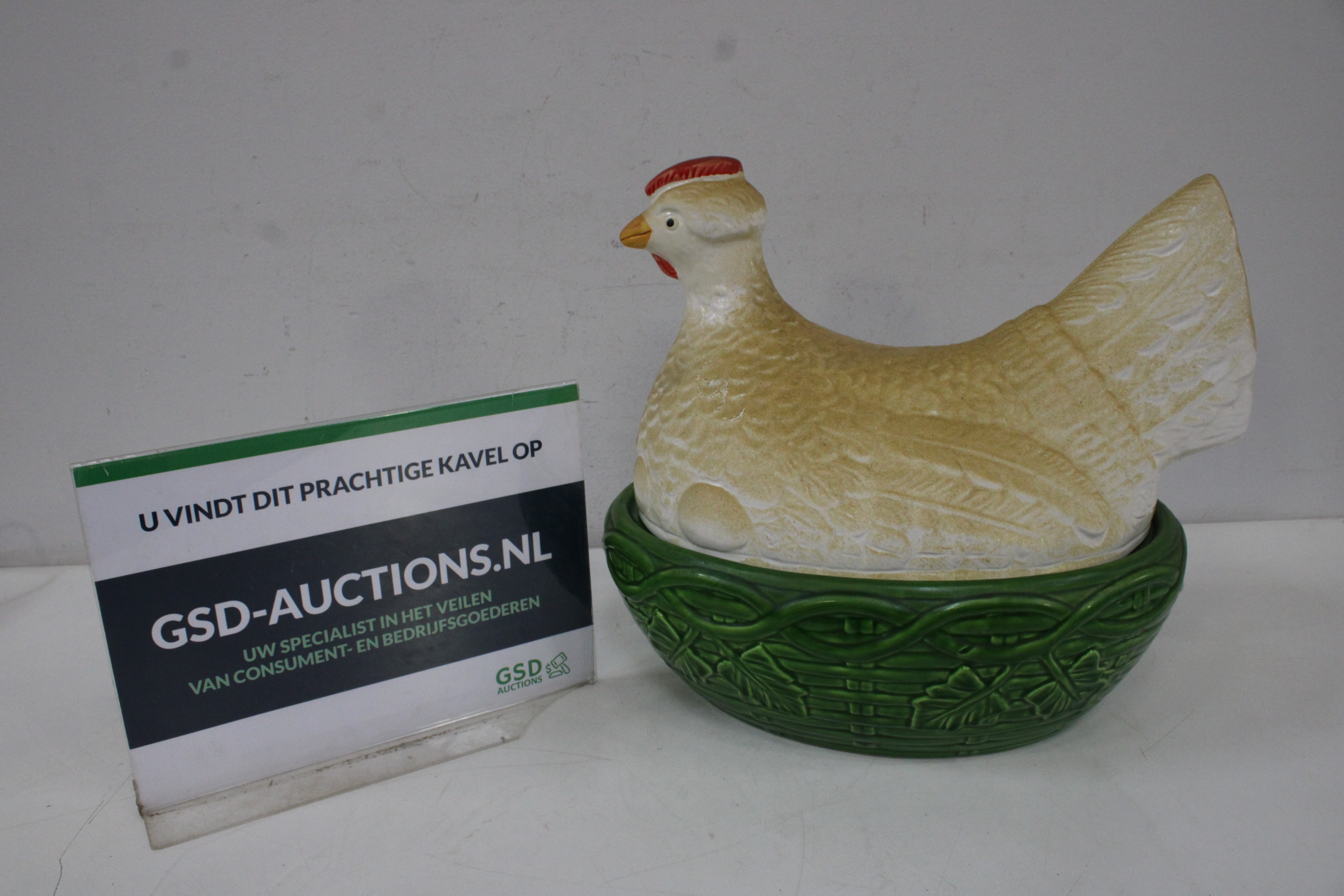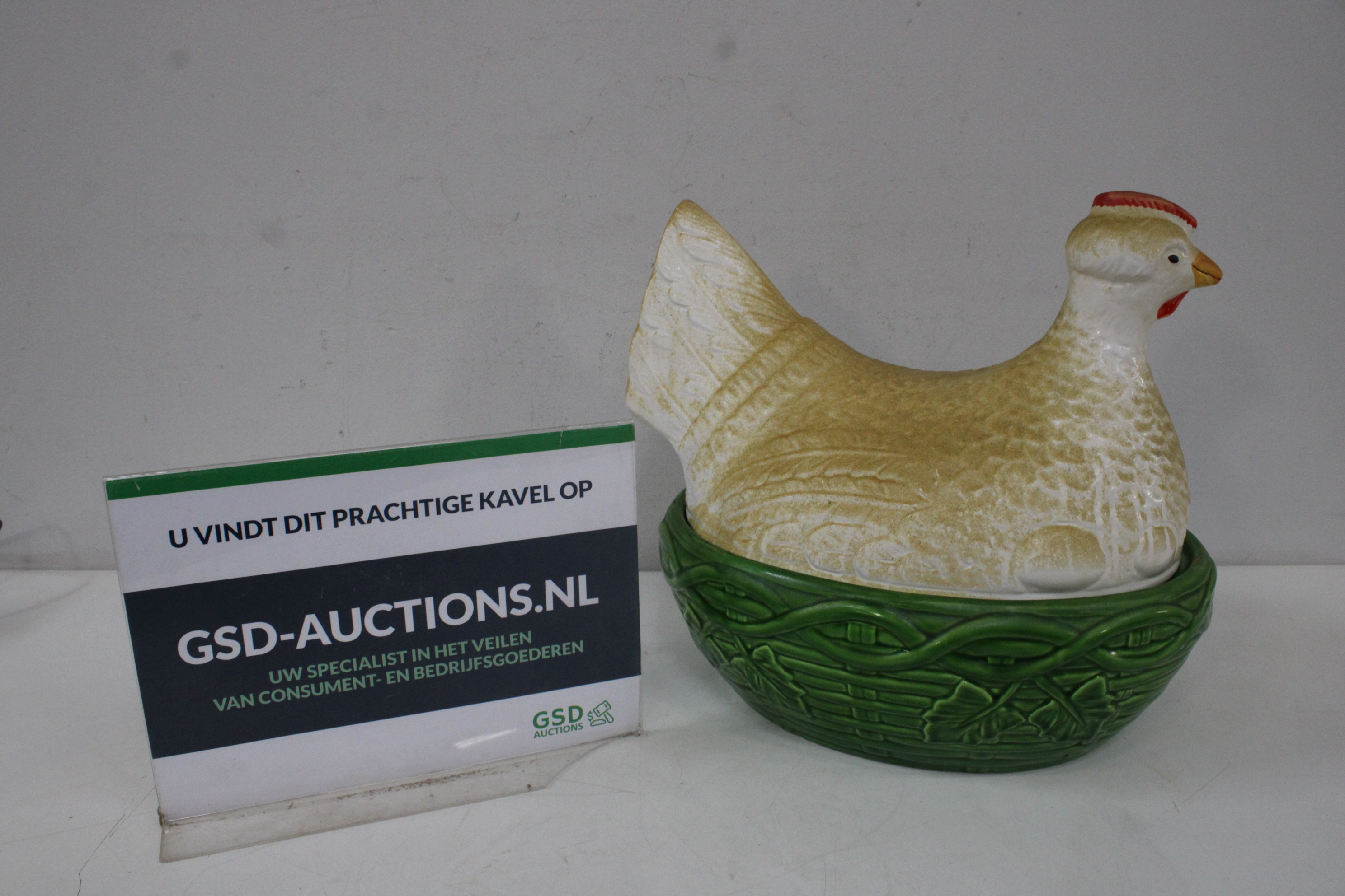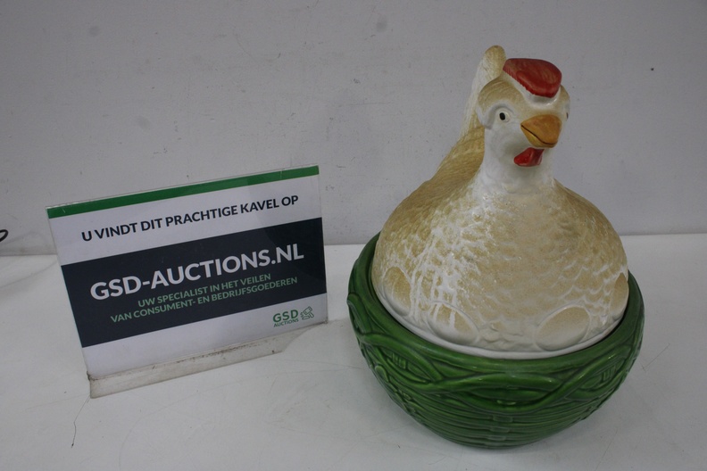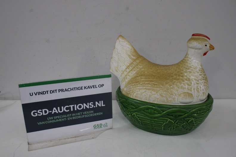 Keramische Kip op Mand Eierhouder