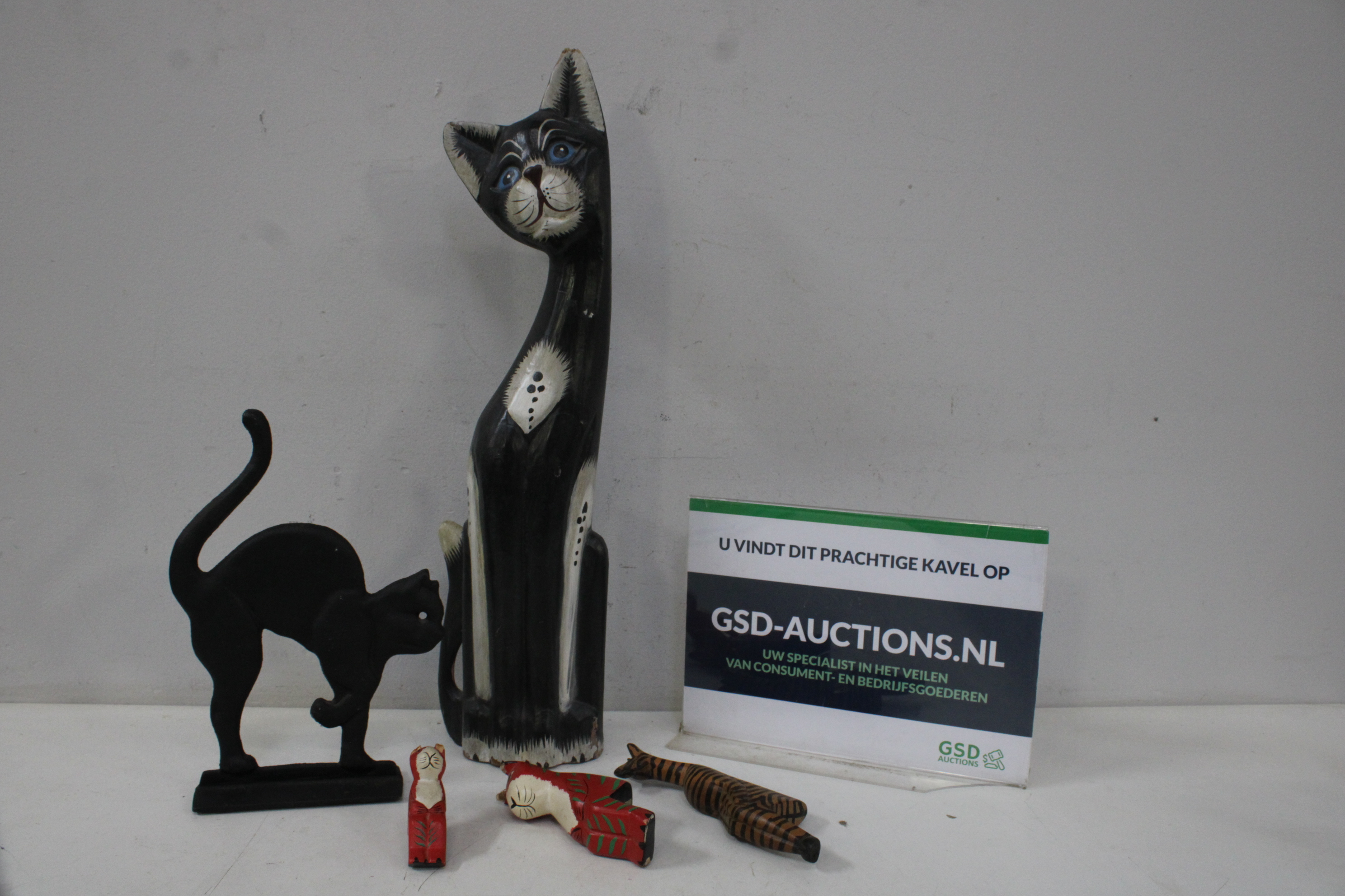 Mix van 5 Houten Katten Sculpturen