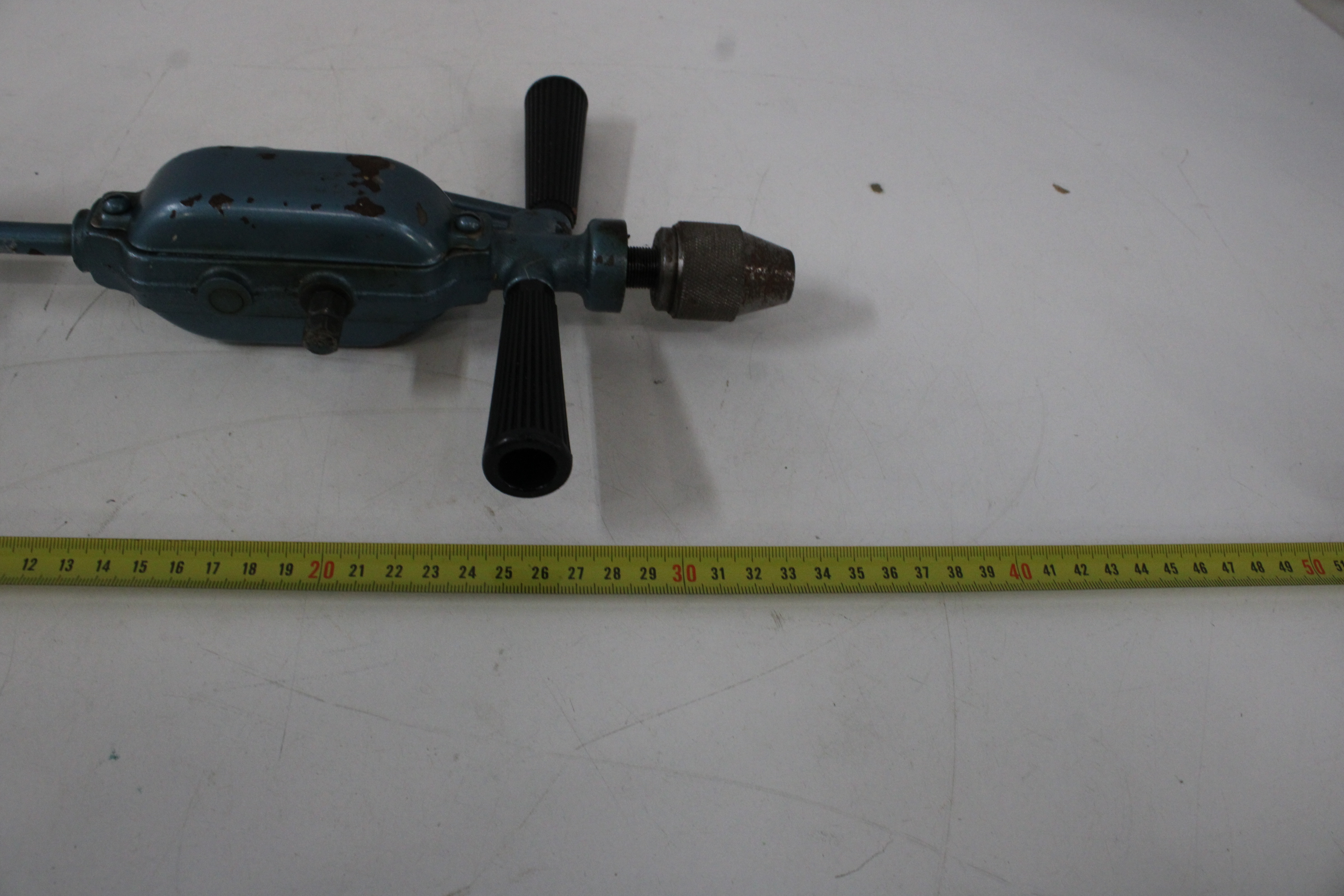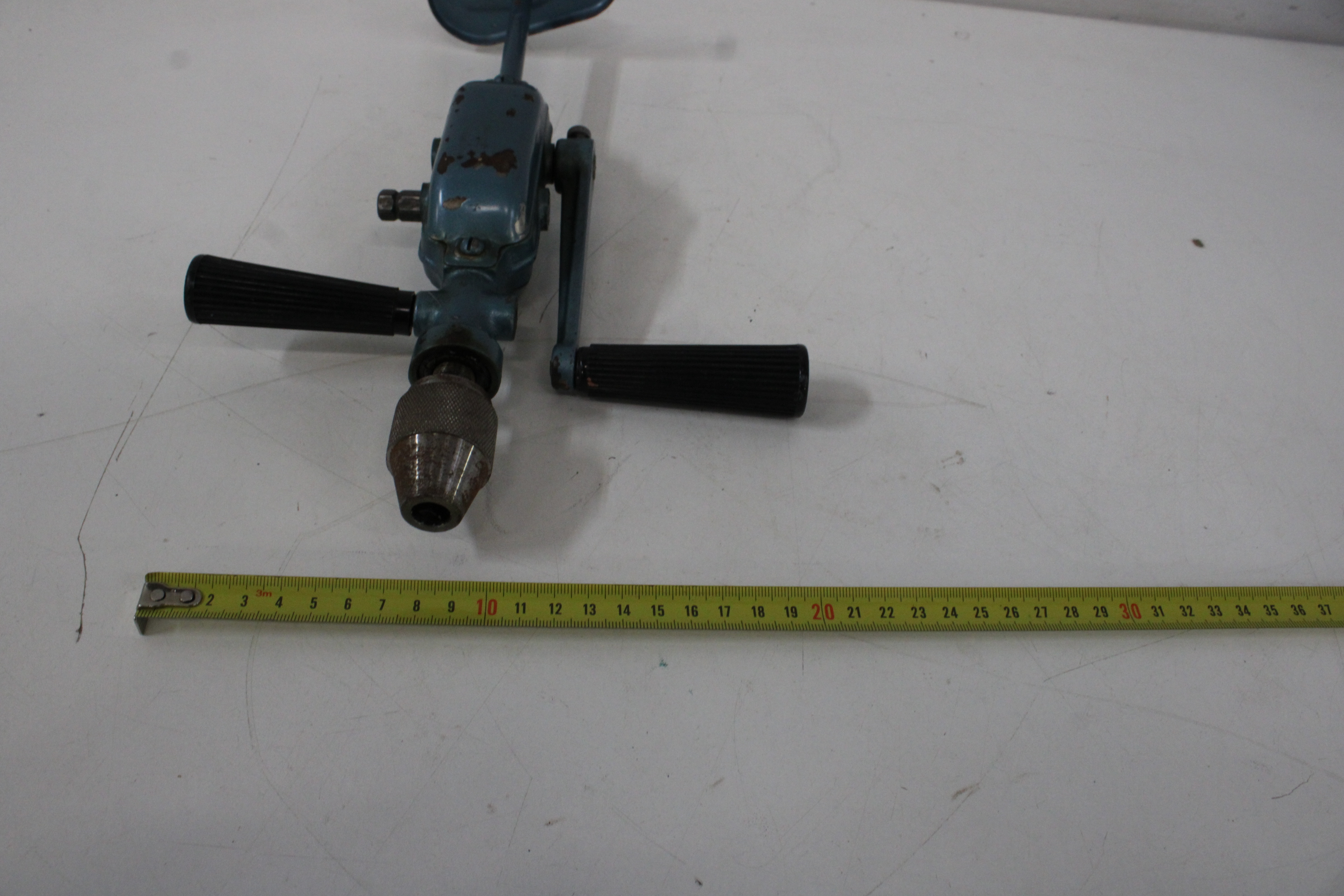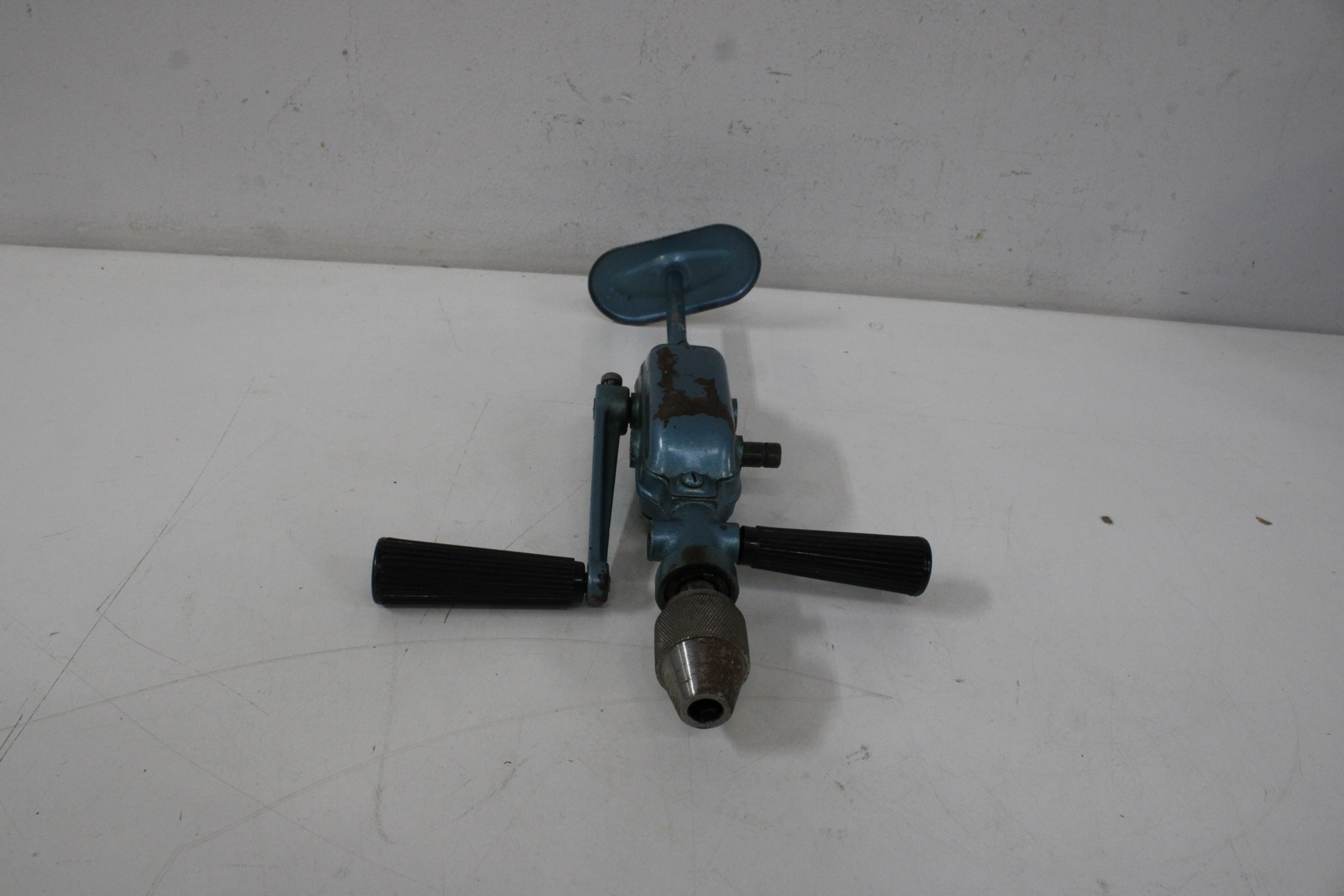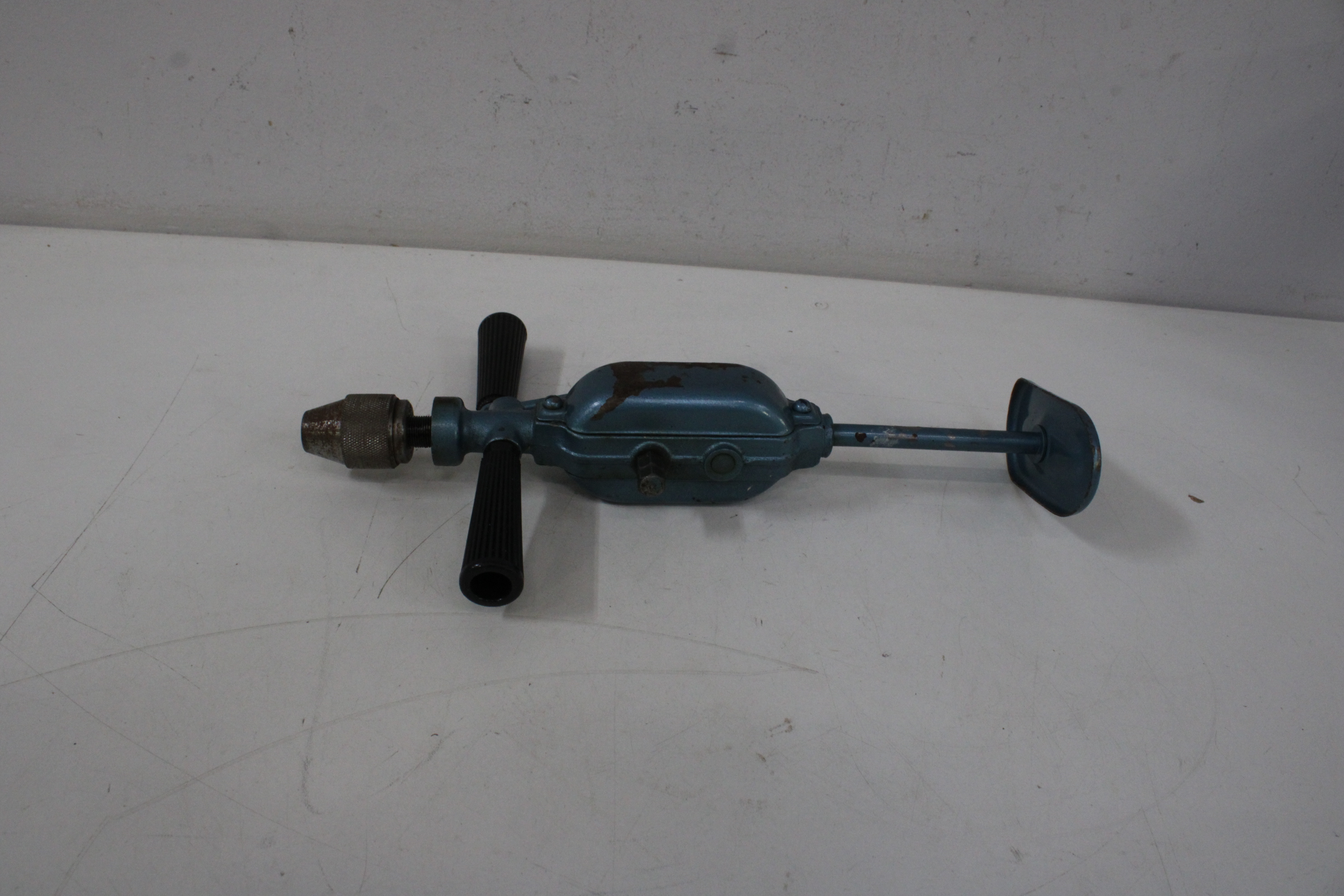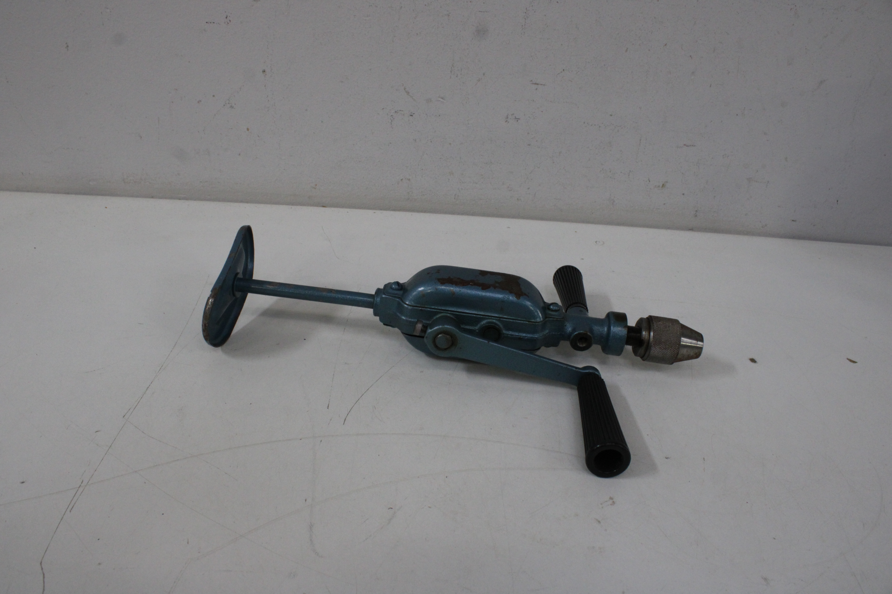 Antiek Blauw Metalen Handboor'