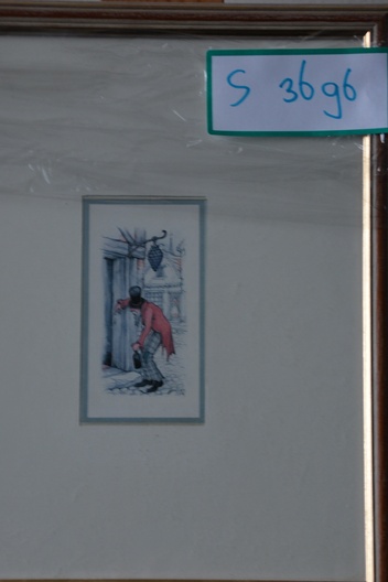 Fraaie zeefdruk van Anton Pieck: Dronken man'.