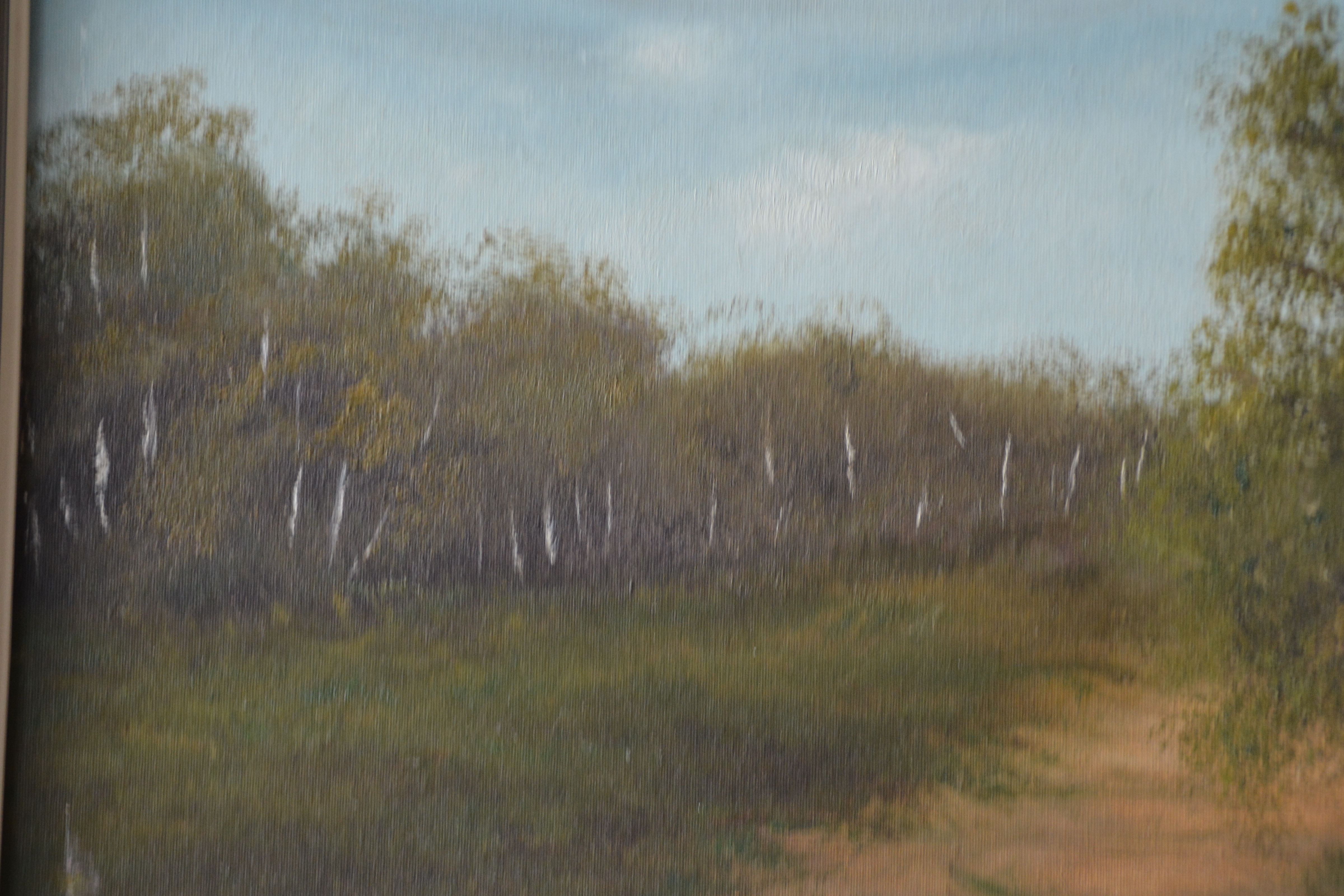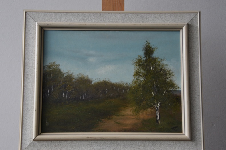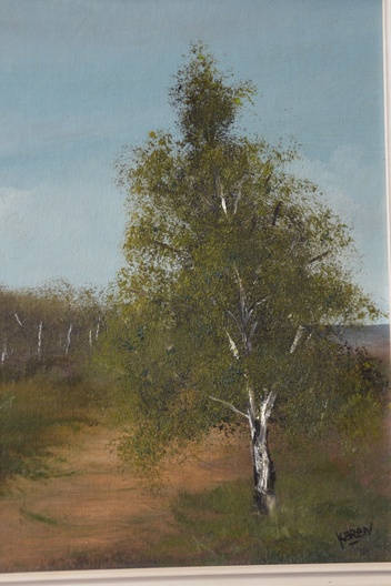Olieverfschilderij van een Berkenlandschap, door 'Karen'.