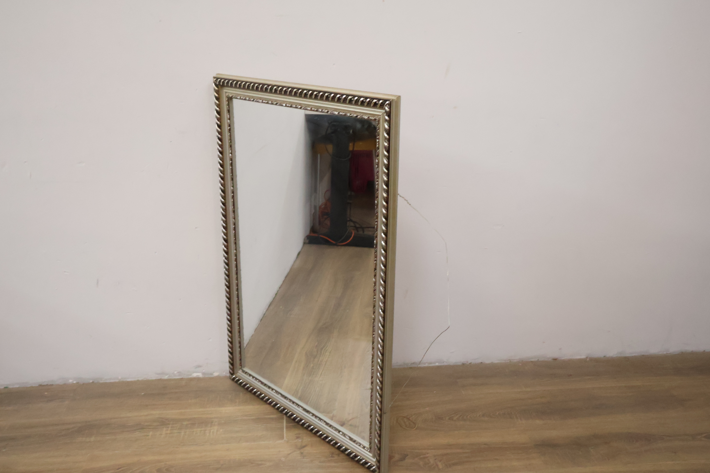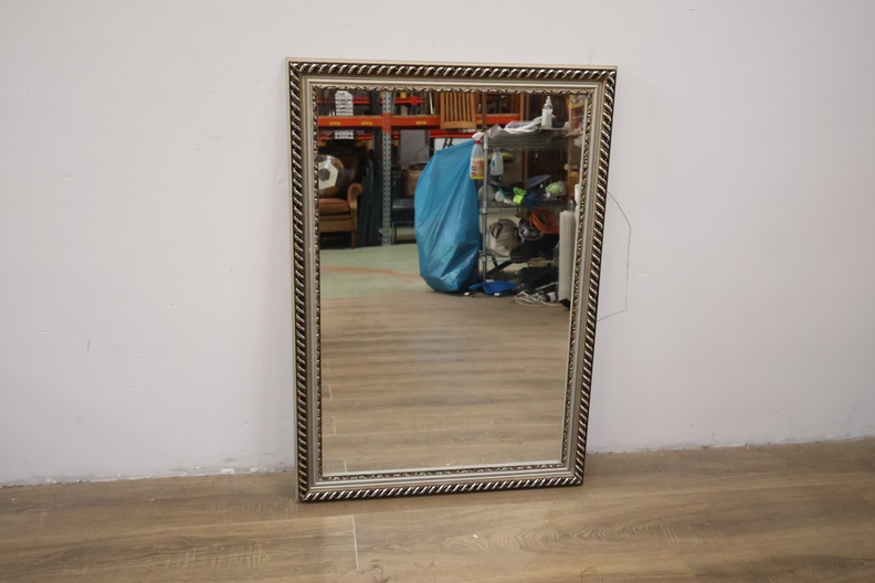 Rechthoekige Wandspiegel in Gevlochten Zilverkleurige Lijst'