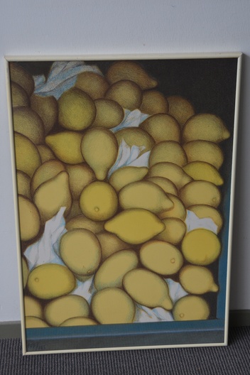 Ingelijste litho van citroenen. Niet gesigneerd.