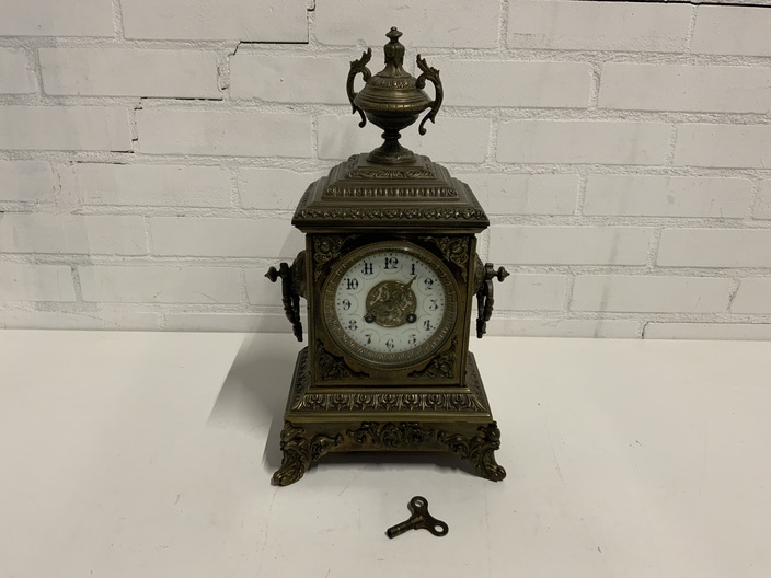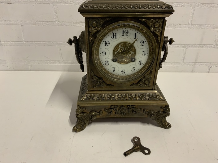 Antieke Messing Schouwklok
