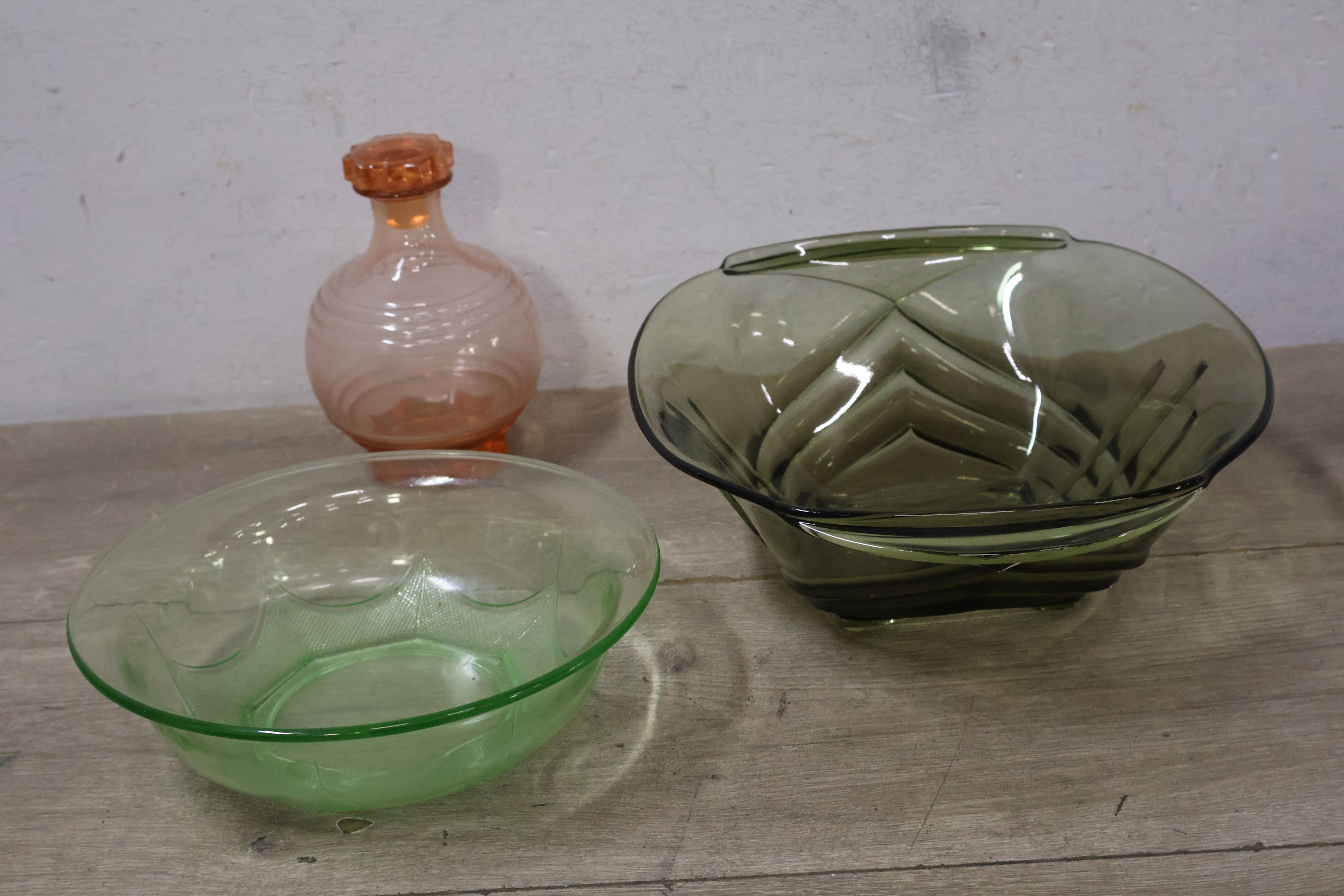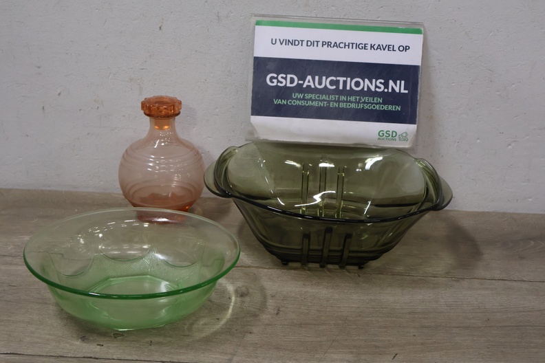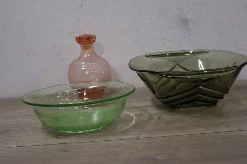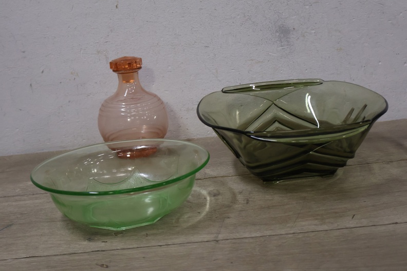 Set van 2 Vintage Glazen Schalen & 1 Roze Karaf