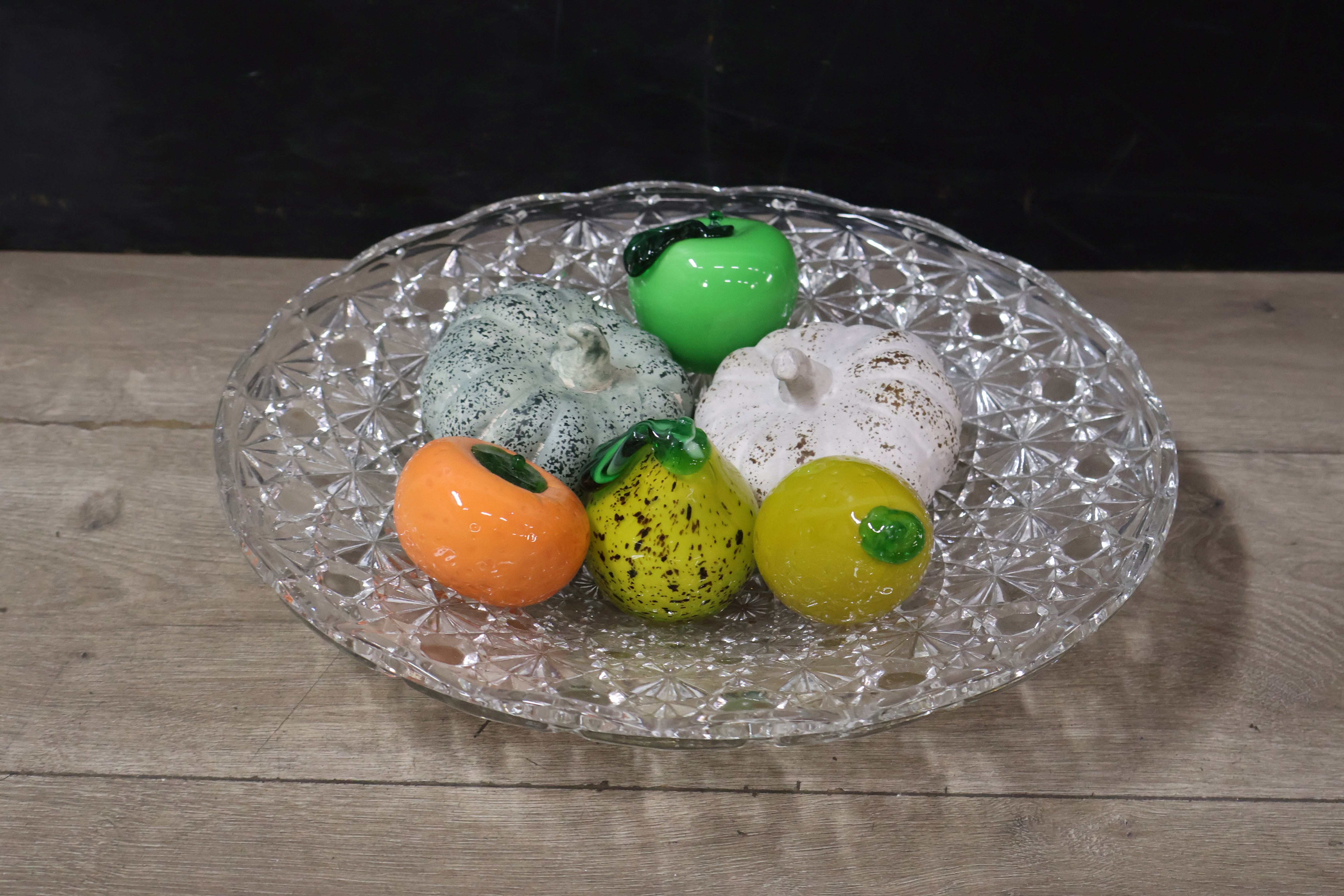 Vintage Kristallen Fruitschaal met Decoratief Fruit
