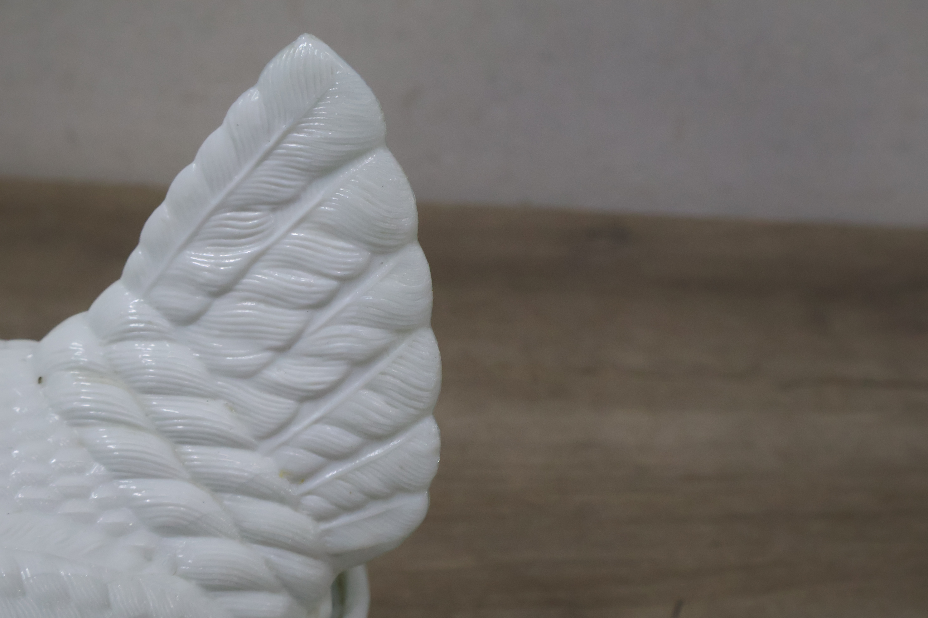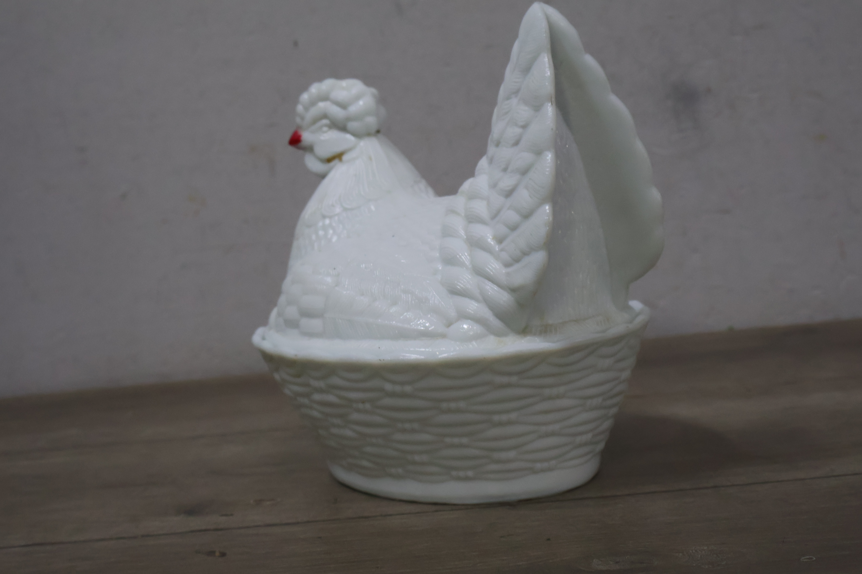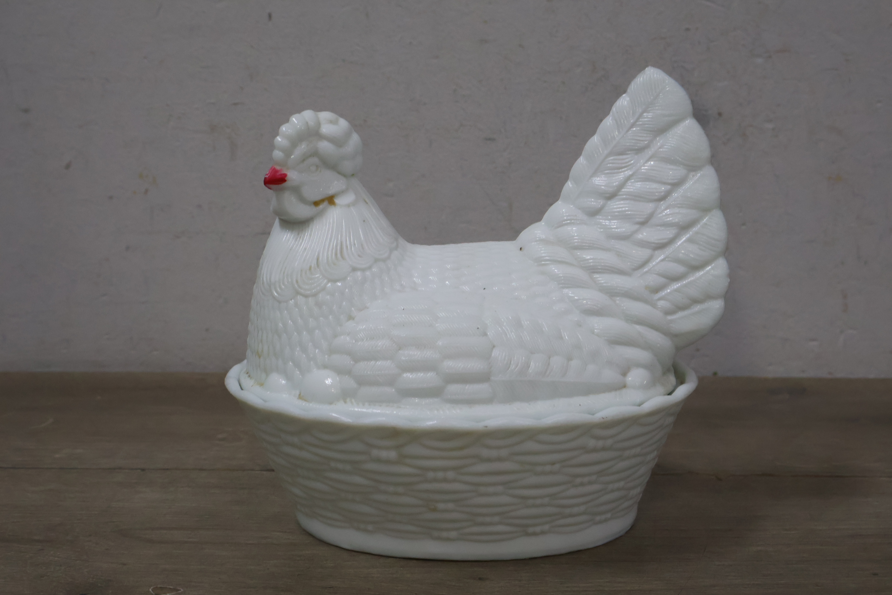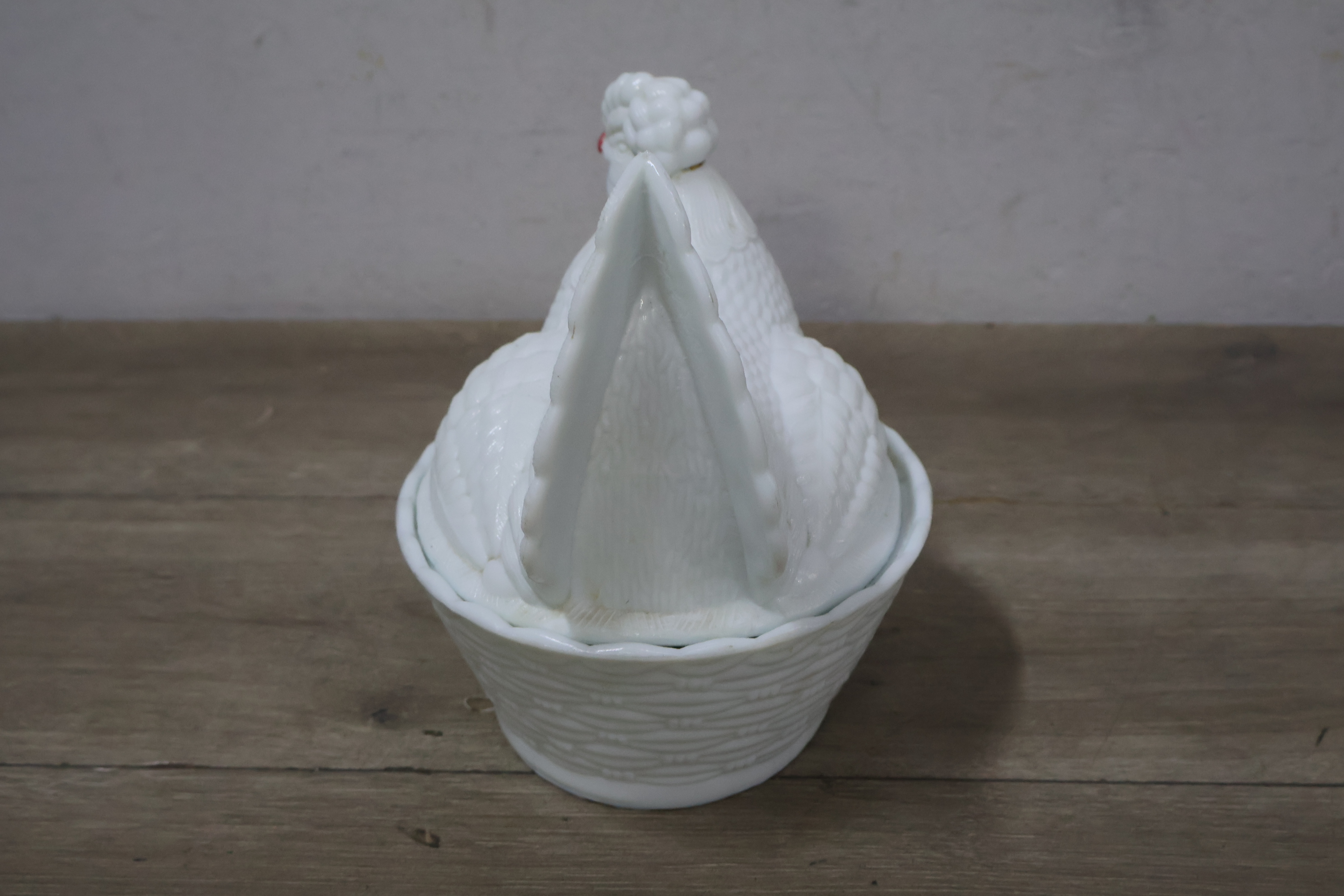 Glazen dekselschaal in de vorm van een kip