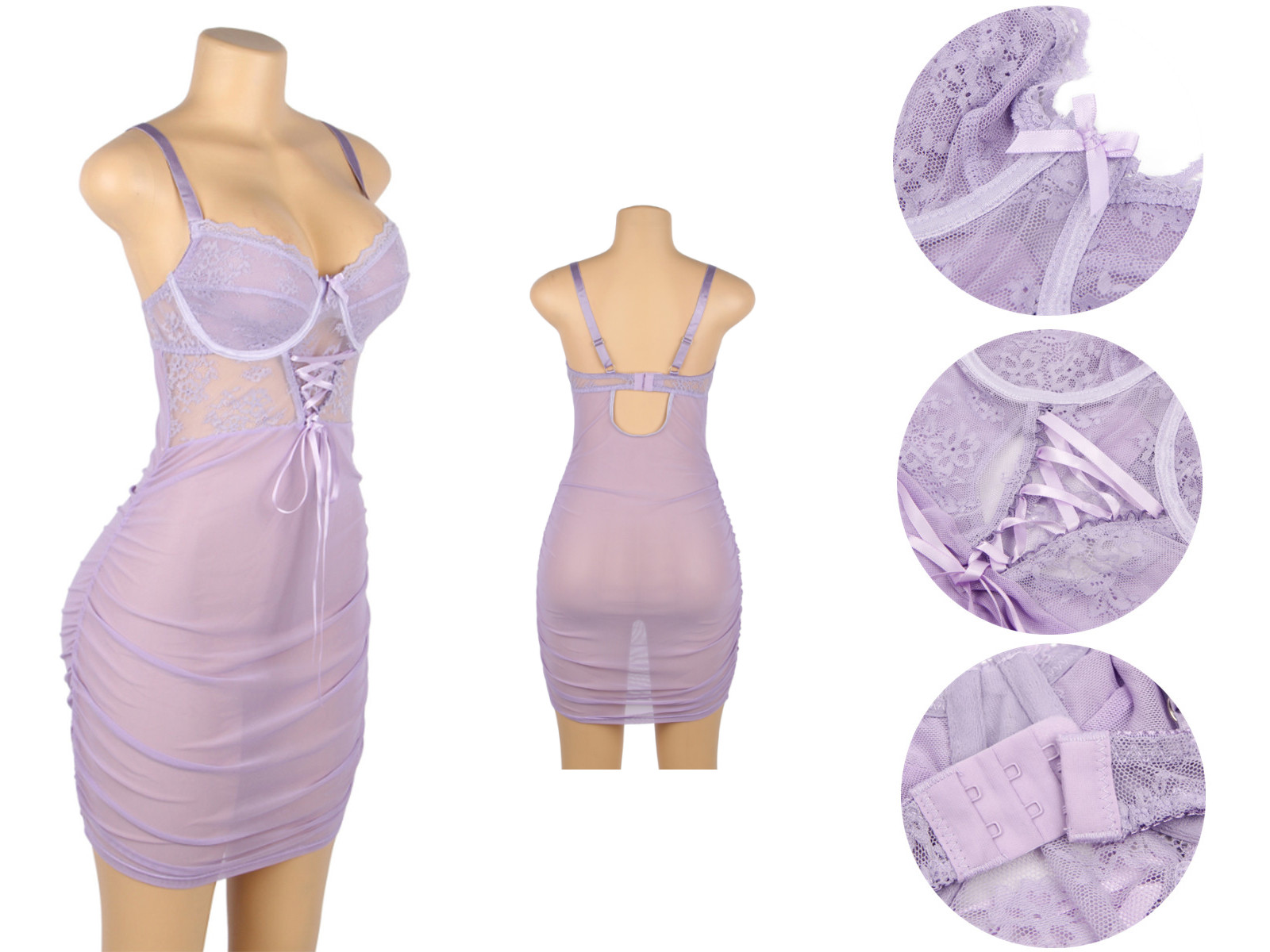 - Materiaal: Dit verleidelijke lila nachtjurkje heeft een diepe V-hals en accentueert op een subtiele maar sexy wijze uw rondingen. De bandjes van dit lingeriejurkje zijn verstelbaar en de elastische taille zorgt voor een perfecte pasvorm. Het jurkje bevat bh beugels, hierdoor wordt uw buste prachtig vorm gegeven.