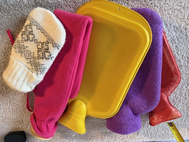 Partij warmwaterkruiken en hoezen – diverse kleuren Leuke e