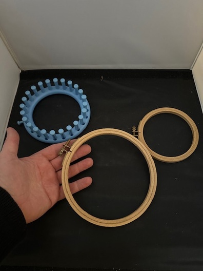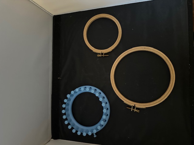 Te koop: een kleine creatieve set bestaande uit 2 houten borduurringen en 1 kunststof breiring. Perfect voor iedereen die houdt van borduren, punch needling, haken, loom-projecten of het maken van decoratieve wandhoepels.