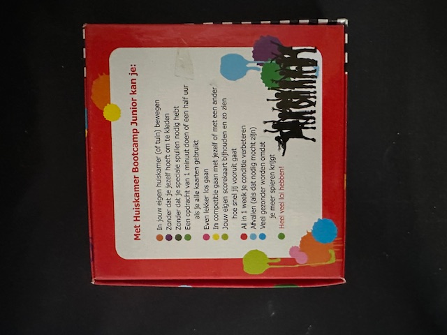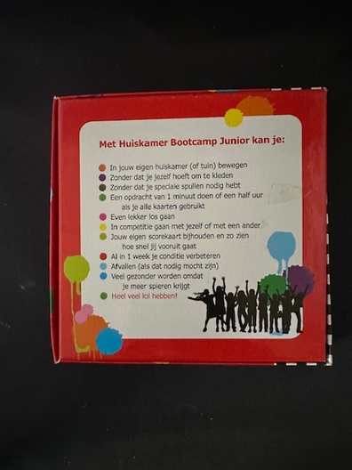 Huiskamer Bootcamp Junior laat kinderen op een speelse manier bewegen. Elke kaart bevat een activiteit, oefening of opdracht waardoor kids uitgedaagd worden om: