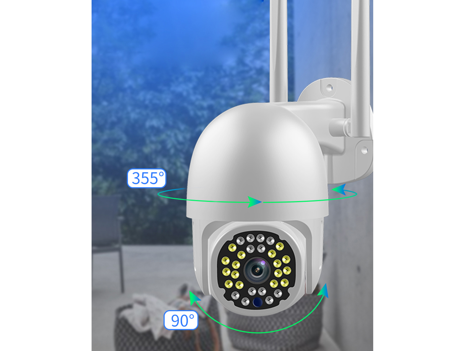 • Pan / Tilt: draait 355 graden horizontaal en 90 graden verticaal