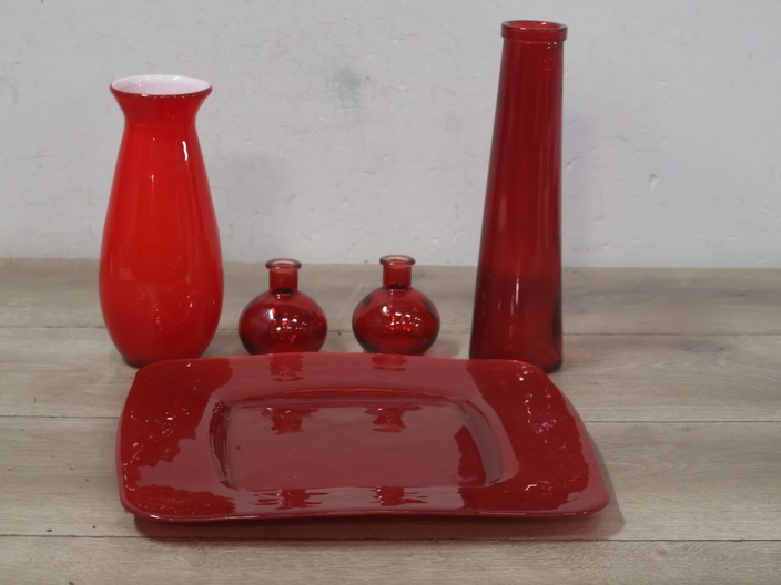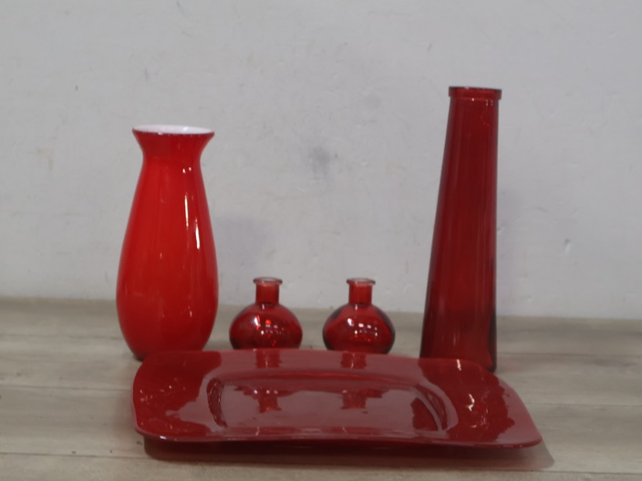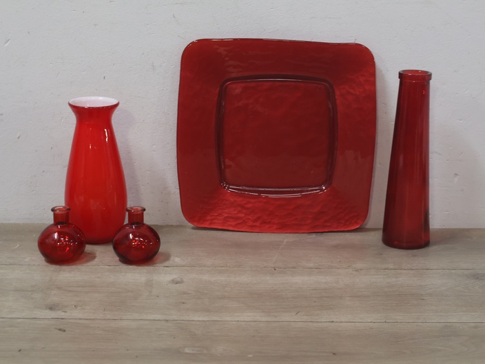 Rode vazen 4 stuks met Schaal''