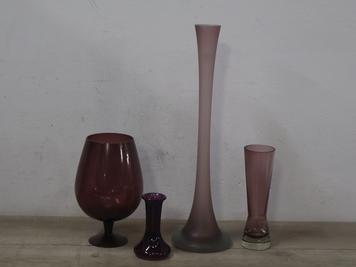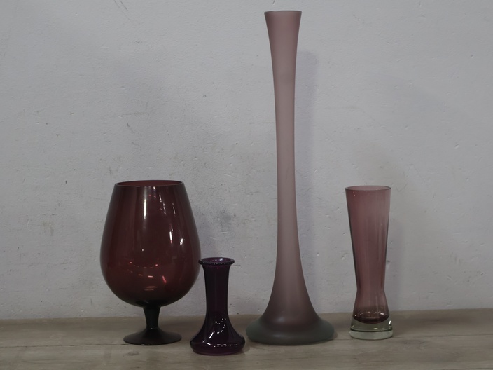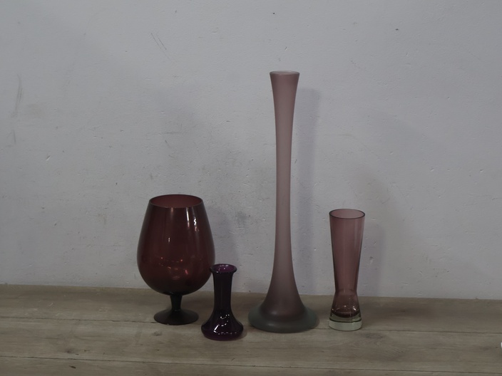 Paarse glazen vazen 4 stuks''