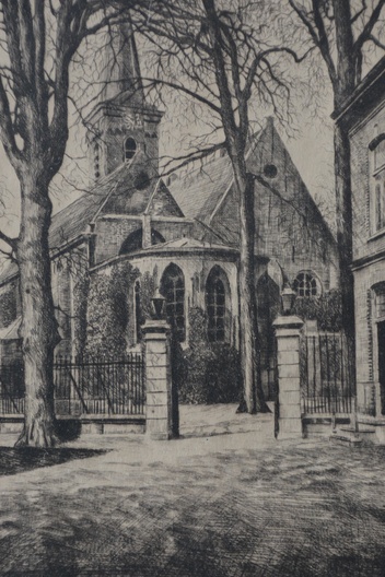 Gesigneerd door Siegfried Haberidt, uit 1923. Nederlands Hervormde kerk te Wassenaar. Zeer goed vervaardigd, mooie prent.