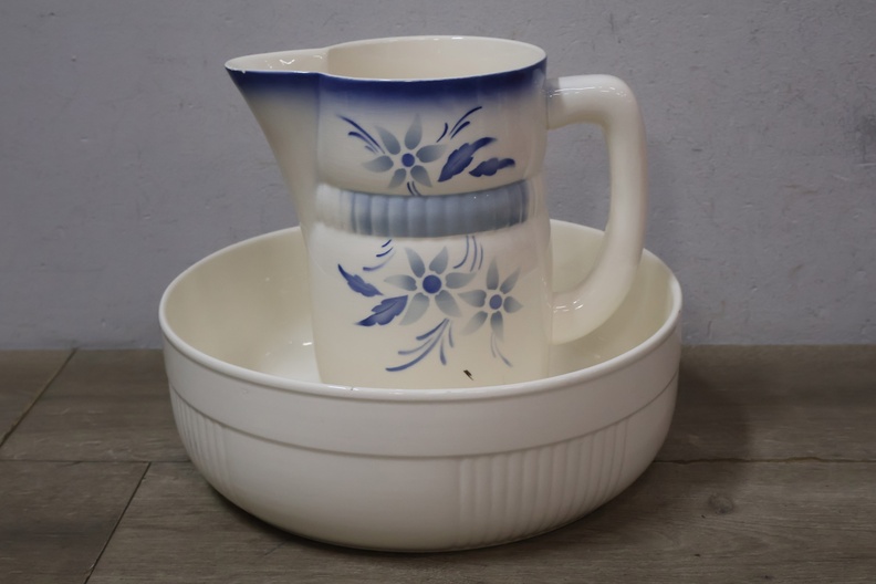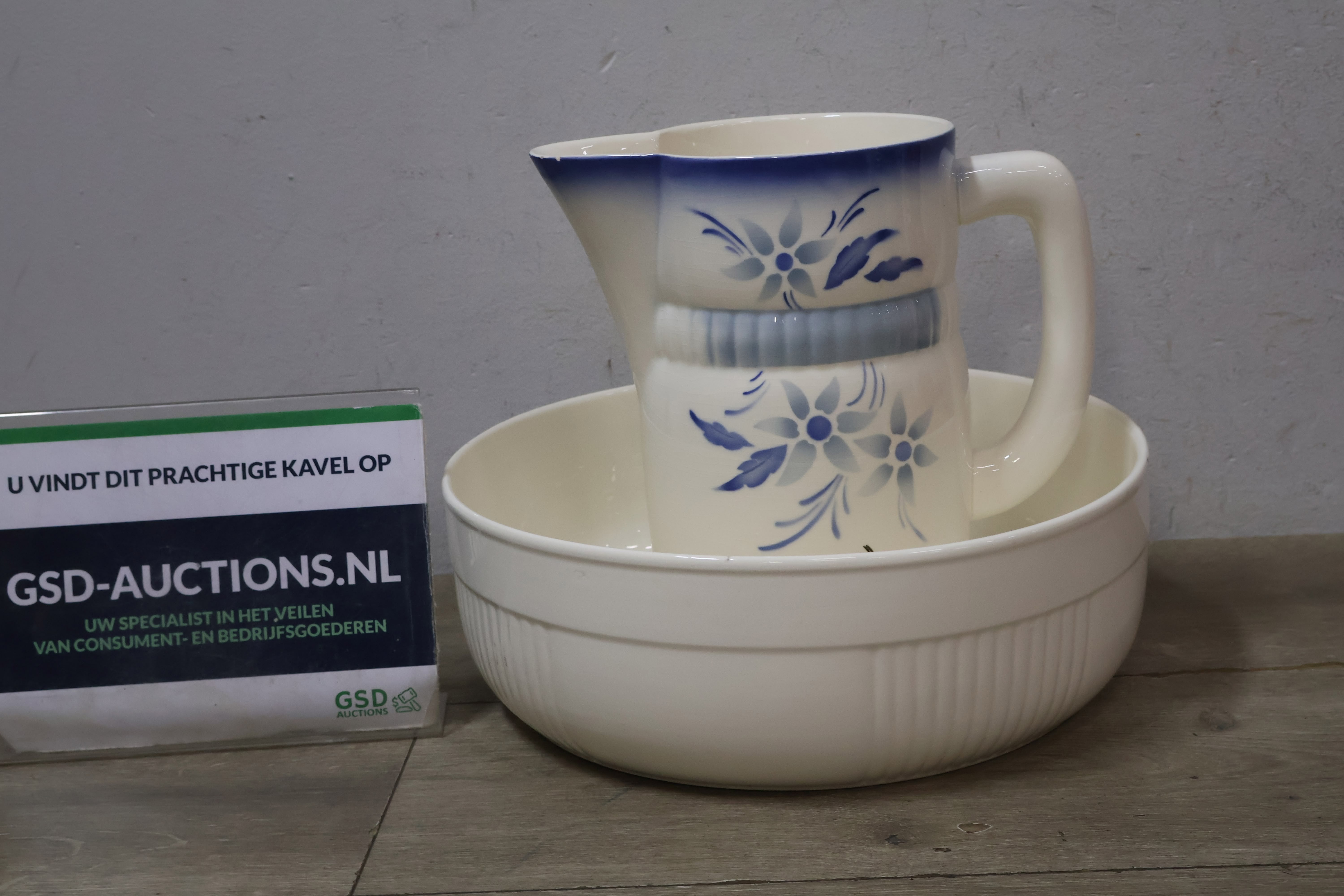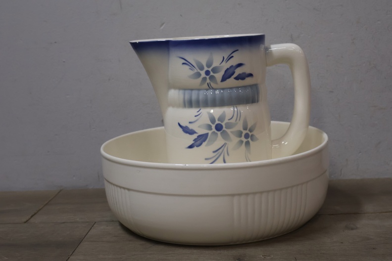 Wit Keramische Kom met Blauw/Witte Kan'
