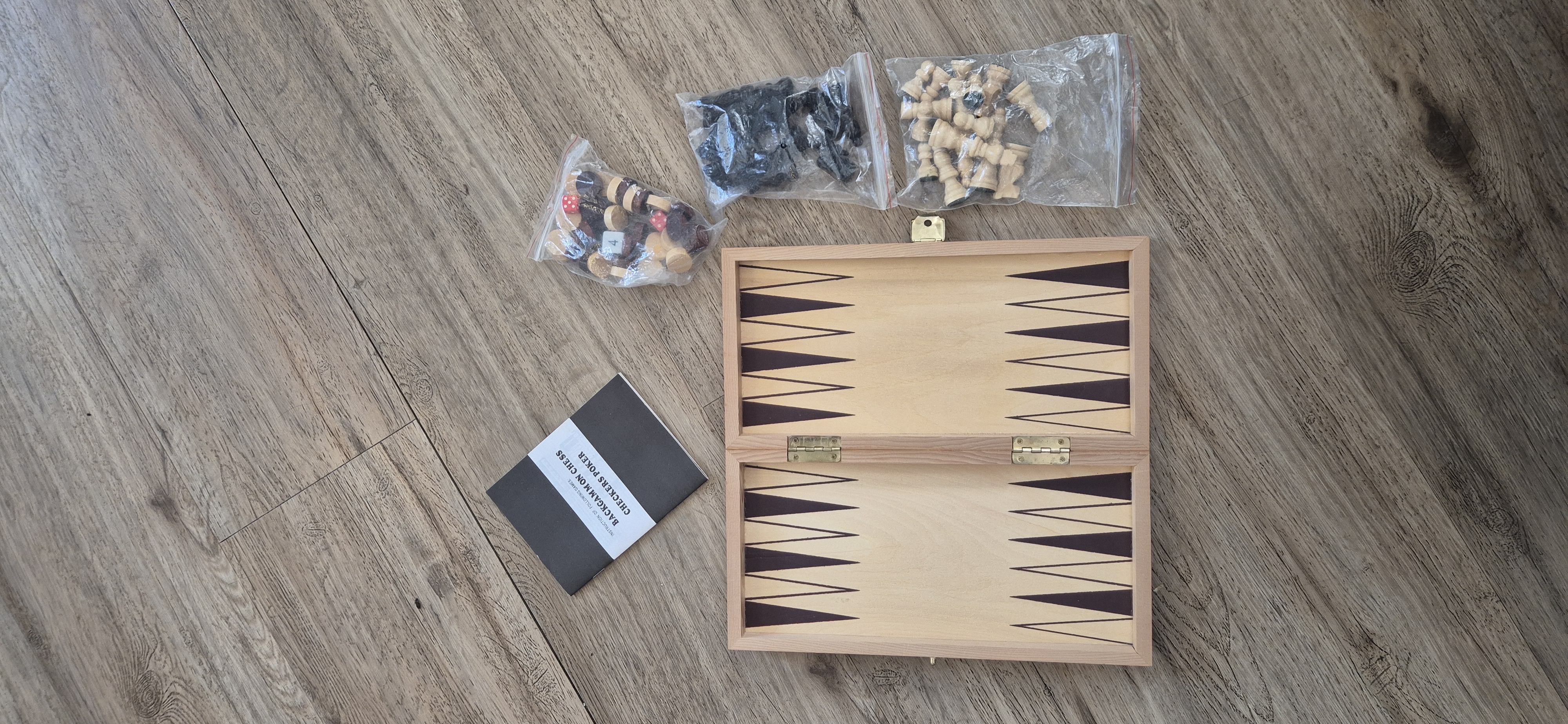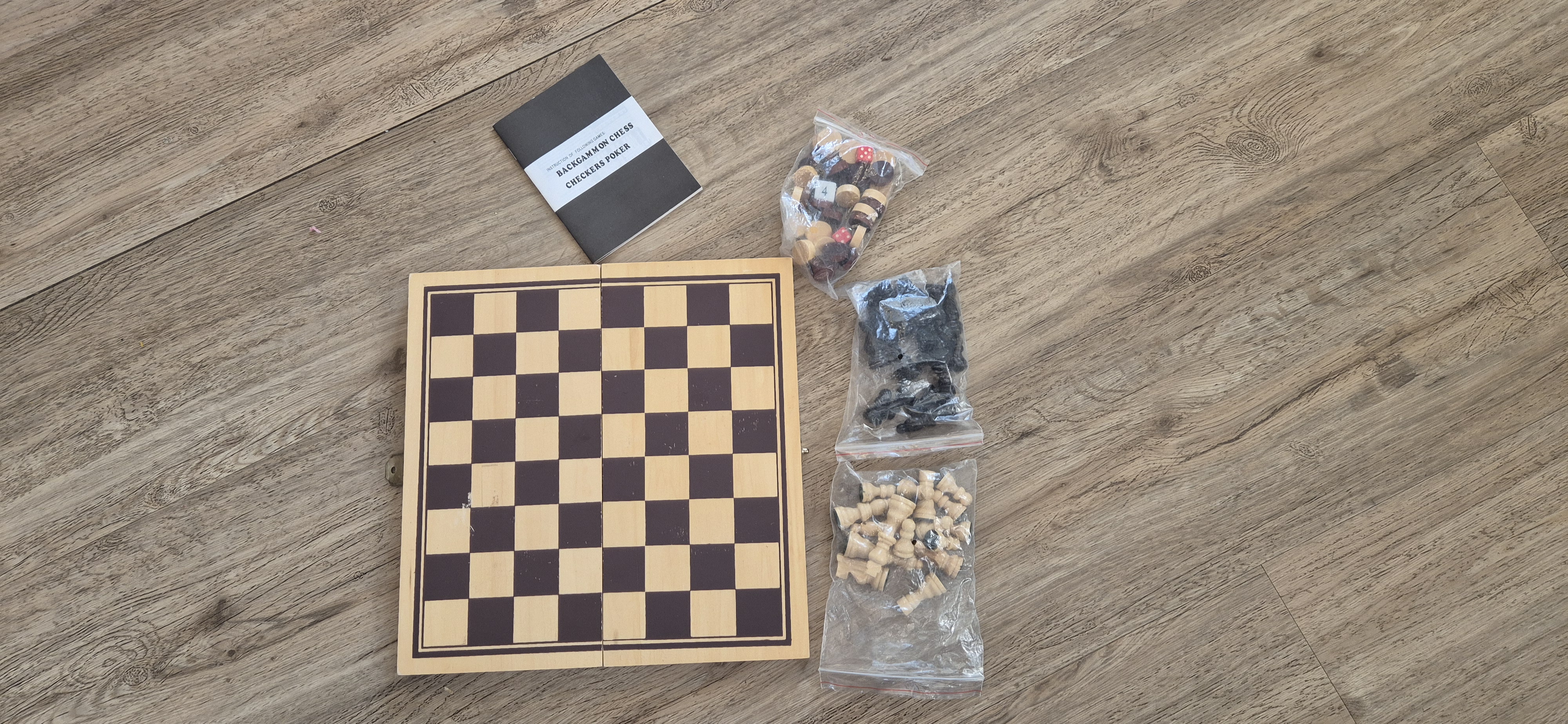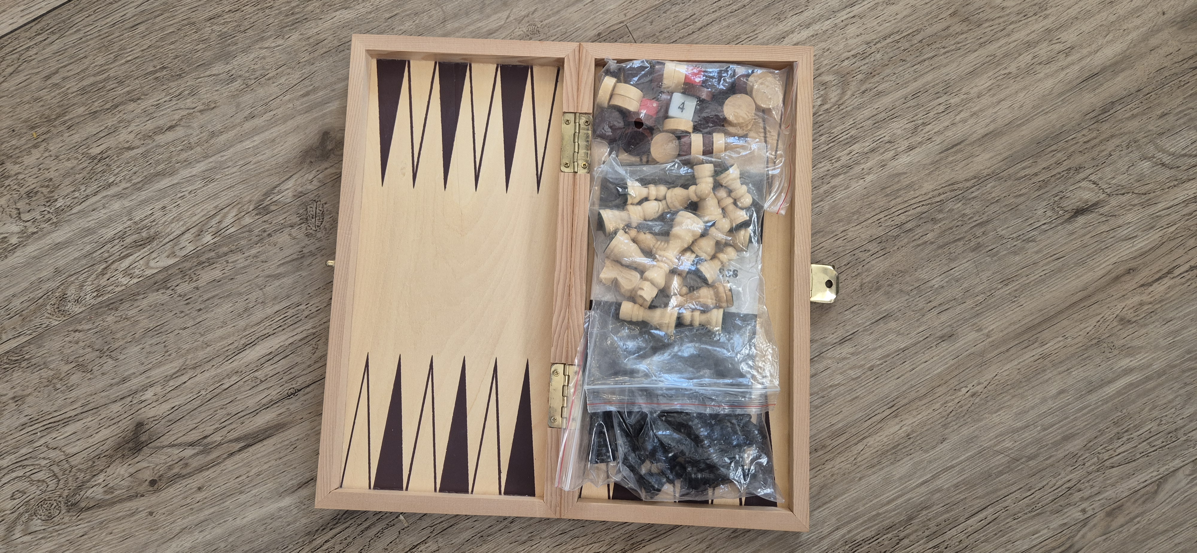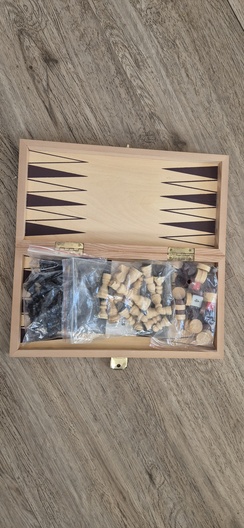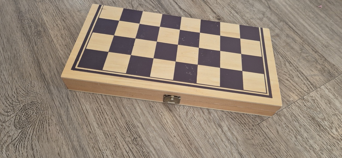 Houten Schaak/backgammon reisspel 30 x 29 uitgeklapt ingeklapt 30x 14,5..zie foto