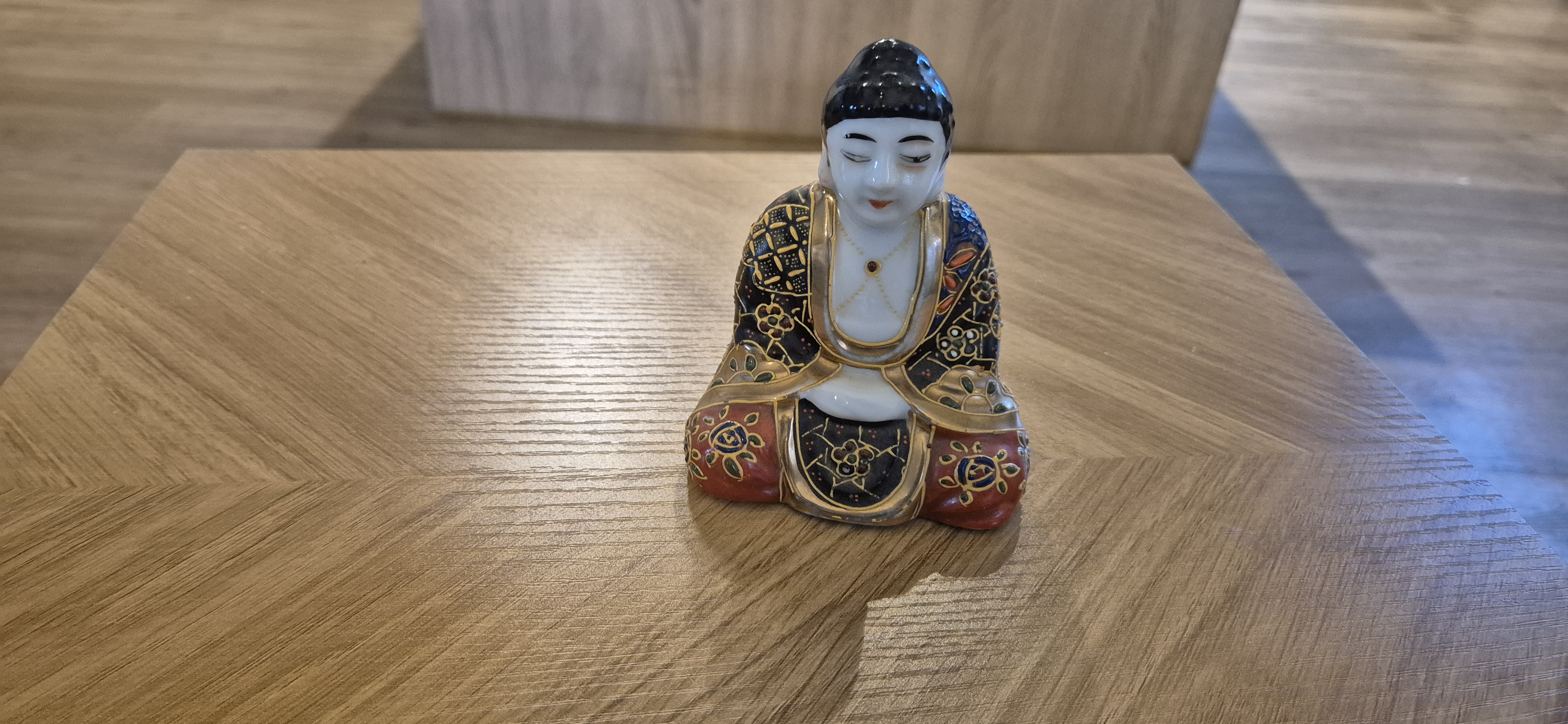Porseleinen boeddha beeldje ,9x10 cm zie foto