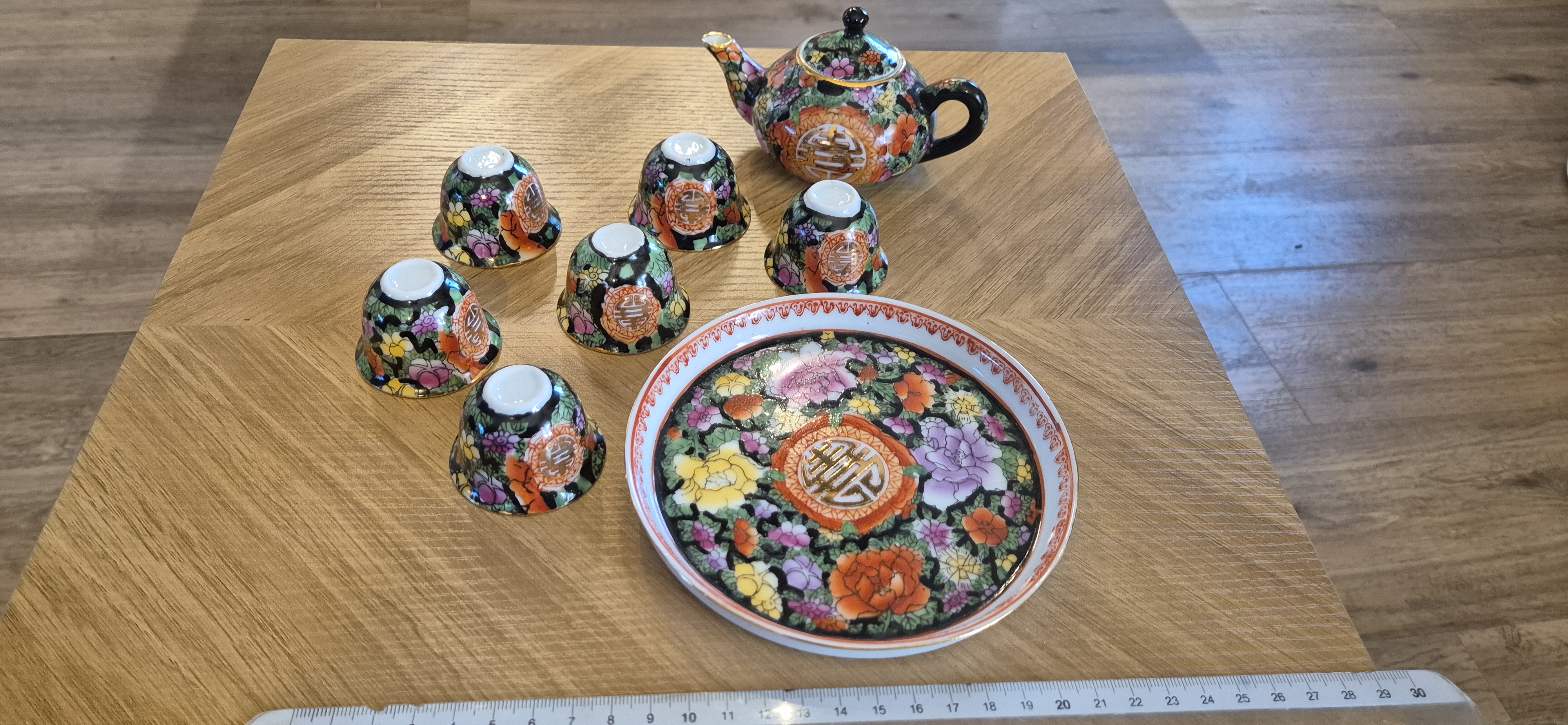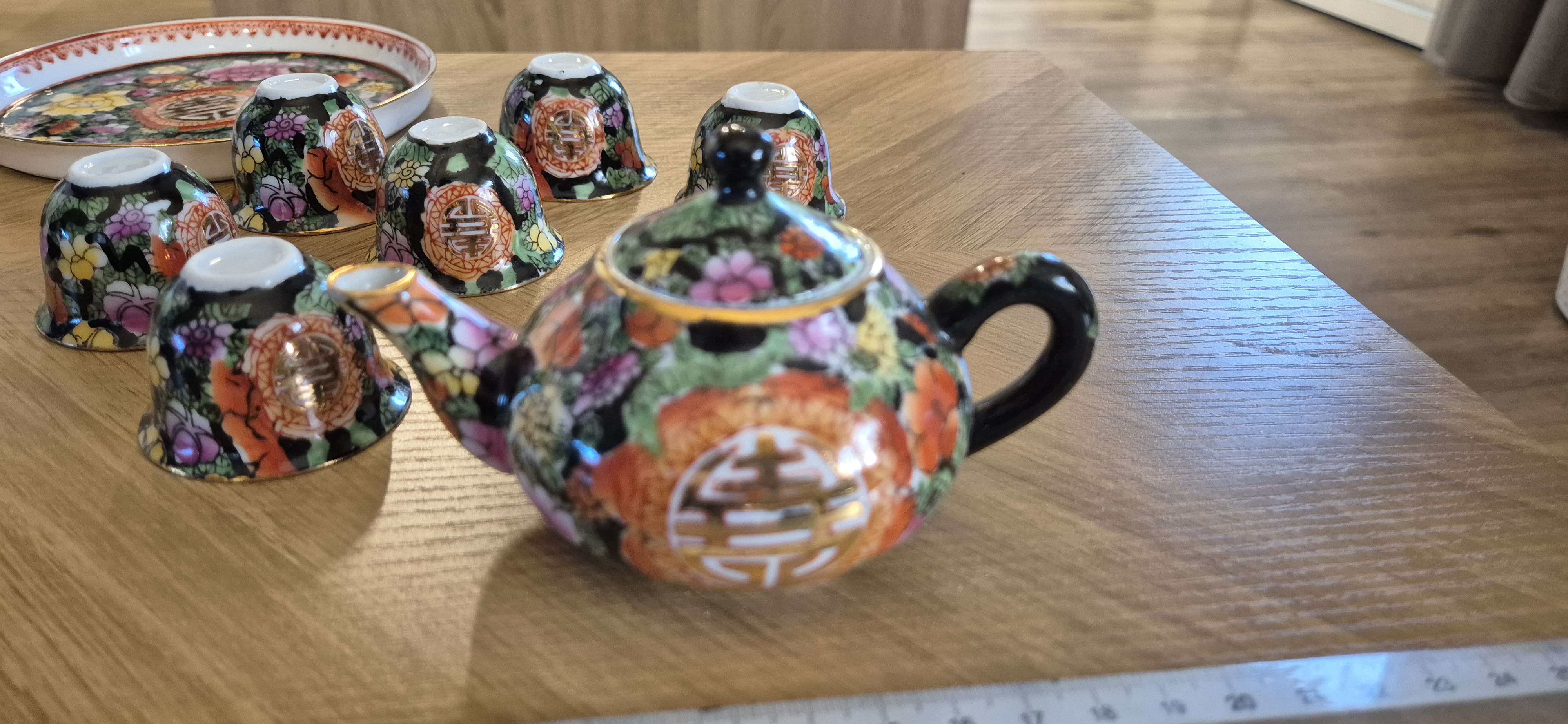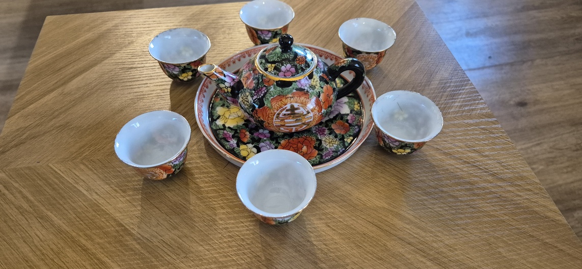 Chinees theeservies mini ..dienblad 6 kopjes , theepotje  meten supermooi bloemenmotief..zie foto