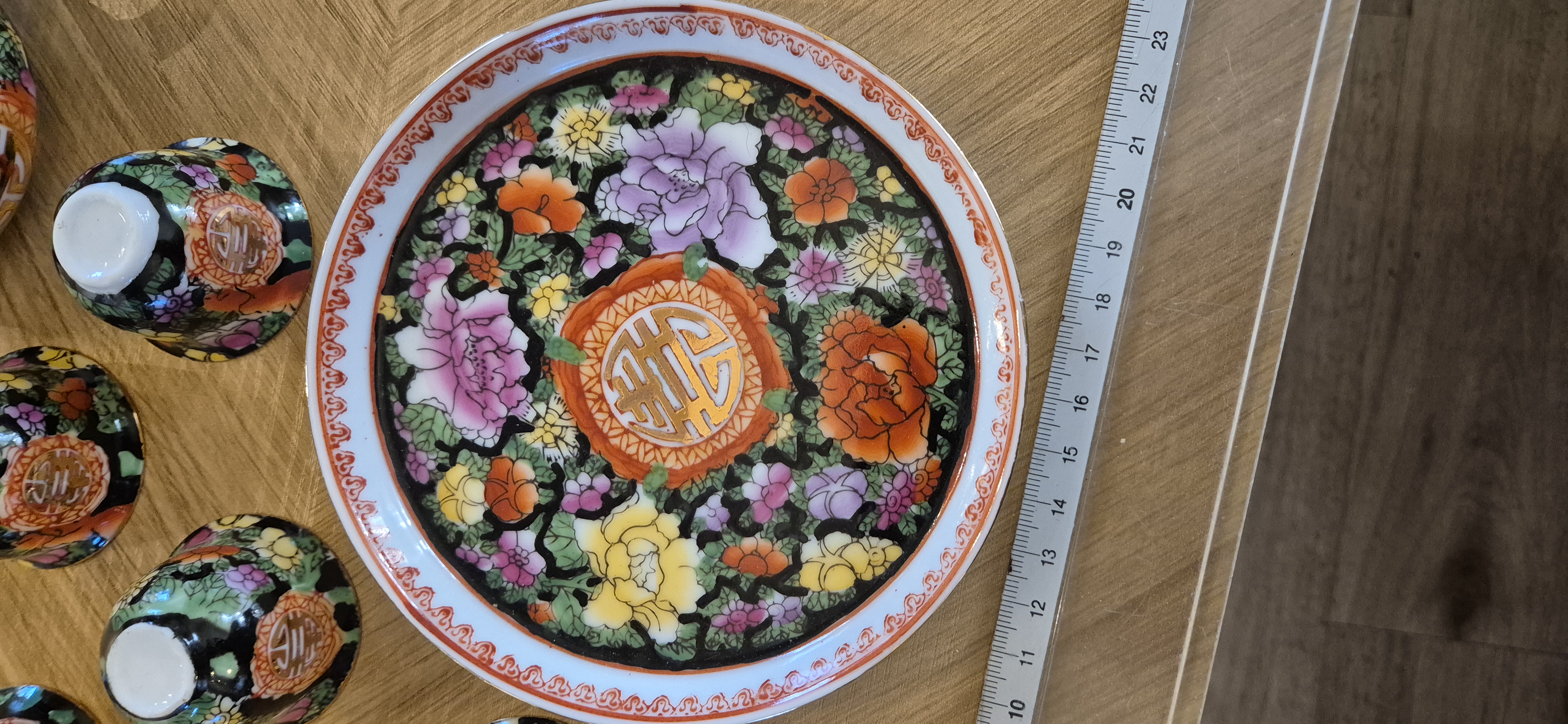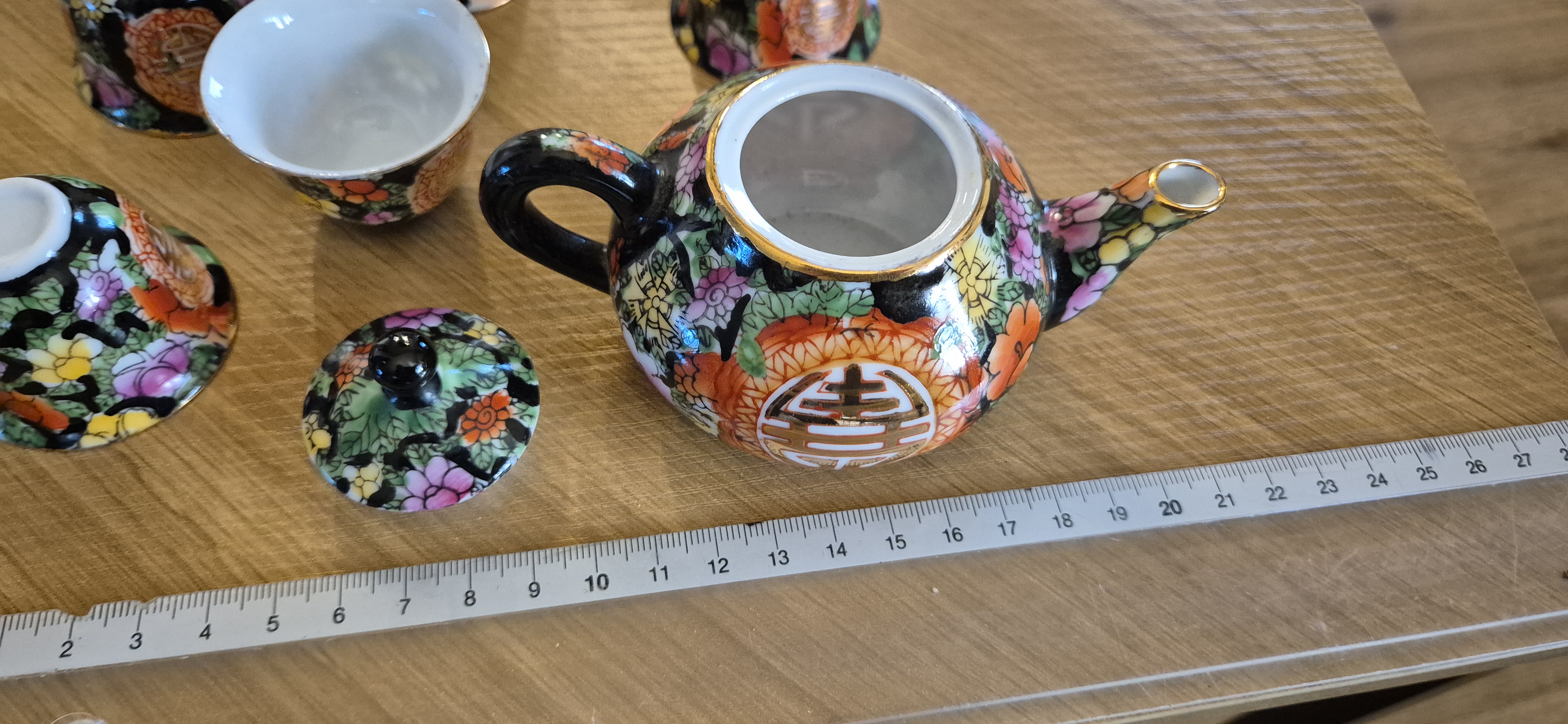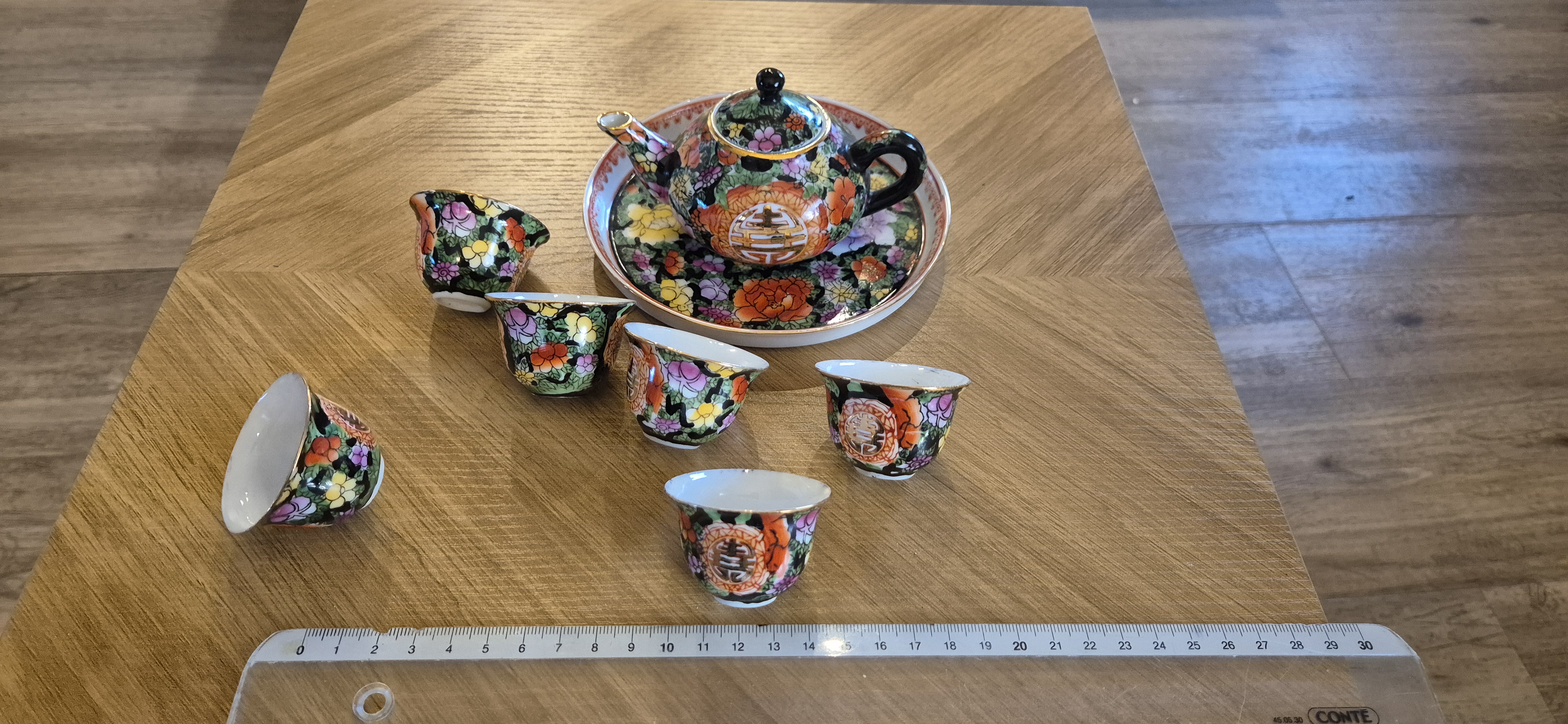Chinees theeservies mini ..dienblad 6 kopjes , theepotje  meten supermooi bloemenmotief..zie foto