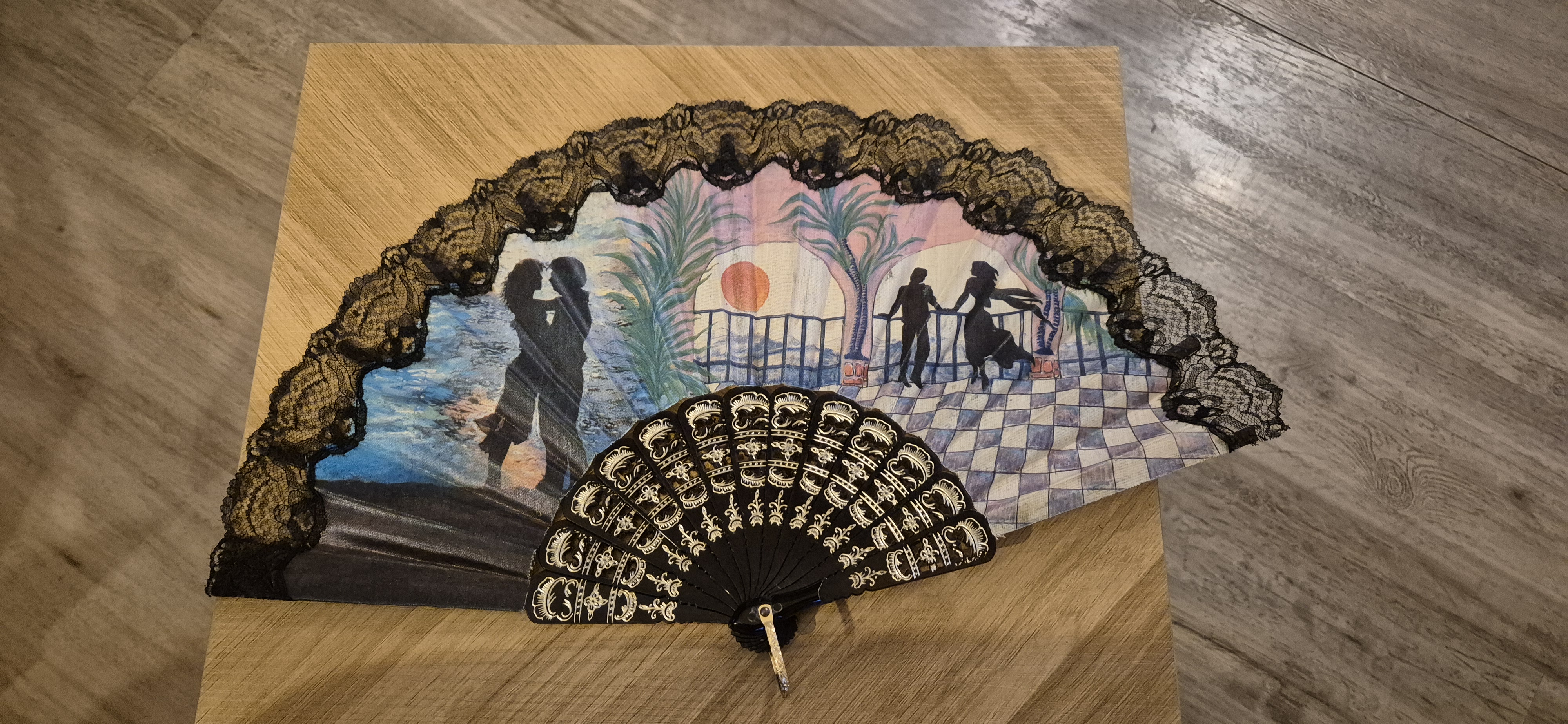 Romantisch gedecoreerde handwaaier,, zie foto’s