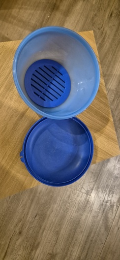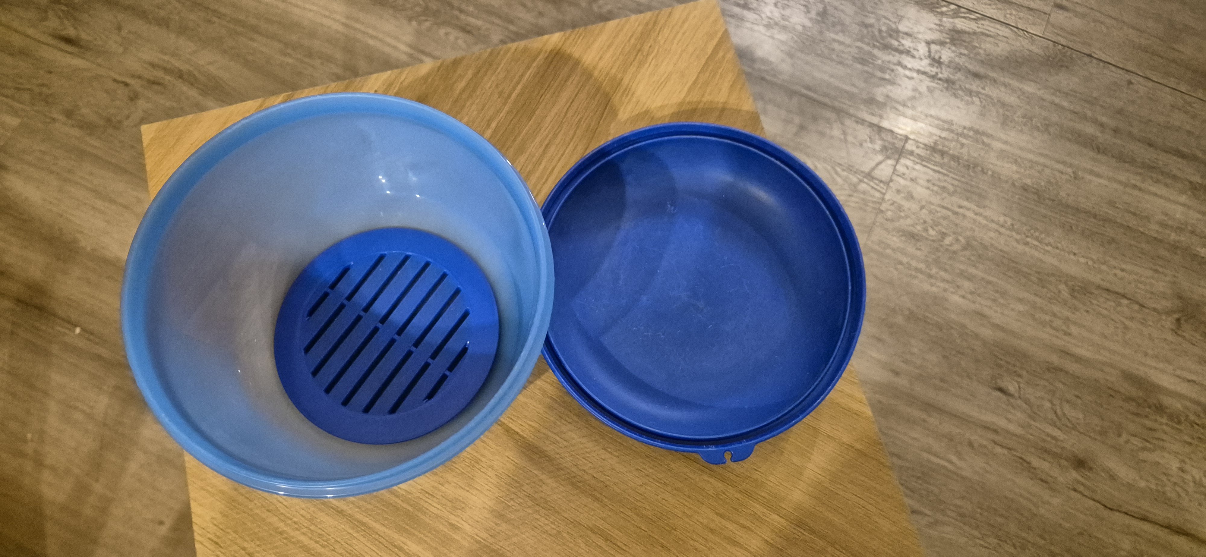 Blauwe tupperware slakom om je sla lekker lang vers te houden