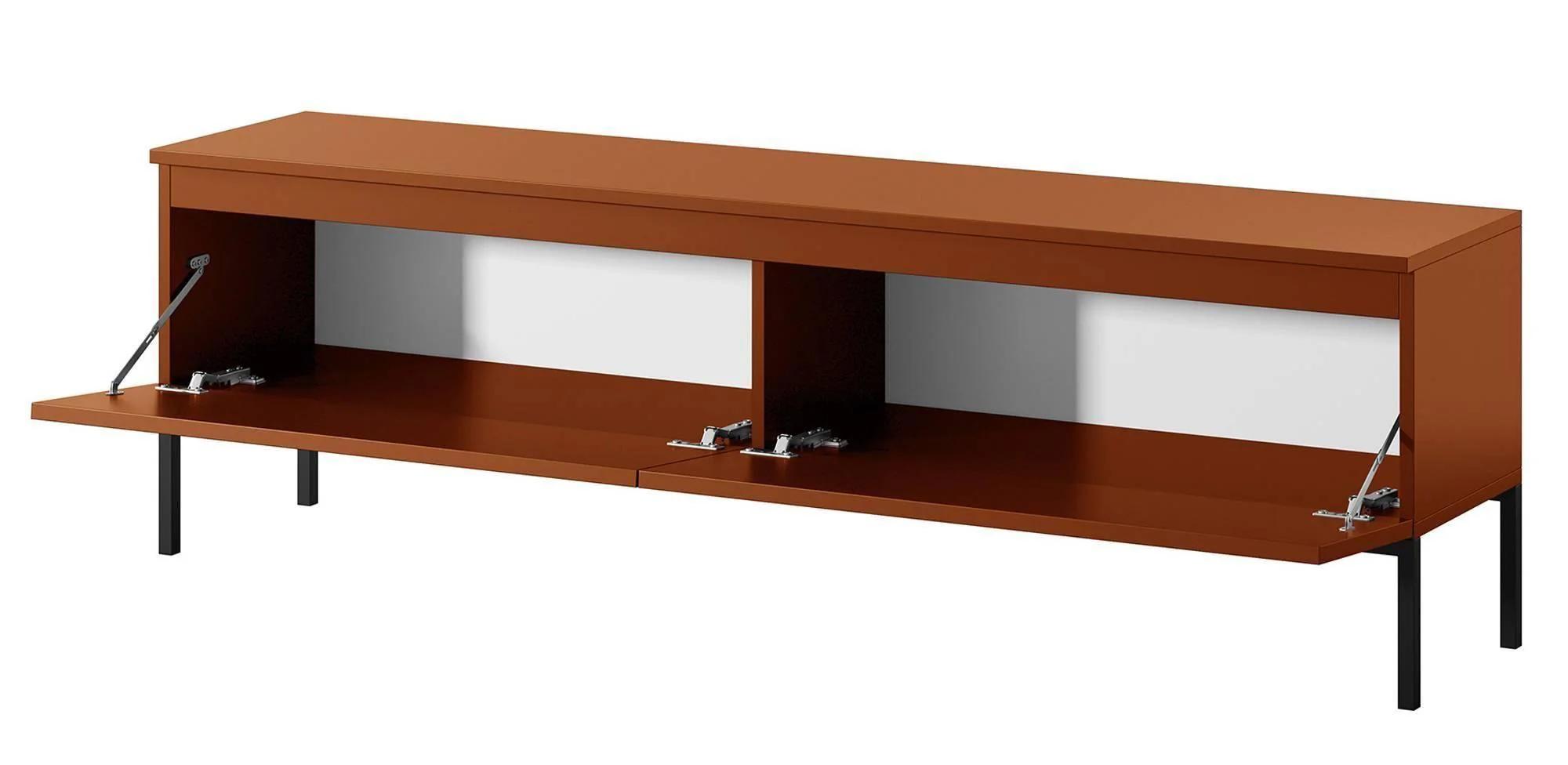 Het veelzijdige TV-meubel Kate kenmerkt zich door haar eenvoudige vormgeving, die op een fraaie manier wordt geaccentueerd door het slanke stalen onderstel. Dit voegt een mooi visueel contrast toe aan het geheel. TV-meubel Kate is voorzien van twee ruime opbergvakken, die perfect zijn voor het bewaren van al je extra TV apparatuur en accesoires. De hoge poten geven dit meubel een elegante uitstraling en zorgt dat je gemakkelijk onder het meubel schoon kan maken.