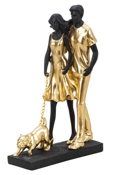 Echtpaar met hond goud/zwart h=29,5cm (nieuwe)