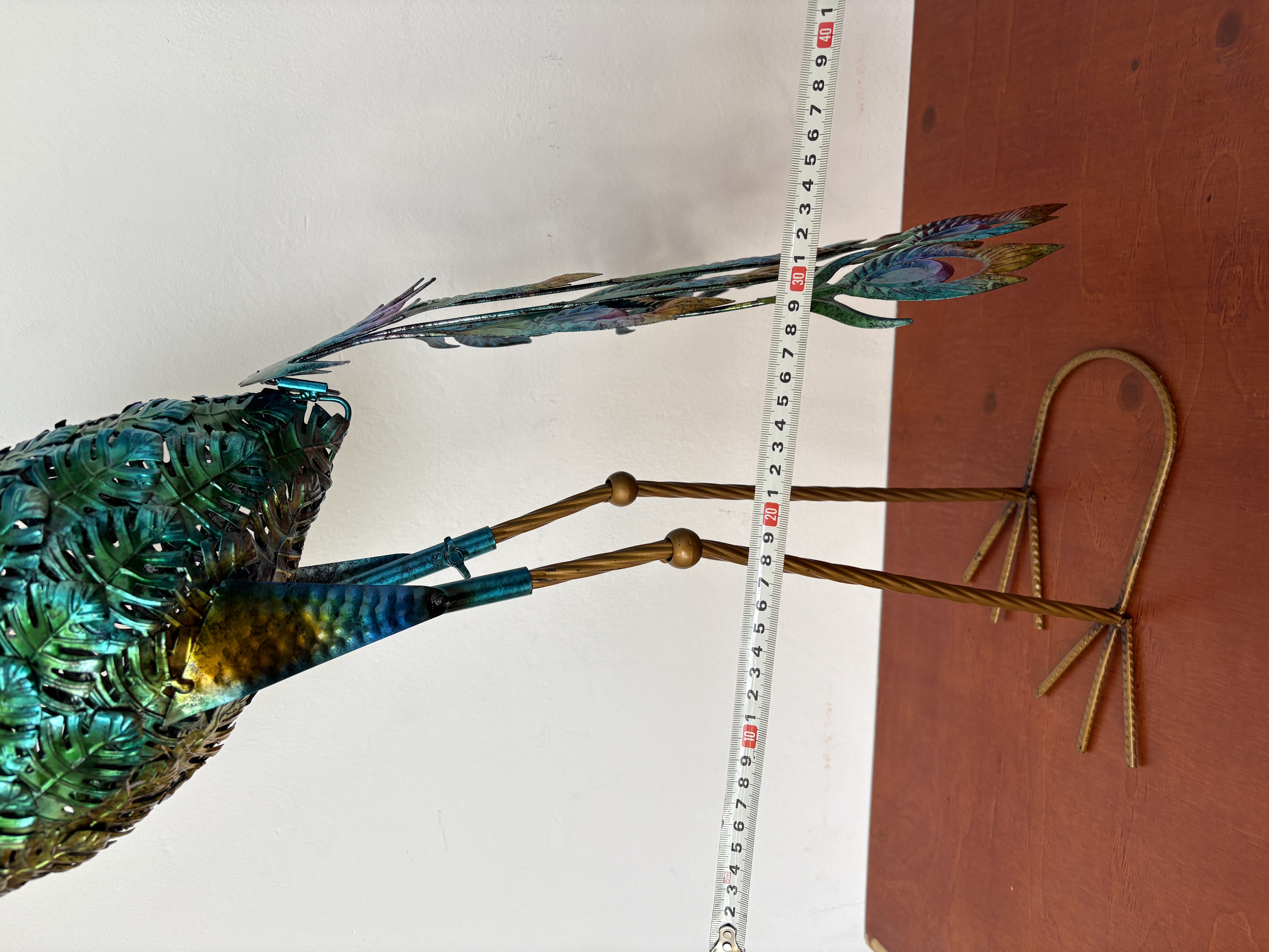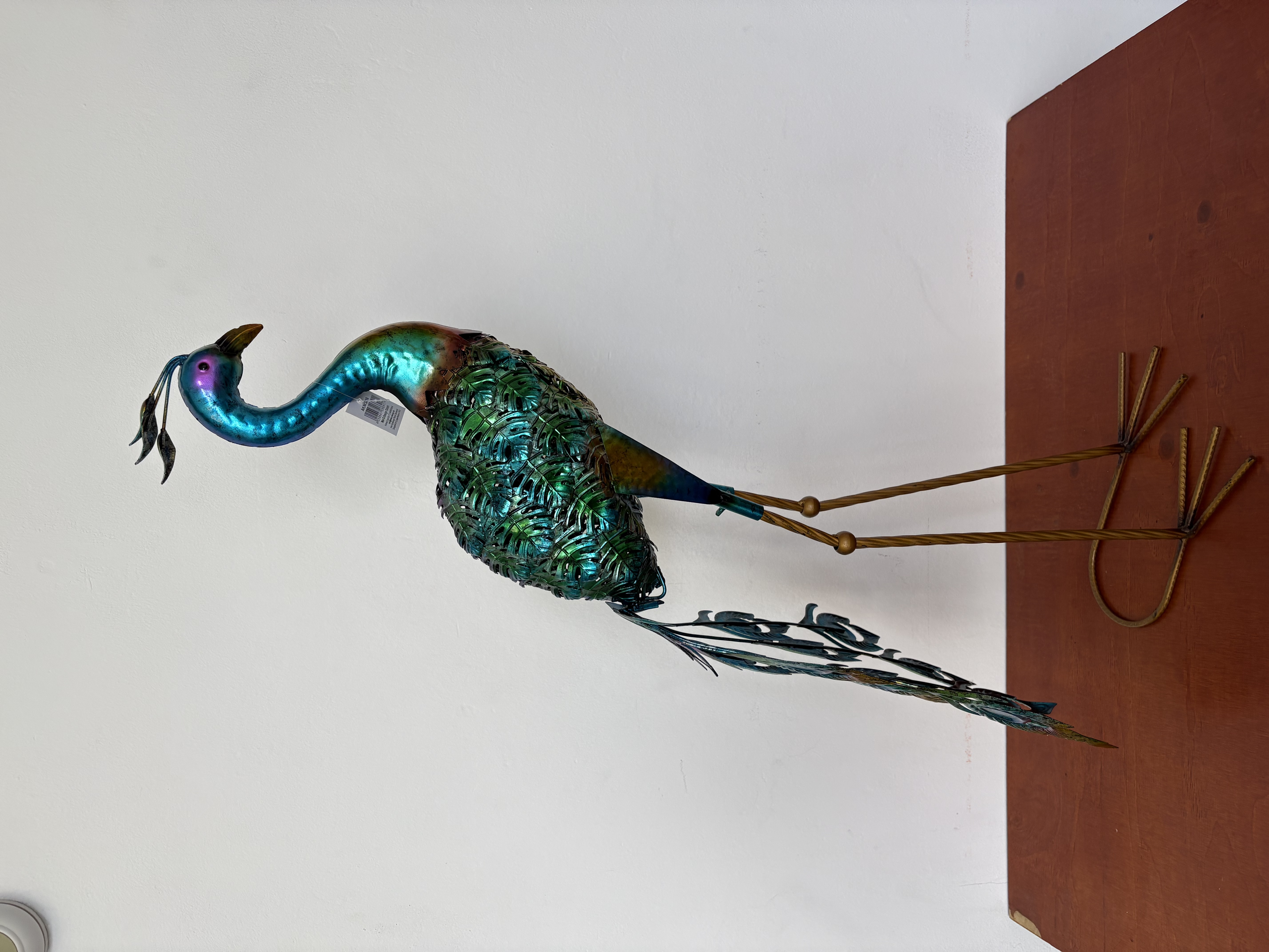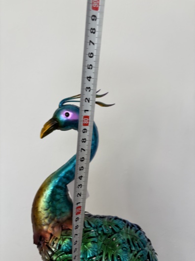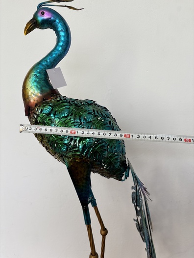 Metalen pouw met mooie staart